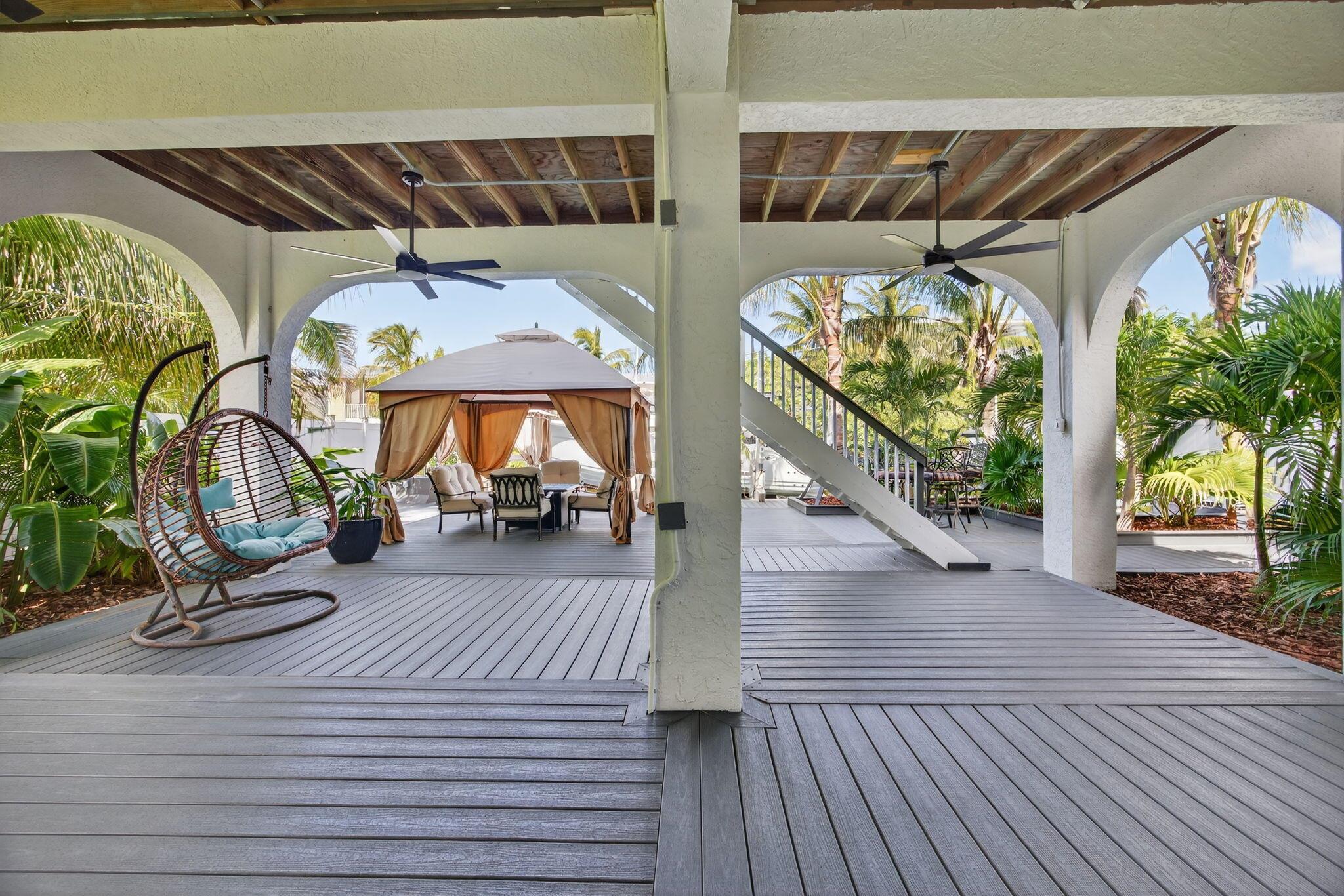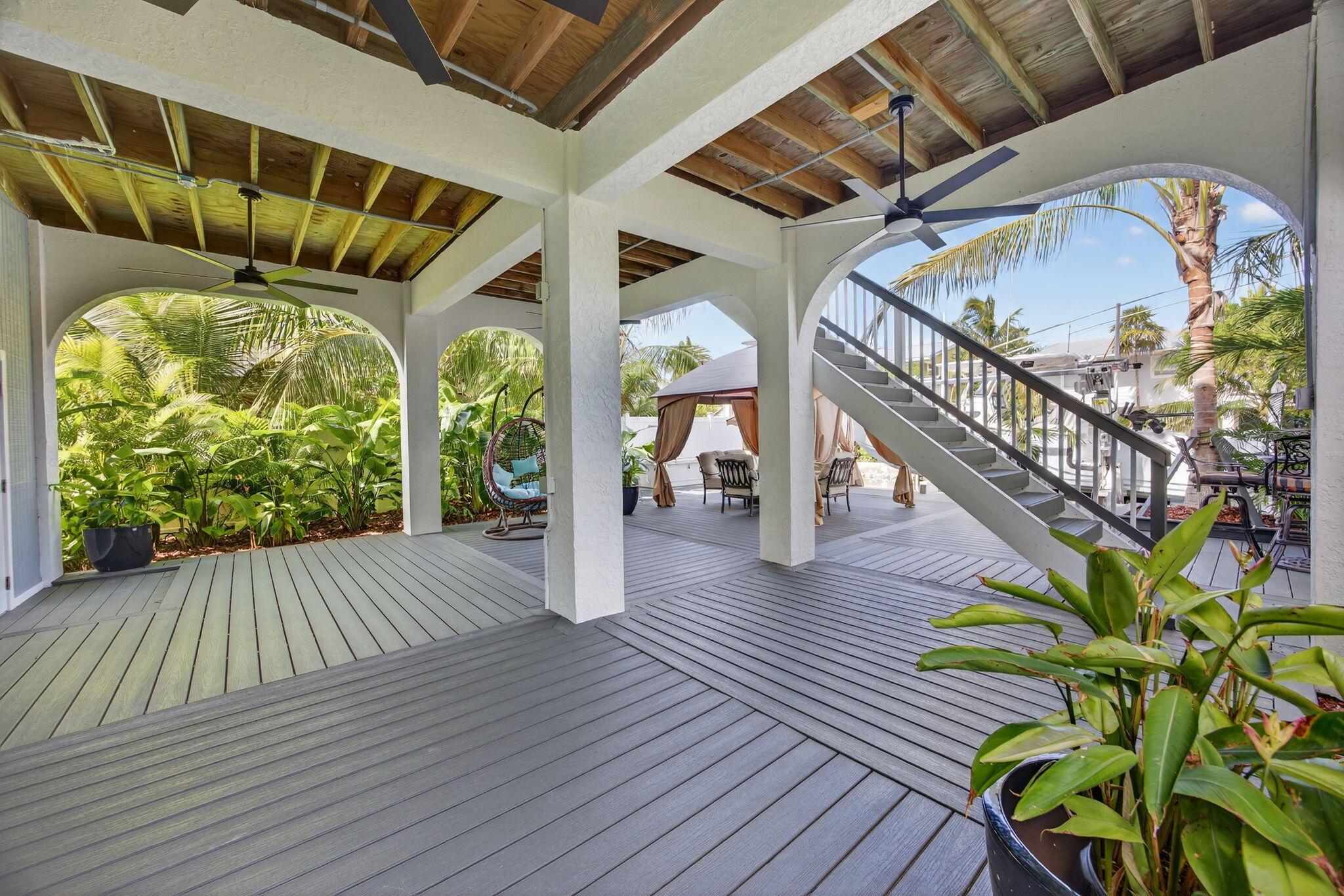 Tropical Keys Oasis -- Waterfront Luxury Living -- Come experience this one-of-a-kind tropical oasis that feels like living at a Keys resort. Surrounded by lush landscaping, vibrant grass is the backdrop for nine coconut palms, five banana trees, two mango trees, and an avocado tree, this property bursts with natural beauty. Vibrant bougainvillea archways create a stunning entry to one of the most exquisitely landscaped homes on the island. Enjoy 60 feet of waterfront with an expansive maintenance free deck, a 15,000-lb boat lift for up to a 33-foot boat and a drop dock perfect for swimming in the lagoon or launching kayaks. Outdoor living is elevated to the next level--exactly what you'd expect in the Florida Keys. Inside, discover a newly renovated beautiful 4-bedroom