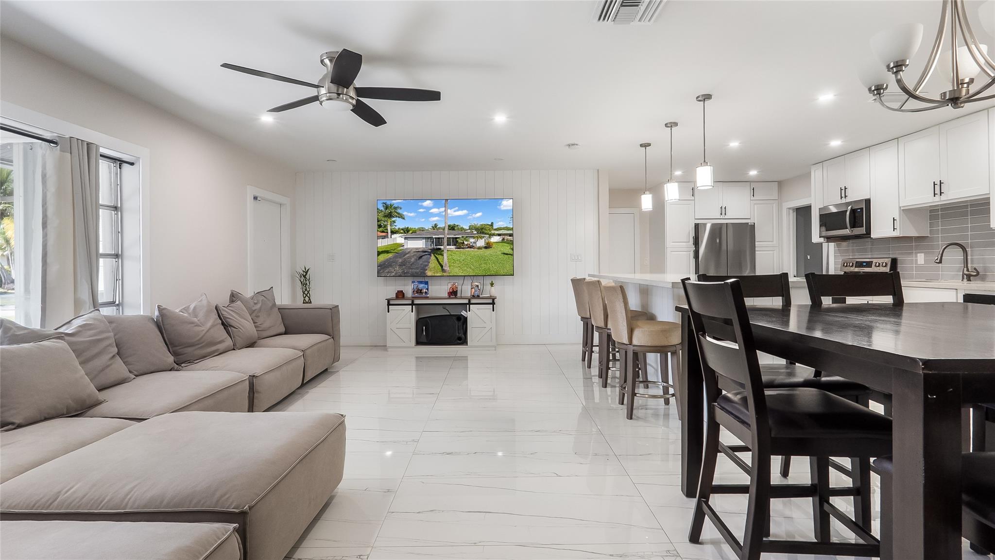 Welcome to this beautifully renovated single story home offering, 3 bedrooms,3 bathrooms, and a versatile bonus room. Enjoy the comfort of a fenced yard along with enclosed front and back patios. The home features an impressive chef-style kitchen with an oversized island, truly a showstopper at the heart of the home. Throughout the main living areas, brand-new porcelain flooring adds a sleek, modern touch, complemented by tastefully remodeled bathrooms. Additional upgrades include a new roof and accordion shutters. One of the rooms offers a private entrance, making it ideal for guest accommodations or potential rental income. Best of all, the property is located in a beautiful, well-maintained community with a low HOA. This is modern living at its finest, move-in ready and sure to impress