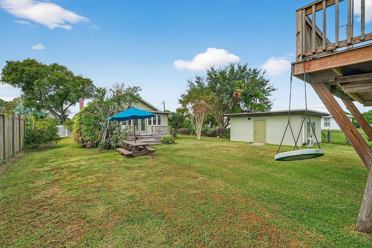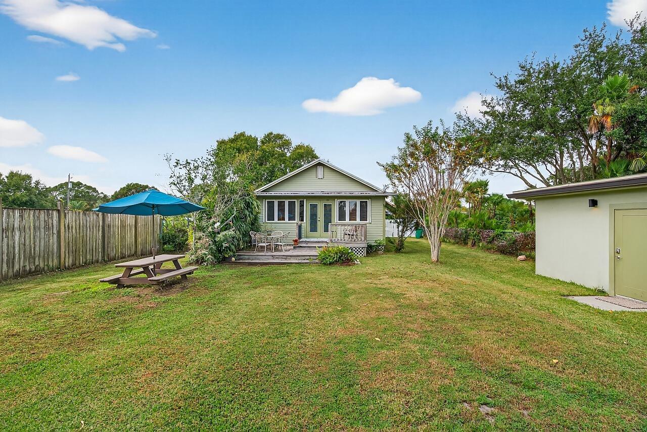 Step into history with this meticulously maintained 1926 Montgomery Ward ''Glen Ellyn'' kit home in Old Ft. Pierce. Loved by the same owner for 20+ yrs, this beauty is move-in or vacation rent ready (most furnishings incl.).The main home charms w/ high ceilings, original Dade County pine floors, & custom built-ins. The kitchen features a commercial 6-burner gas stove. Unique lot features the original water tower, now a custom tree house w/ deck. A detached 380 sq ft guest house offers great income potential, complete w/ a full bath, closet system, & small appliances. The laundry is located in the guest house structure but features a separate entrance, allowing for private use by a renter or the main house. Upgrades include a deep well (great water quality) & abundant custom storage.