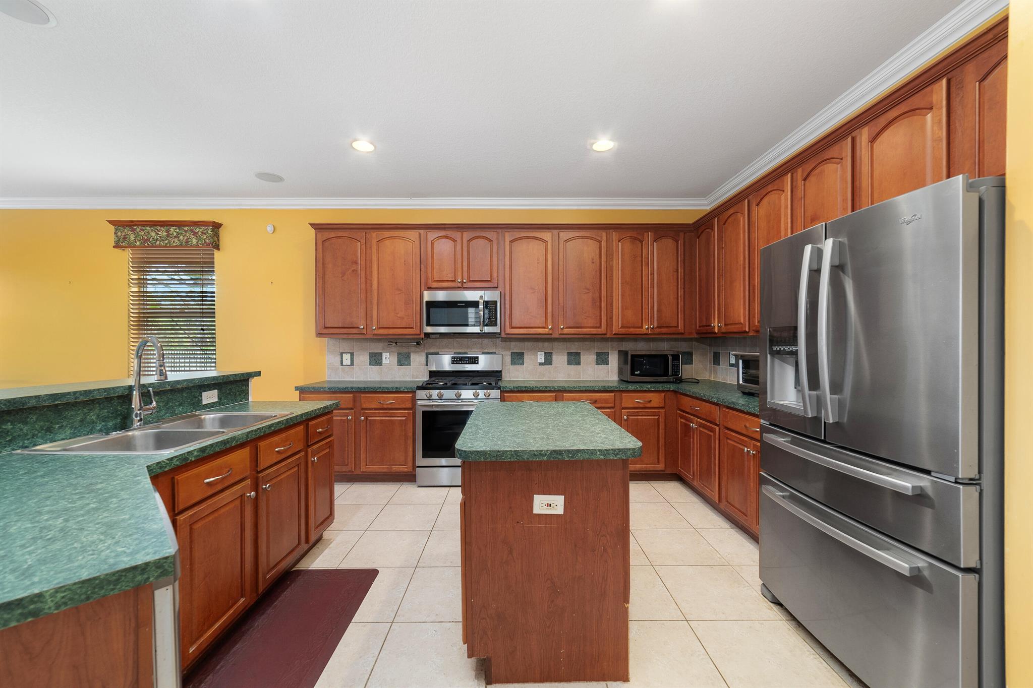 BRAND NEW ROOF ! This spacious 5 bedroom, 3 bathroom, 3-car garage, POOL home features a convenient one bedroom and full bathroom on the ground level. The kitchen is equipped with stainless steelappliances, gas stove, plenty of cabinets for storage, and a pantry closet. The primary bedroom offers an oversized bonus space that can be utilized as a nursery, office or relaxation room, and a walk-in closet. The primary bathroom offers a separate tub and shower. One of the guest bedrooms has a walk-in closet. There is a separate laundry room with a full size washer and dryer. Relax or entertain your guests on the screened-in patio with the refreshing pool (new pool pump) and a built-in bar.
