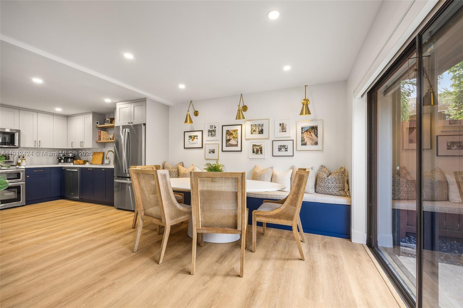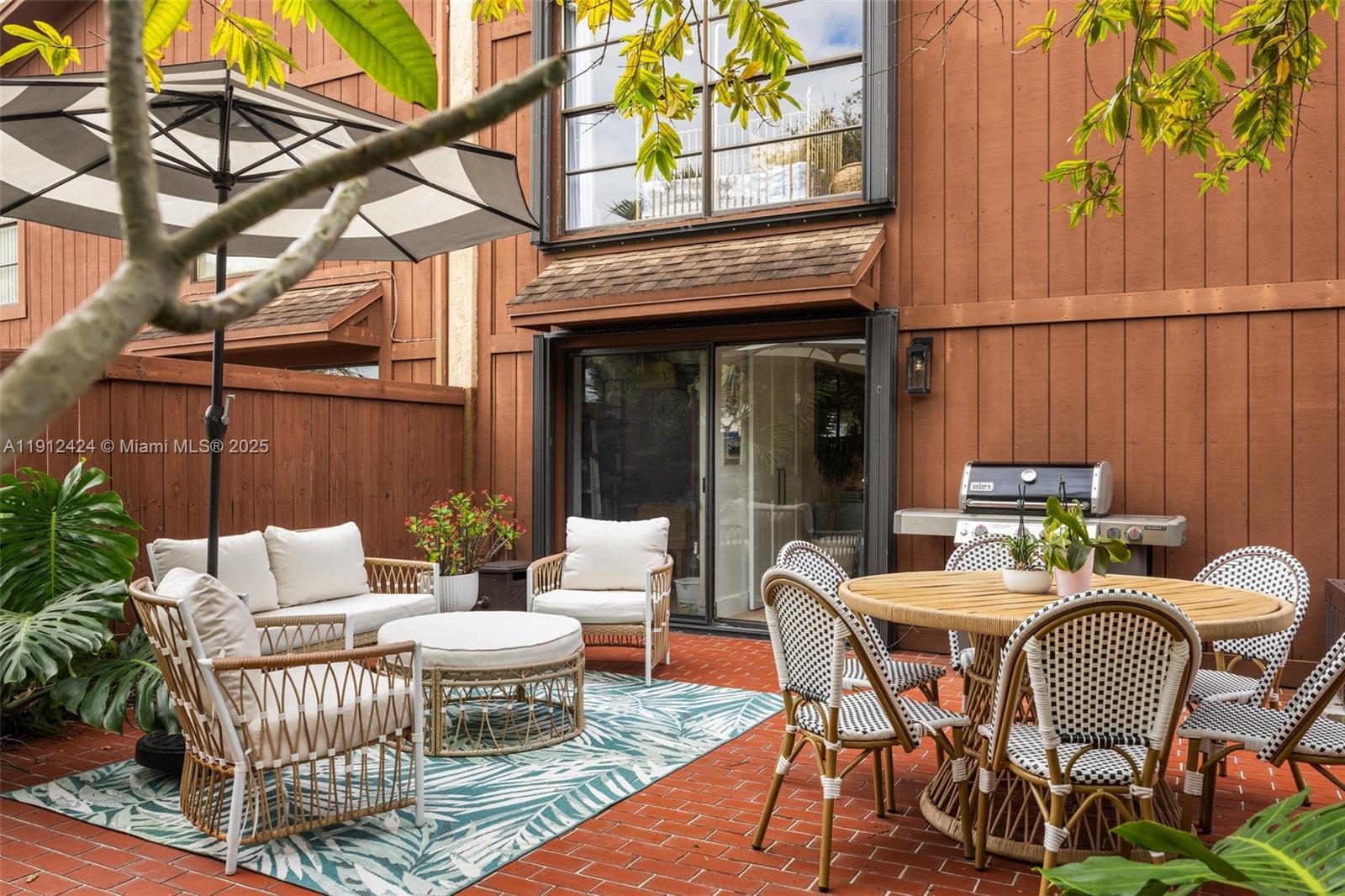 Beautifully remodeled and thoughtfully curated, this 3BD/2.5BA townhouse in gated Snapper Village offers warm, modern living with seamless indoor–outdoor flow. The home features LED recessed lighting throughout, updated kitchen with quartz countertops, custom cabinetry, built-in pantry, and a full-length bench that anchors the dining area. The bright living room opens to a lush, fenced backyard designed for relaxing and entertaining. Upstairs, all bedrooms include built-out closets and refined finishes. A front courtyard, dedicated storage room, and landscaped setting further enhance this home. The community offers resort-style amenities including a pool, tennis courts, playground, and 24-hour security, with an HOA that includes exterior maintenance, cable, internet, water, and more.