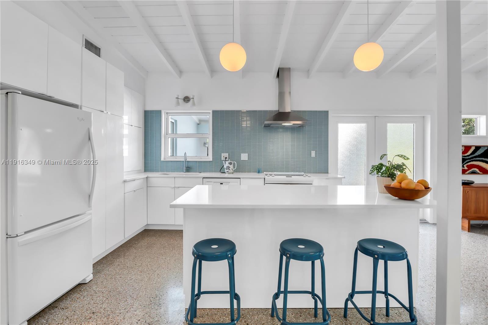 Experience tropical charm with cozy elegance in this beautifully updated 2 bedroom, 2 bathroom home in the heart of Fort Lauderdale. Tall ceilings and restored terrazzo flooring create an airy, welcoming ambiance, while the kitchen features new cabinets, countertops, and a movable island perfect for versatile use. Sunlight pours in, highlighting tranquil views of the lush yard with native plants, butterflies, and mature mango and banana trees for a soothing resort-like feel. The primary bedroom offers a peaceful retreat with walk-in closet, en-suite bath, and direct access to the screened-in patio. With impact windows and doors and a layout that flows effortlessly, this home delivers a rare blend of tropical escape and everyday ease just minutes from all that Fort Lauderdale offers.