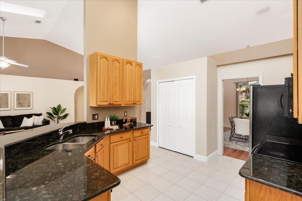 This elegant 4 Bedroom 2 bath residence in prestigious Carriage Gate showcases refined updates and timeless design on a half acre. A new roof (2023), fresh interior and exterior paint and new bedroom carpet complement rich tile flooring throughout the living areas. The gourmet kitchen features 42''cabinetry and granite counters with breakfast bar and nook. The primary suite offers a spa-inspired retreat with jacuzzi tub and step in shower and an EXPANSIVE walk-in closet. An enclosed air conditioned lanai with wet bar opens to the screened in pool creating an exceptional setting for indoor-outdoor entertaining. Complete with a 3 car garage with lots and lots of storage. Lush landscaping surrounds this home. Amenities include Tennis courts, pickle ball, basketball playground.