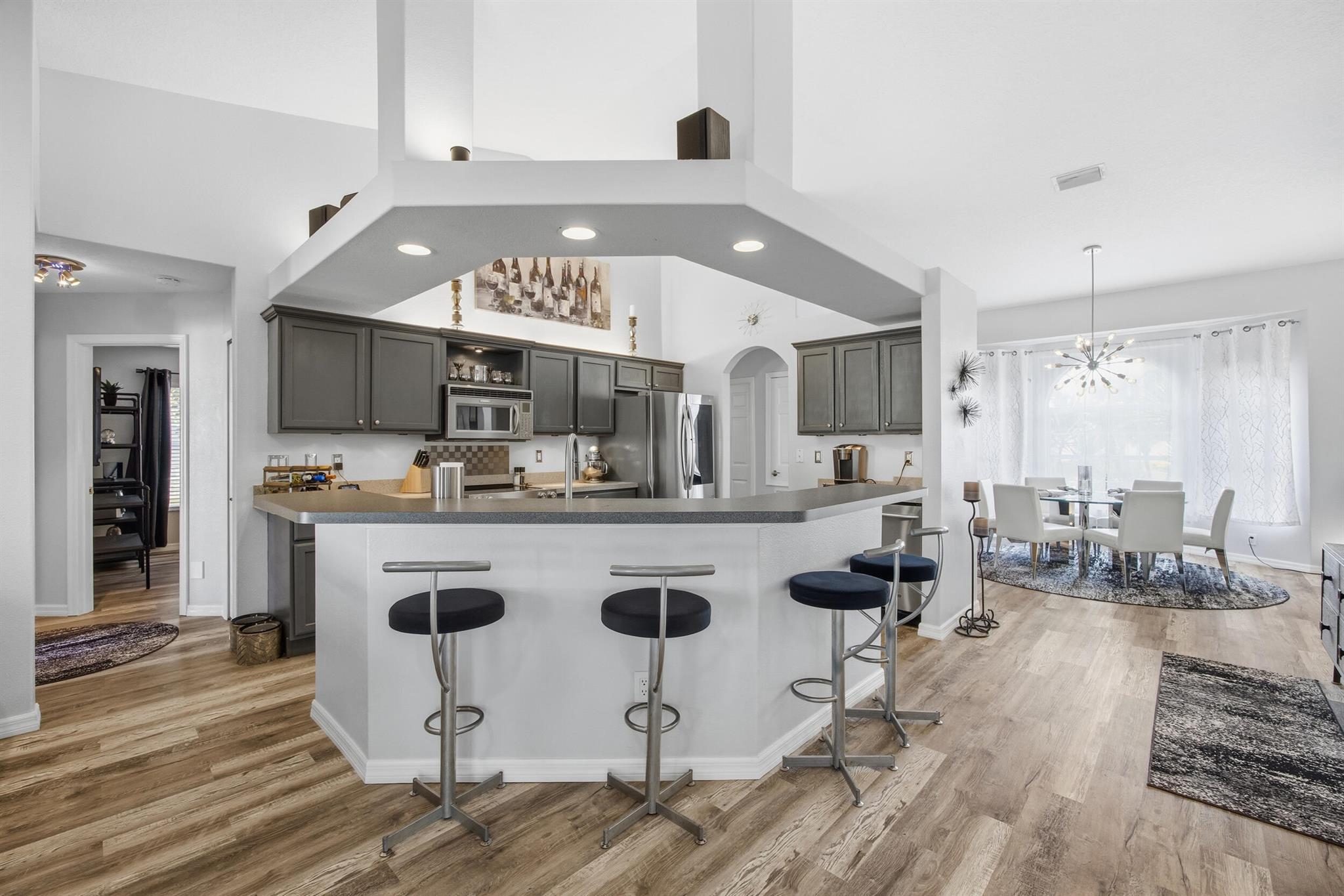 Welcome to this beautifully updated 3-bedroom, 2-bath CBS pool home offering over 2,000 sq. ft. of elegant living space in one of Port St. Lucie's most desirable neighborhoods. Designed with modern style and everyday comfort in mind, this residence features soaring volume ceilings, a bright open floor plan, and multiple living spaces perfect for entertaining or relaxing. The spacious kitchen boasts updated cabinetry, stainless steel appliances, an eat-in area, and a breakfast bar overlooking the family room--creating the ideal central gathering spot. The formal dining and living areas are filled with natural light, offering the perfect blend of sophistication and warmth.
