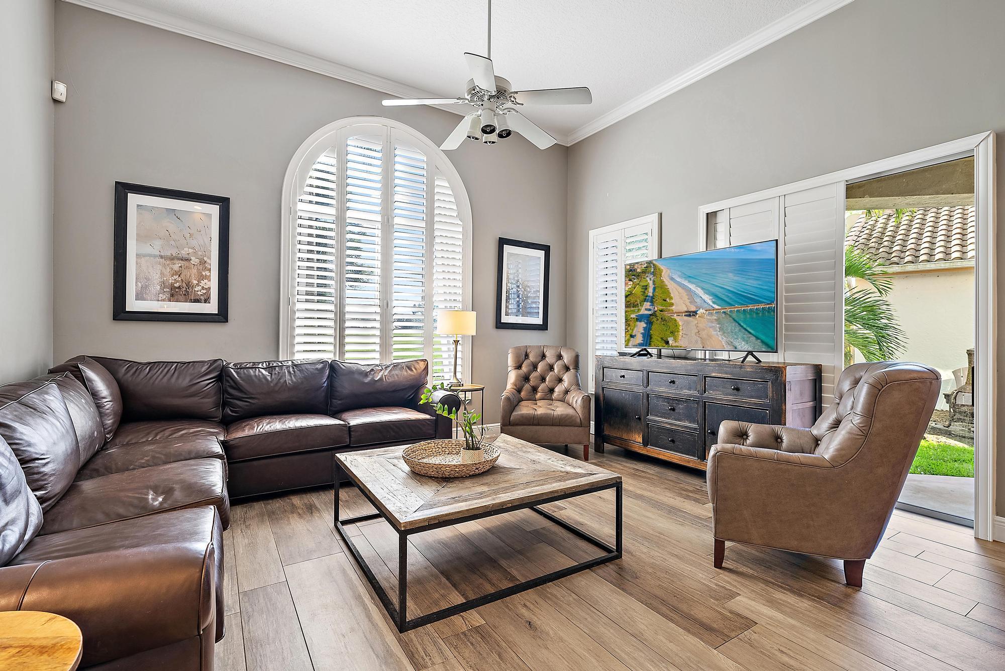With long, sweeping views of the 2nd hole of the Nicklaus-designed Heritage Course, this upgraded and beautifully maintained Mahogany model in Osprey Creek offers exceptional value, modern luxury, and one of the most versatile floor plans in Ibis. Ideally located within walking distance to the Club and its world-class amenities, this residence blends timeless architecture with more than two decades of thoughtful, high-quality improvements. Inside, the home has been transformed with a series of top-tier renovations, culminating in a professional-grade chef's kitchen that rivals those found in luxury custom estates. The kitchen features a Thermador six-burner gas range with grill and double ovens, a Thermador microwave, warming drawer, and electric oven combo, a Sub-Zero refrigerator/