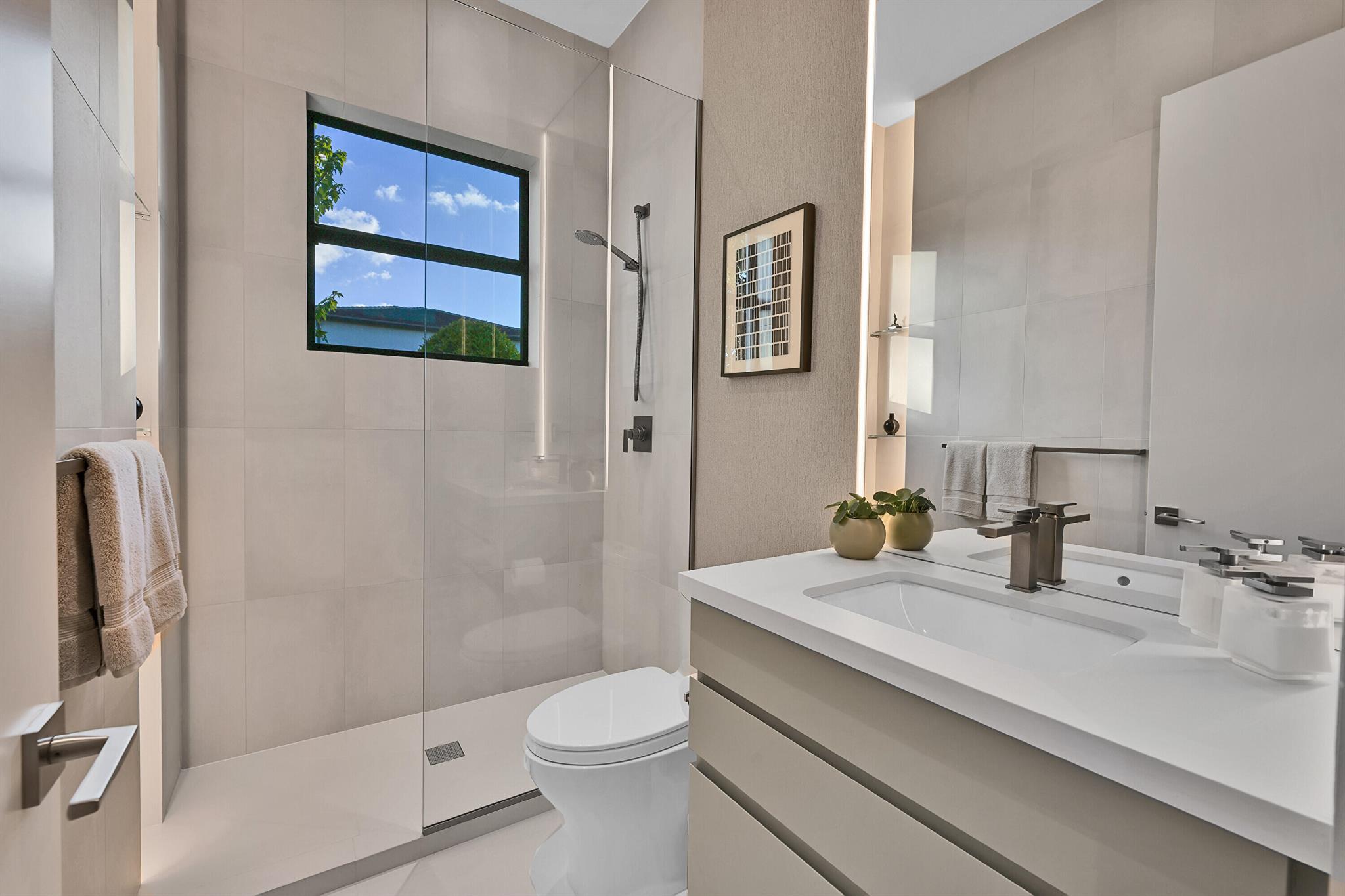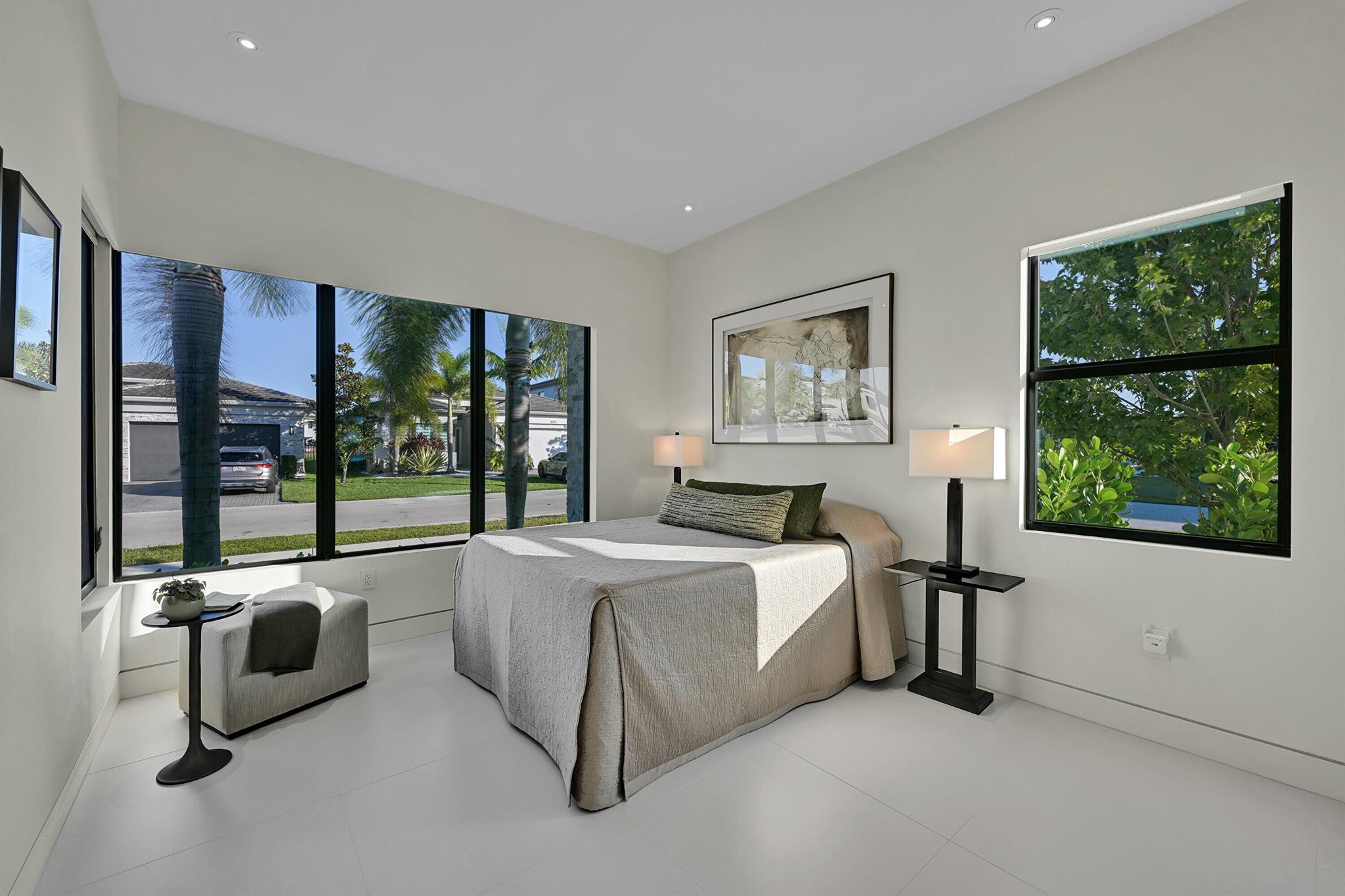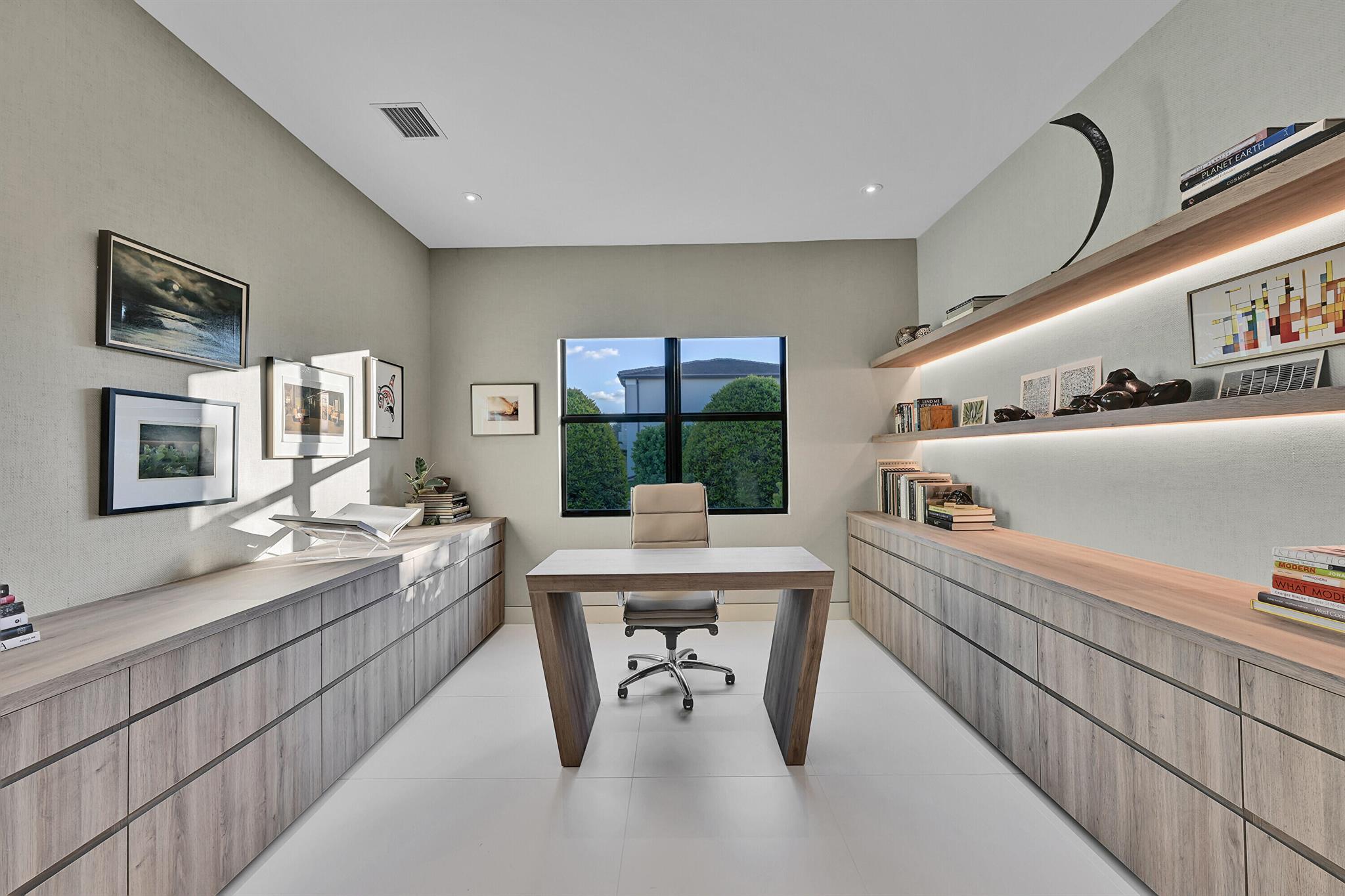 LULO Design Studio conceptualized the quiet luxury of this residence. Earth tones, exceptional materials & amazing craftsmanship and visual sophistication.No surface was left untouched. Custom cabinetry & lighting throughout thehome adds texture & warmth. The re-imagined kitchen features Wolf, Thermador & Fisher-Paykel. The primary bedroom is smartly appointed withcustom drapery and is generously sized. The primary bath seamlessly blends modern elements and tactile materials. The guest bath was reconfigured to maximize space. The powder room is fitted with a Taj Mahal quartz integrated sink & silk wallpaper. The Italian porcelain extends from inside the home to embrace the 40 ft heated/cooled saltwater pool. The LOTUS community features resort style amenities Clubhouse & pickleball.