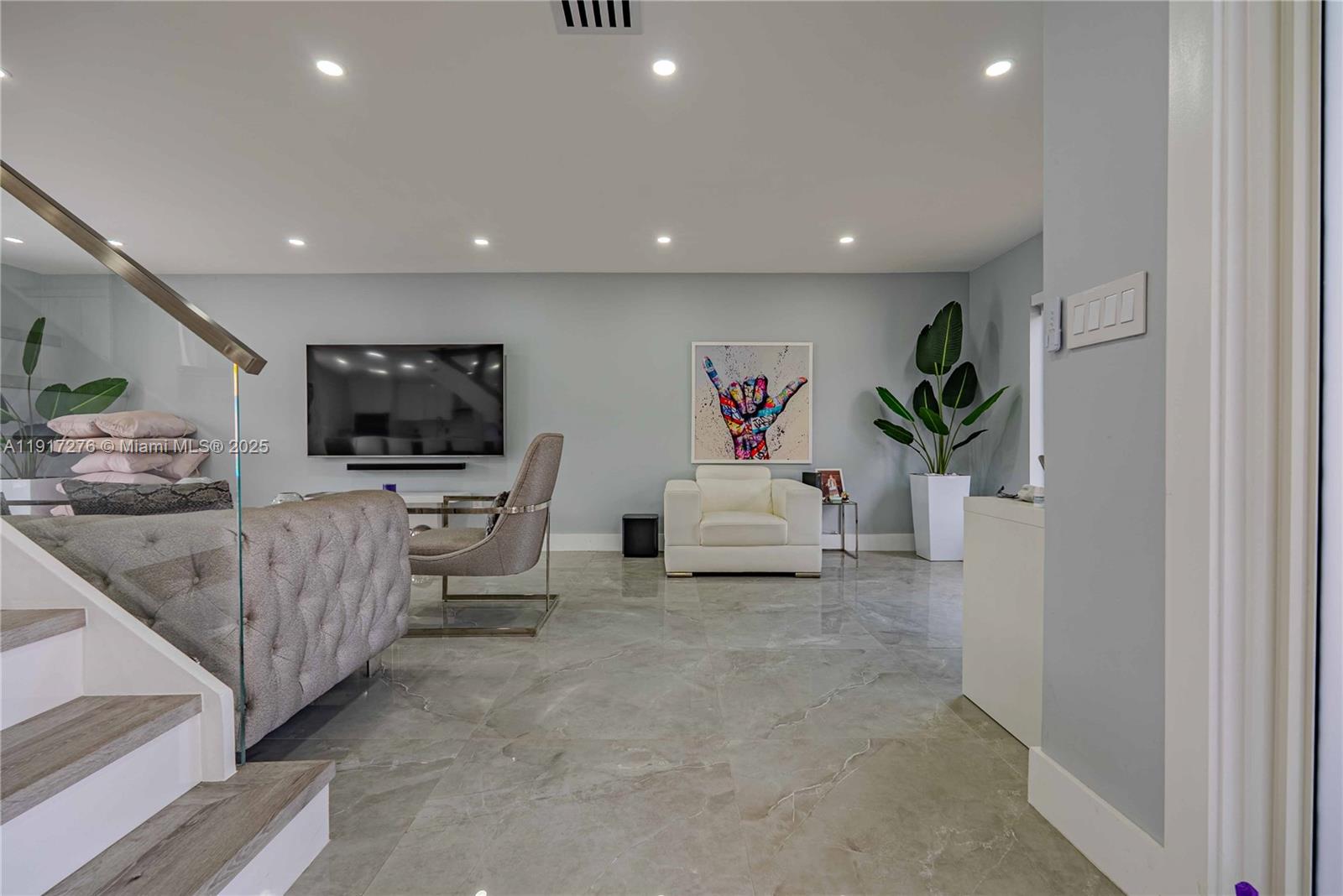 Beautifully updated 3-bedroom, 2.5-bath home in Miami Gardens, fully move-in ready with modern finishes throughout. This two-story property includes two remodeled bathrooms upstairs and a half bath on the first floor. The main level features updated window treatments with electric blinds and a fully renovated kitchen with quartz counters, sleek cabinetry, and a central island. Upgrades include impact windows and doors, a 3-year-old roof, newer A/C, and redesigned bathrooms with premium fixtures and heated mirrors. The spacious backyard offers great potential for outdoor living or future projects, making this home a perfect blend of comfort, style, and convenience.