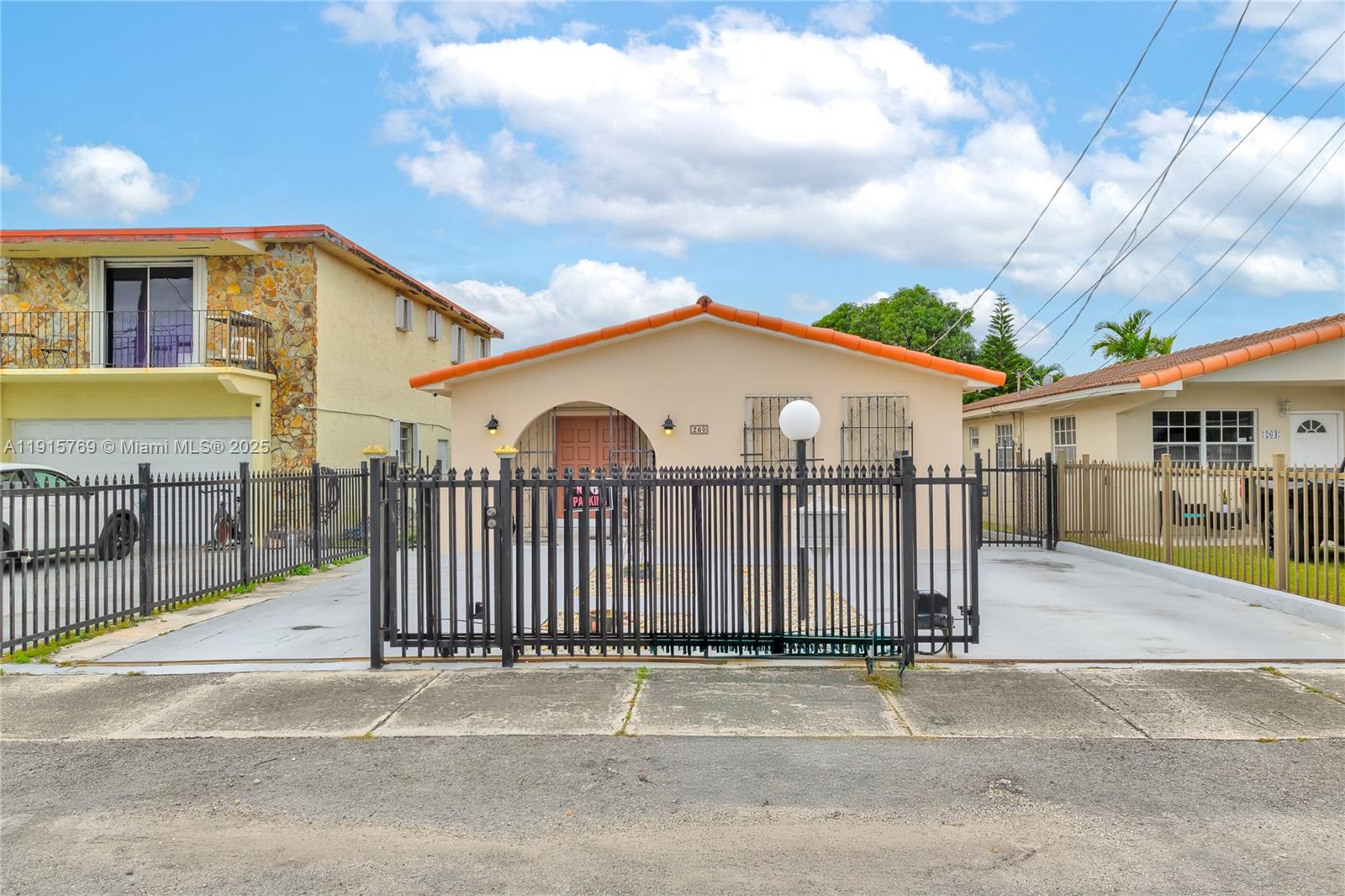 Beautiful single-family home in the heart of Miami offering a spacious and flexible layout. The main home features 2 bedrooms, 1 bathroom, a comfortable living area, open kitchen, and laundry room. Property also includes an additional room with a private entrance and full bathroom, ideal for use as guest space, home office, or multi-purpose area. This layout can comfortably function as a 3-bedroom / 2-bath home, offering versatility for different living arrangements. Fully fenced front yard, gated driveway, and excellent location near major highways, Miami International Airport, dining, shopping, and schools. No HOA. Centrally located and full of potential.