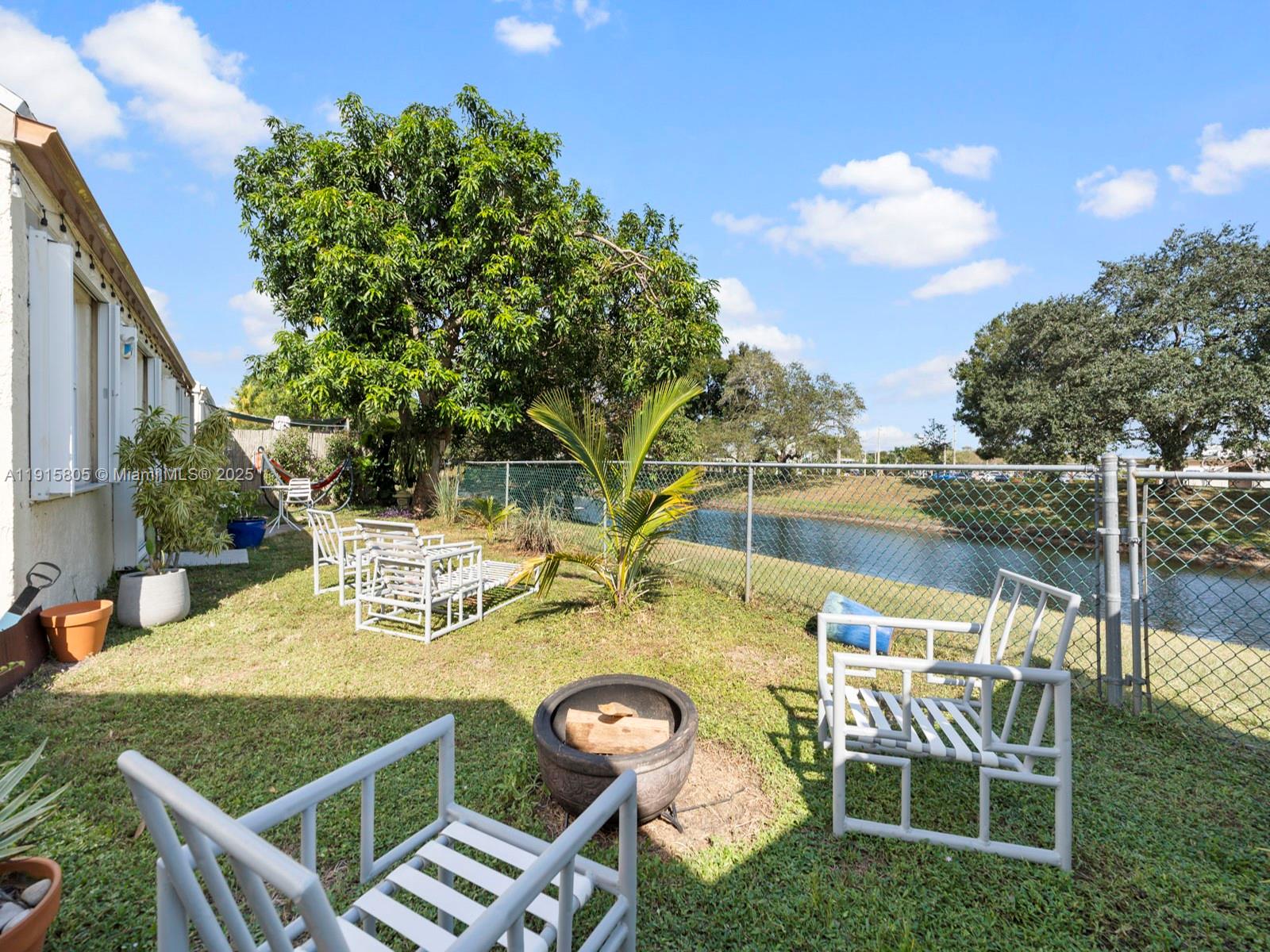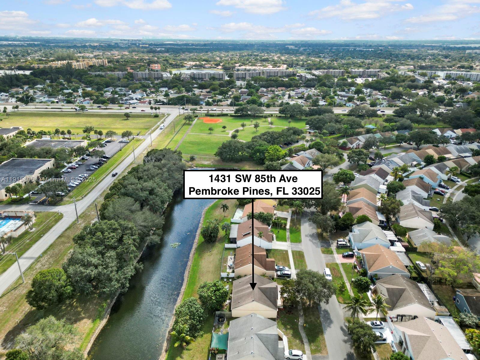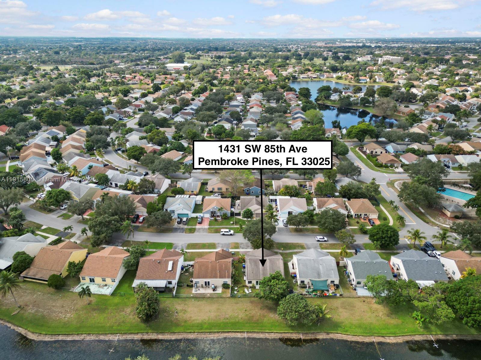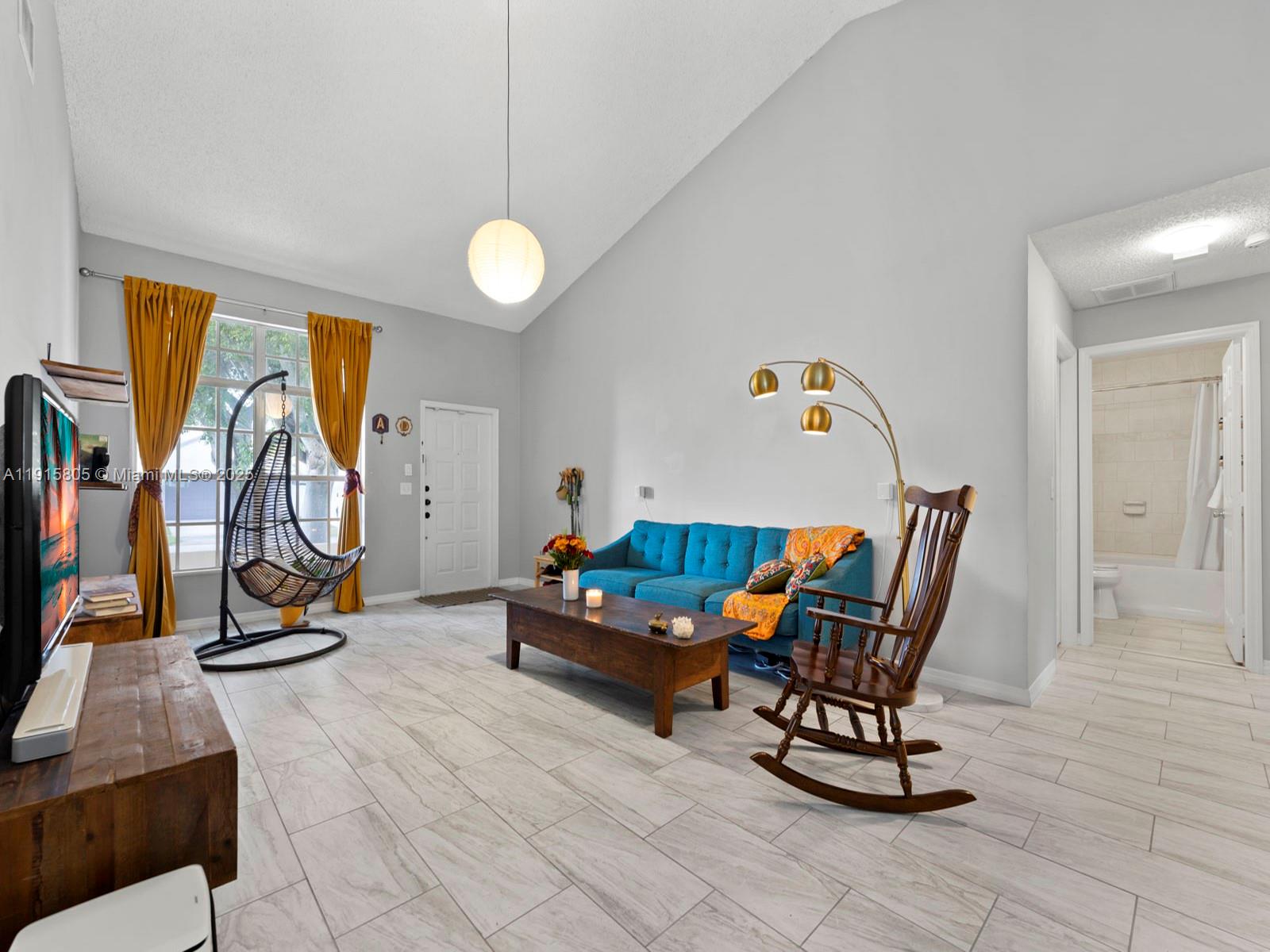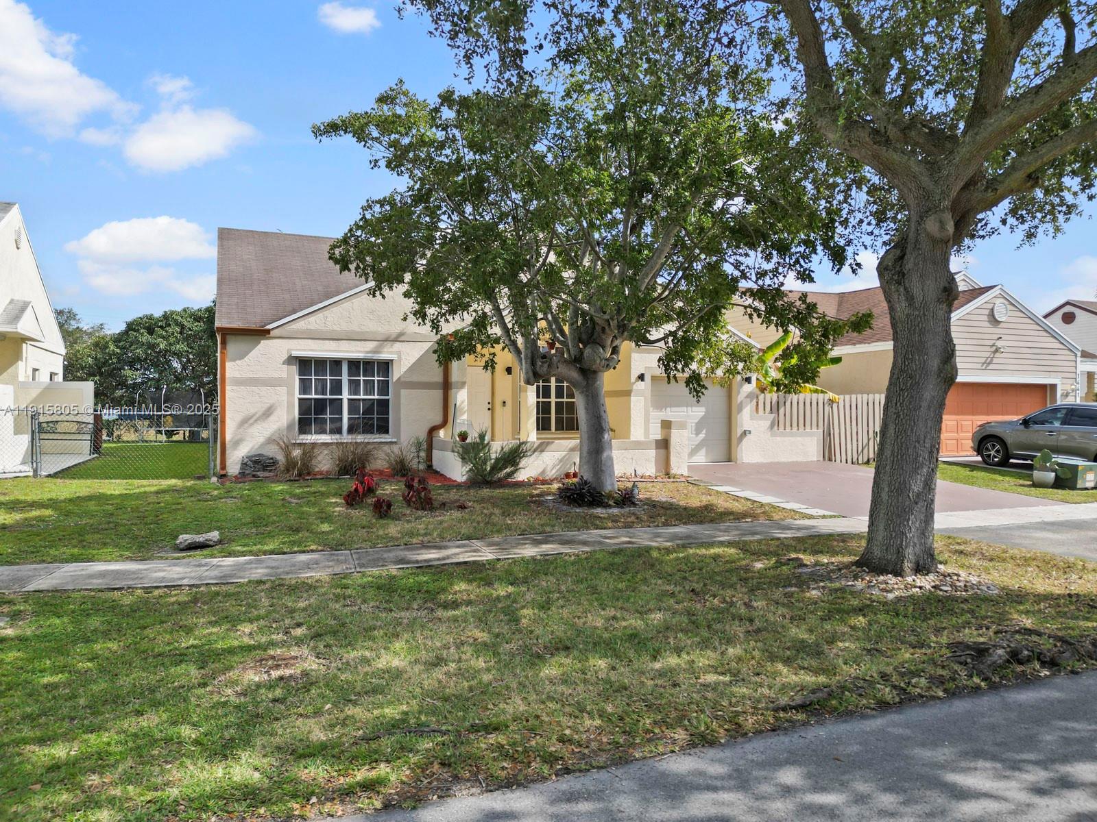Welcome to this tranquil, family-friendly community in Pembroke Pines. This charming home features 3 bedrooms, 2 bathrooms, and a 1-car garage, offering a layout full of potential. Enjoy added peace of mind with storm shutters, plus a private backyard lined with fruit trees and a calming waterway view. The high vaulted ceilings in the living area create an inviting sense of openness, while the flowing floor plan makes entertaining effortless. The low HOA of $151 per month includes access to a community pool, tennis courts, a playground, and more. Conveniently located near top-rated schools, shopping, and major highways