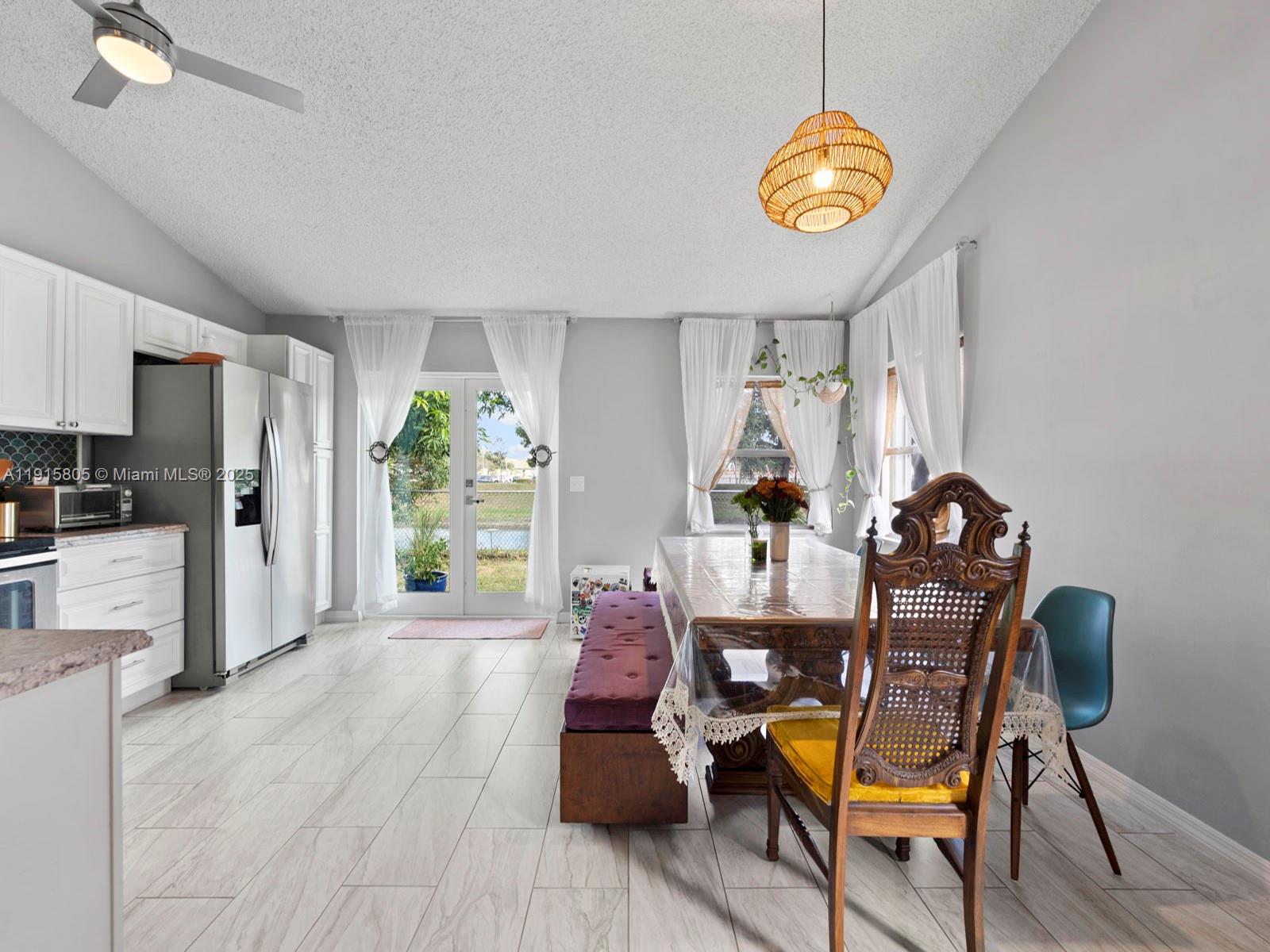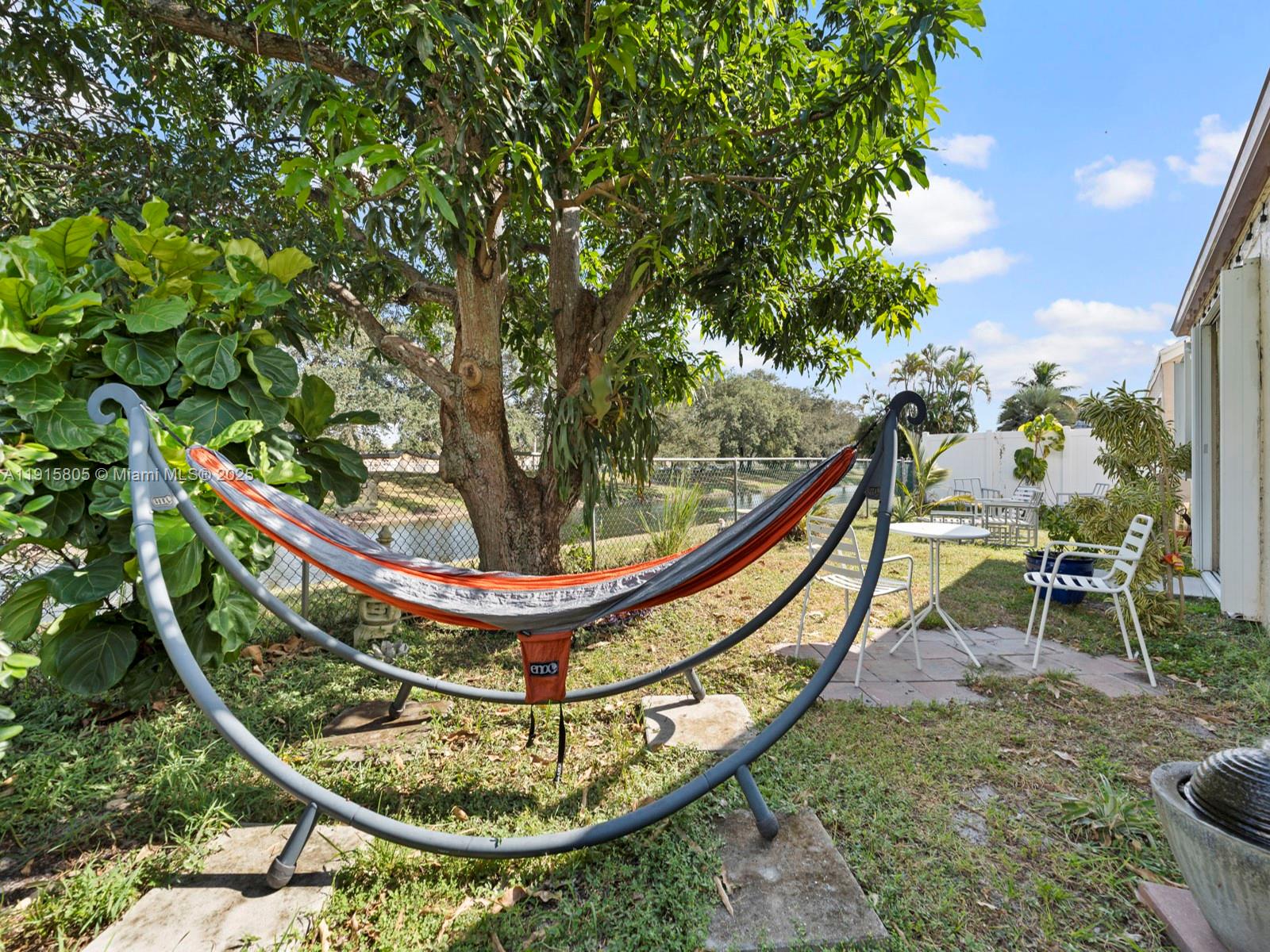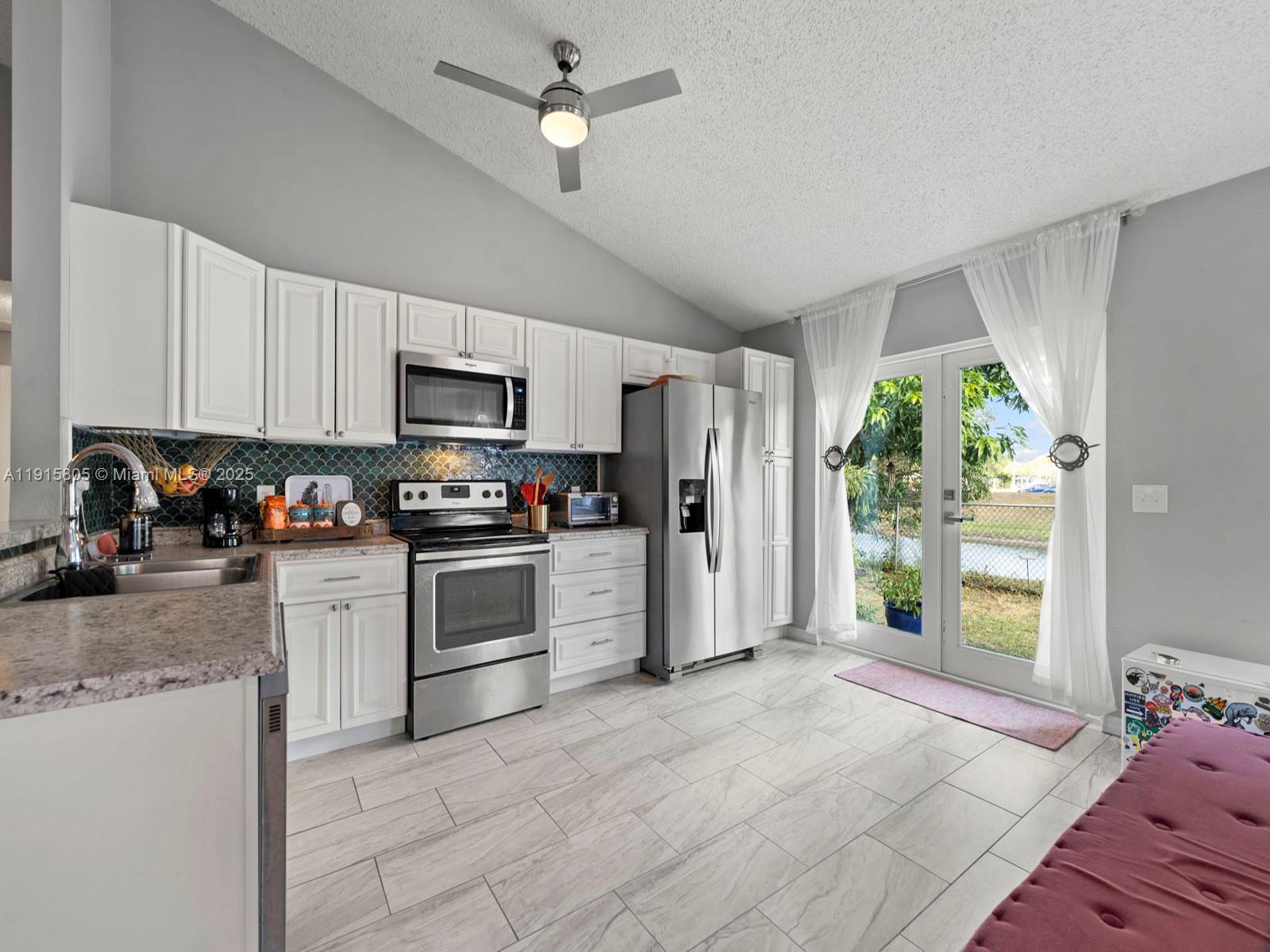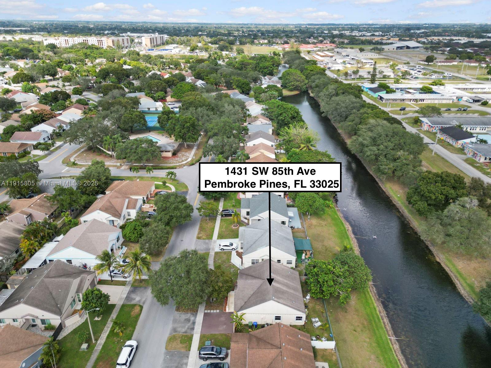 Welcome to this tranquil, family-friendly community in Pembroke Pines. This charming home features 3 bedrooms, 2 bathrooms, and a 1-car garage, offering a layout full of potential. Enjoy added peace of mind with storm shutters, plus a private backyard lined with fruit trees and a calming waterway view. The high vaulted ceilings in the living area create an inviting sense of openness, while the flowing floor plan makes entertaining effortless. The low HOA of $151 per month includes access to a community pool, tennis courts, a playground, and more. Conveniently located near top-rated schools, shopping, and major highways
