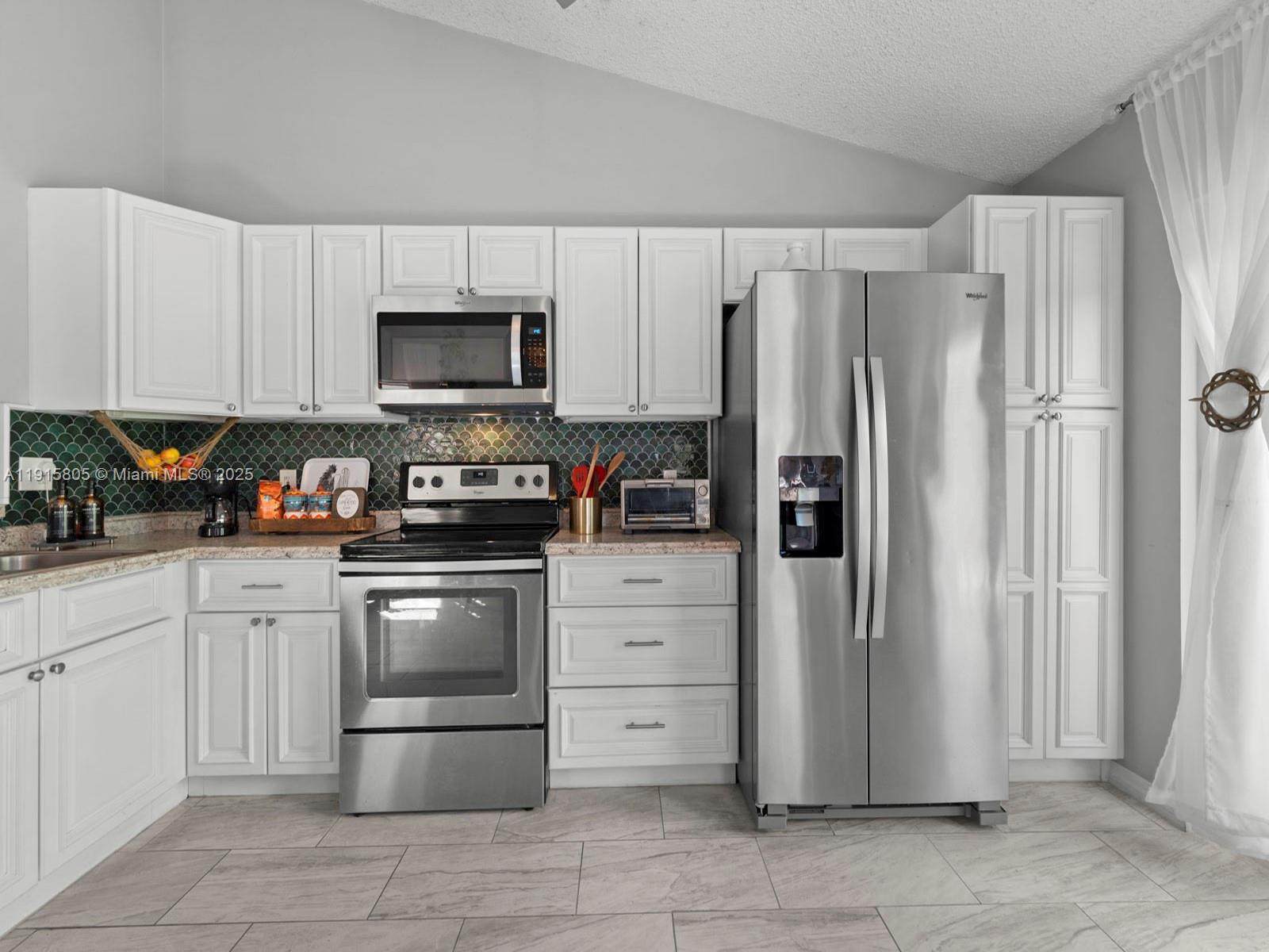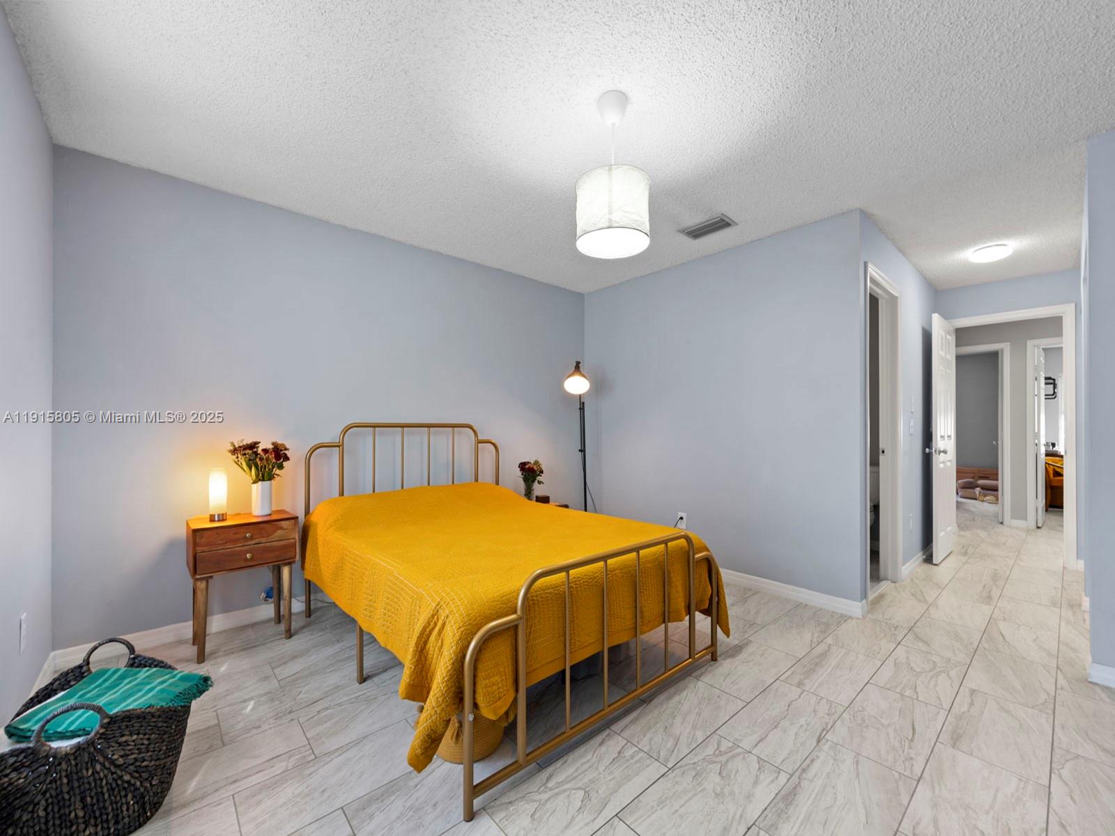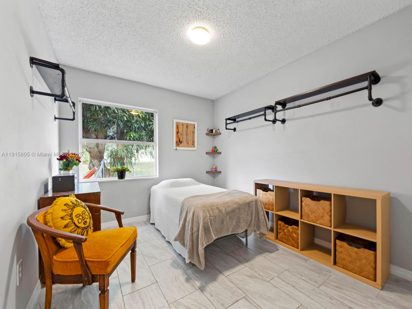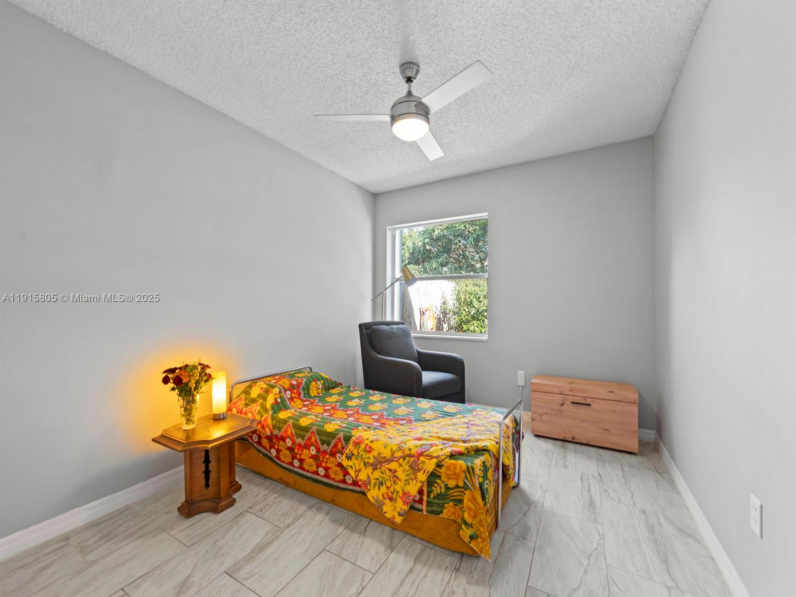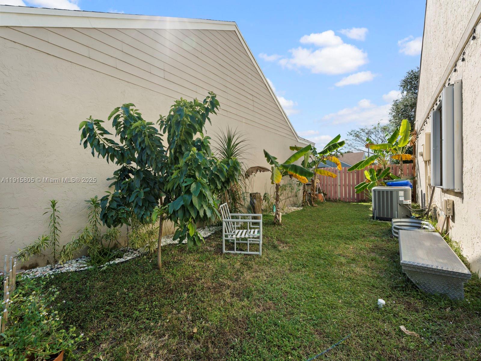 Welcome to this tranquil, family-friendly community in Pembroke Pines. This charming home features 3 bedrooms, 2 bathrooms, and a 1-car garage, offering a layout full of potential. Enjoy added peace of mind with storm shutters, plus a private backyard lined with fruit trees and a calming waterway view. The high vaulted ceilings in the living area create an inviting sense of openness, while the flowing floor plan makes entertaining effortless. The low HOA of $151 per month includes access to a community pool, tennis courts, a playground, and more. Conveniently located near top-rated schools, shopping, and major highways