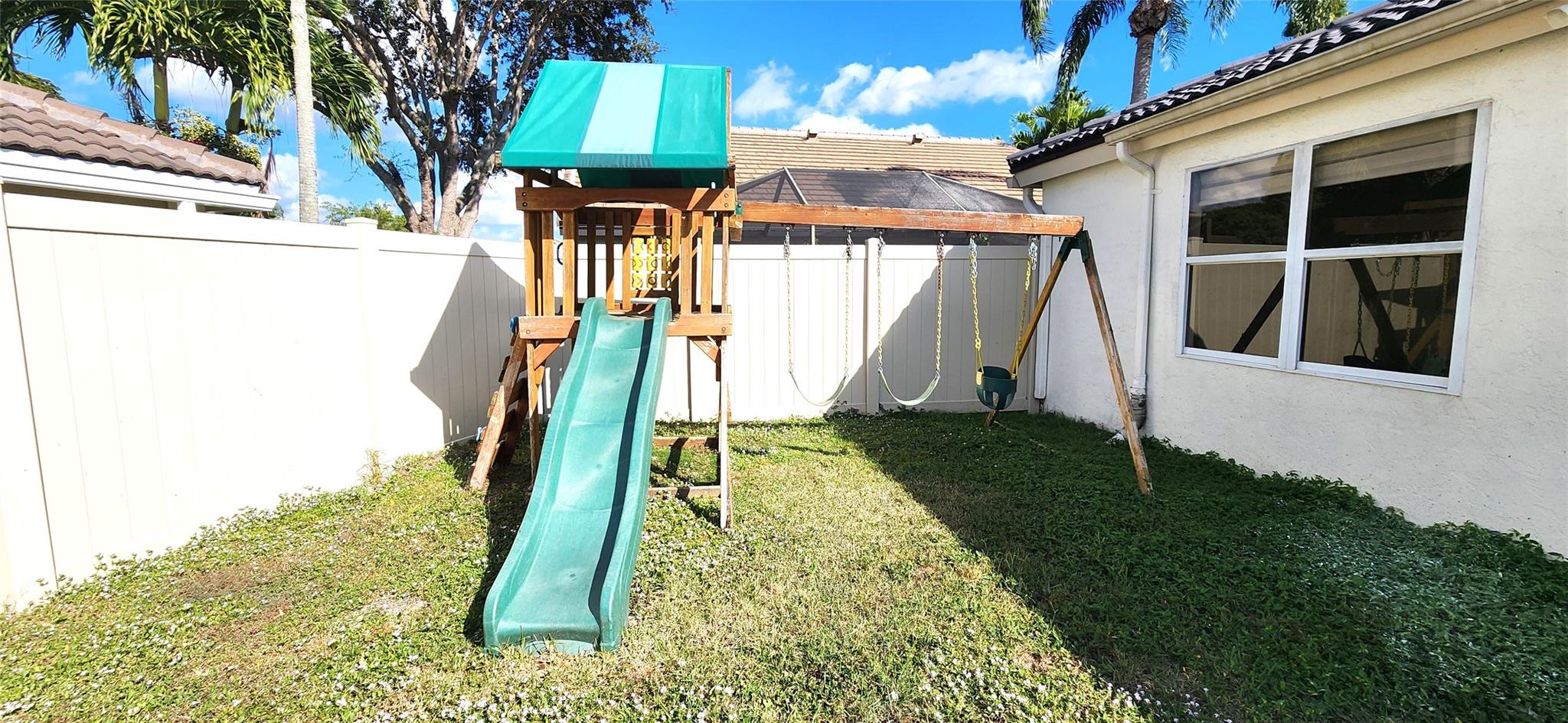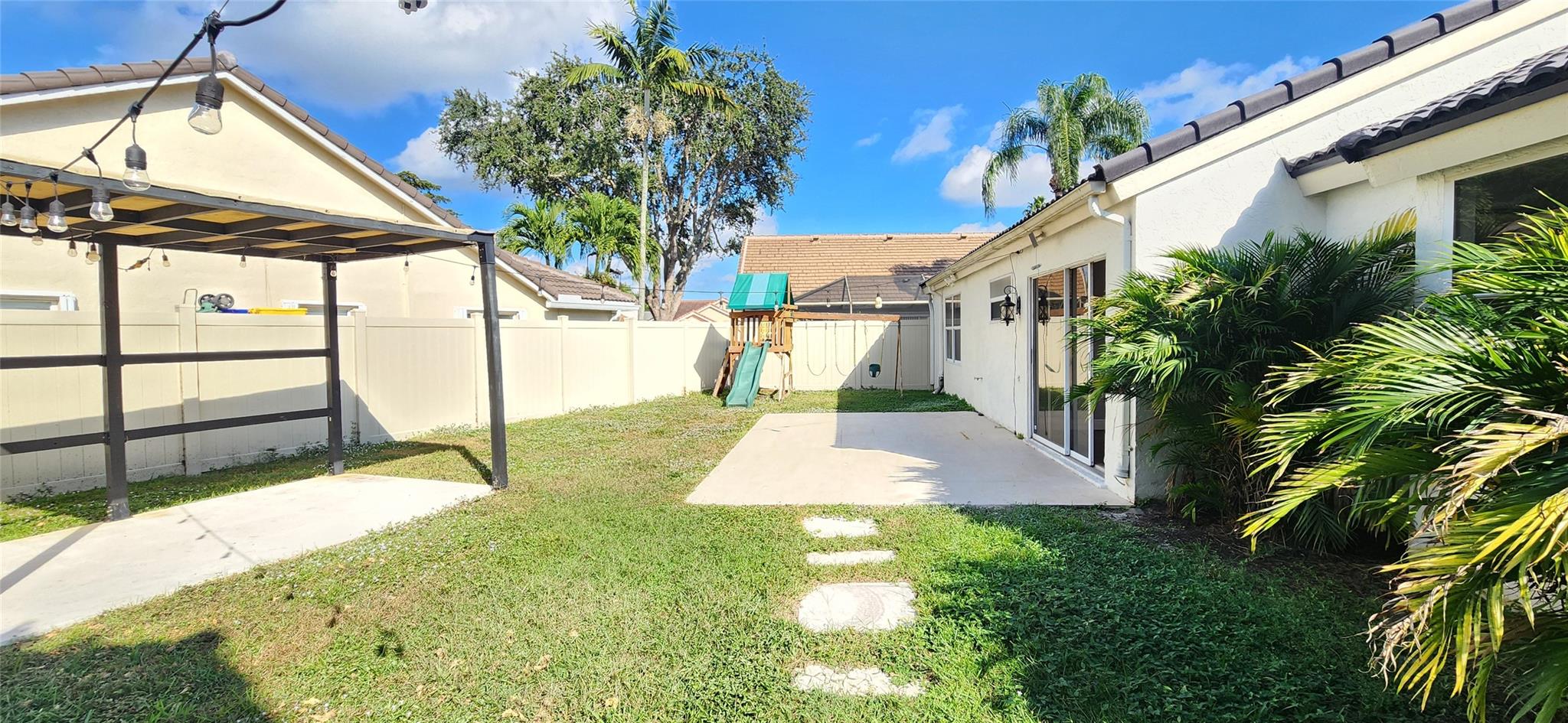 Discover this stylish (3/2+2-car garage) home featuring a desirable split floor plan in the sought-after community of Lakepoint. This spacious residence offers an inviting living space accented by stylish feature walls and light fixtures, abundant natural light, high ceilings, and a seamless flow between the living areas, creating an ideal setting for everyday comfort and gatherings. Step outside to the large backyard, complete with a swing set, open patio, and a covered porch perfect for entertaining family and friends year-round. Whether relaxing outdoors or hosting guests, this home offers the perfect blend of comfort and functionality. Situated in a secure community with top-tier amenities, schools, shopping, dining, and Wellington’s world-class equestrian venues. Low HOA