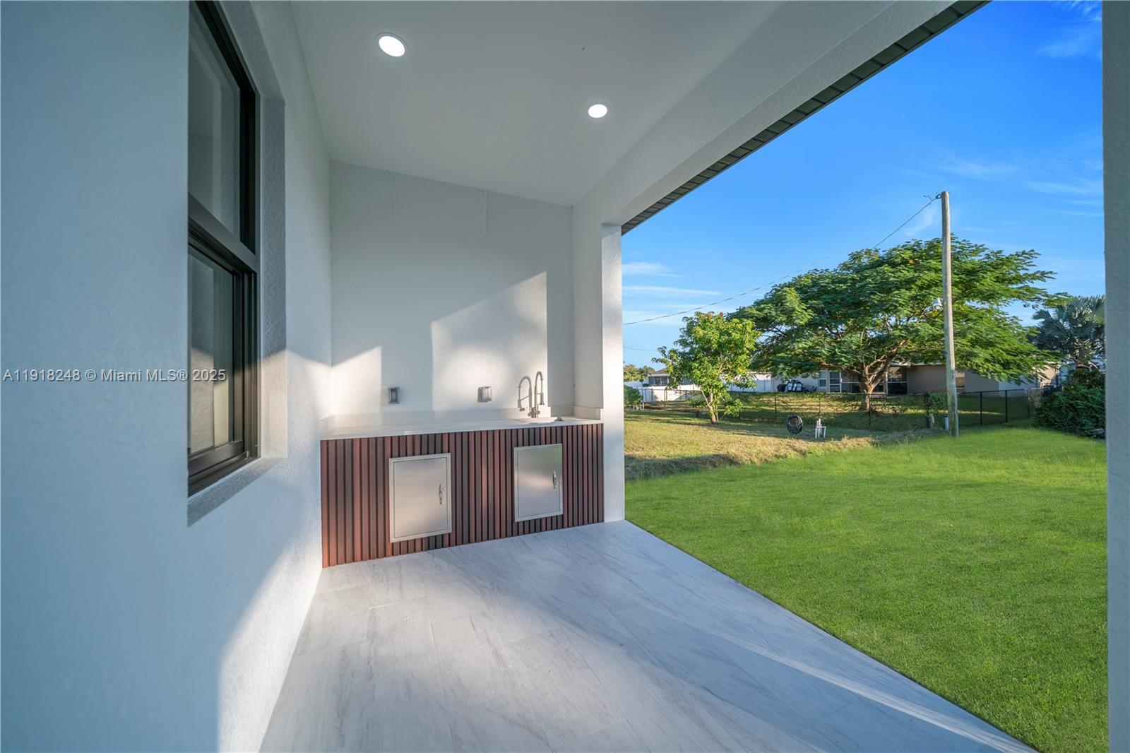 Amazing opportunity to own this new construction in prime Lehigh Acres location. This meticulously designed 3-bedroom, 2-bathroom home plus DEN offers high ceilings, porcelain tile throughout, and modern lighting fixtures. Gourmet kitchen features waterfall island with quartz countertops and high-end appliances. Additional features: impact windows and doors, 2-car garage and expansive lanai with outdoor kitchen ideal for entertaining. Move-in ready. This property won’t last - schedule your showing today!