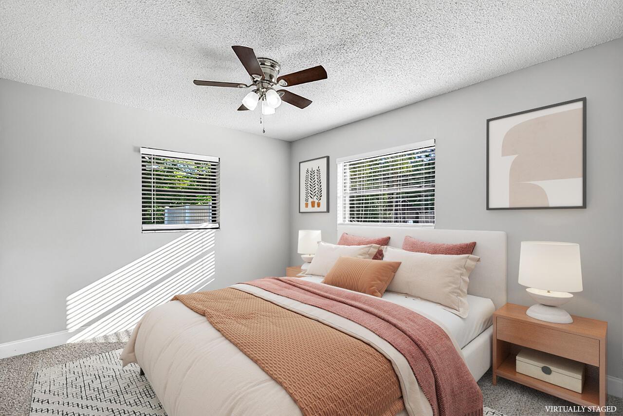 Its all done for you at this lovely, refreshed 3/2 home! Enjoy peace of mind w/ the solid CBS construction, 2021 roof, 2022 whole house solar panels (totally paid off- HELLO monthly electric savings $$!), 2020 AC & updates around every turn. Enjoy the breezy carport, covered patio & fenced yard that's nearly a third of an acre w/ a storage shed & playhouse! Fresh paint inside/outside + throughout there is new: flooring, baseboards, lighting, fans & blinds. The kitchen is thoughtfully complete w/ SS appliances, granite, subway tile, a pantry & even lazy susan cupboard! FHA seasoning date 12/30.