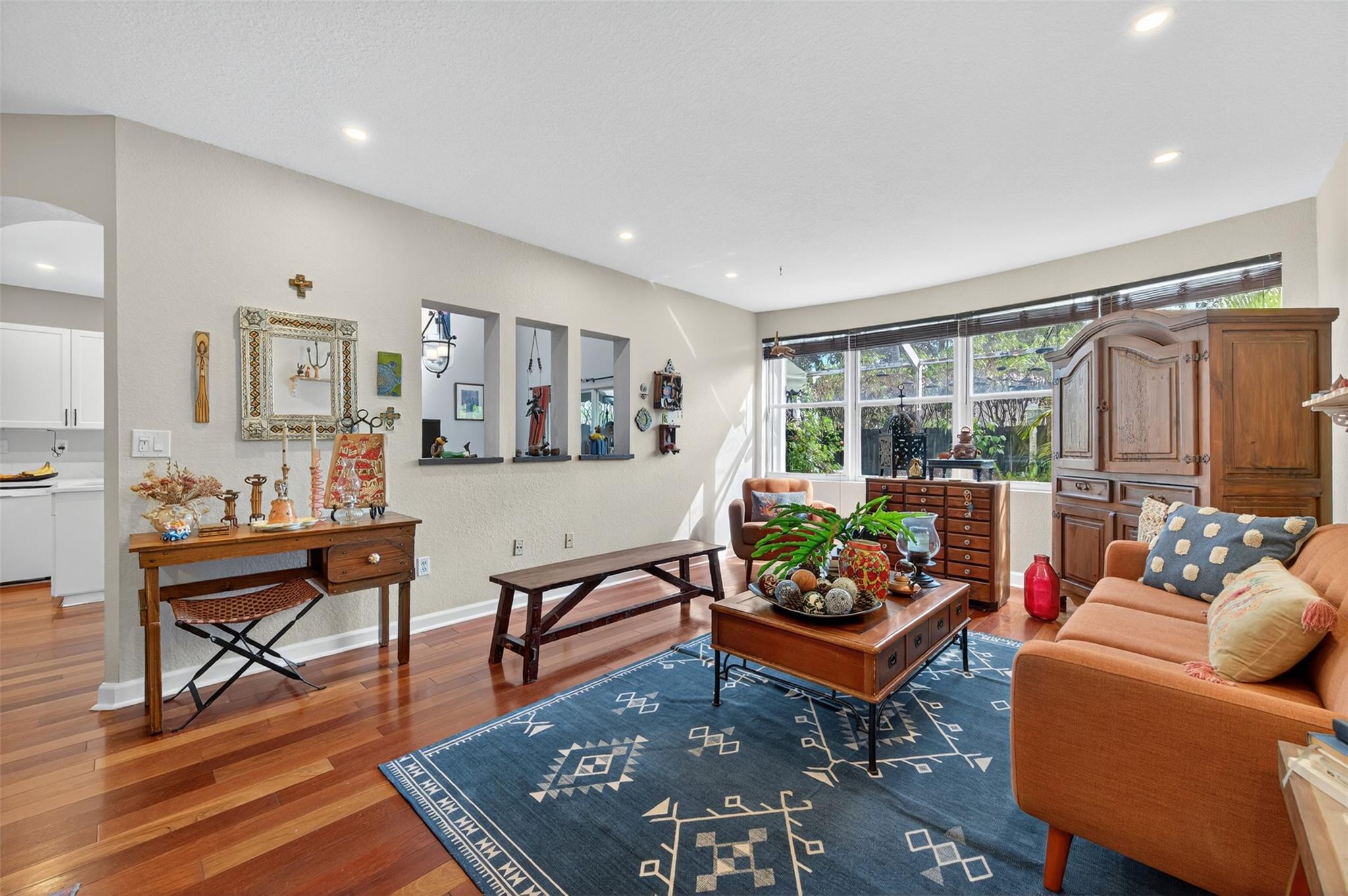 Impeccable home located in the highly sought-after Doral Isles community. This property sits on the best corner lot, offering exceptional privacy within the neighborhood. The spacious floor plan features 3 bedrooms + a loft that can easily be converted into a 4th bedroom, along with 3 full bathrooms. Beautiful hardwood floors throughout, generous living areas, and soaring ceilings in the family room create an open and inviting atmosphere. The upstairs bathroom has been tastefully renovated, and the home has been exceptionally well maintained. Additional features include an extended screened patio, accordion shutters, and more. Move-in ready and a pleasure to show. Enjoy resort-style amenities at Doral Isles, including pools, clubhouse, gym, playground, basketball & much more!