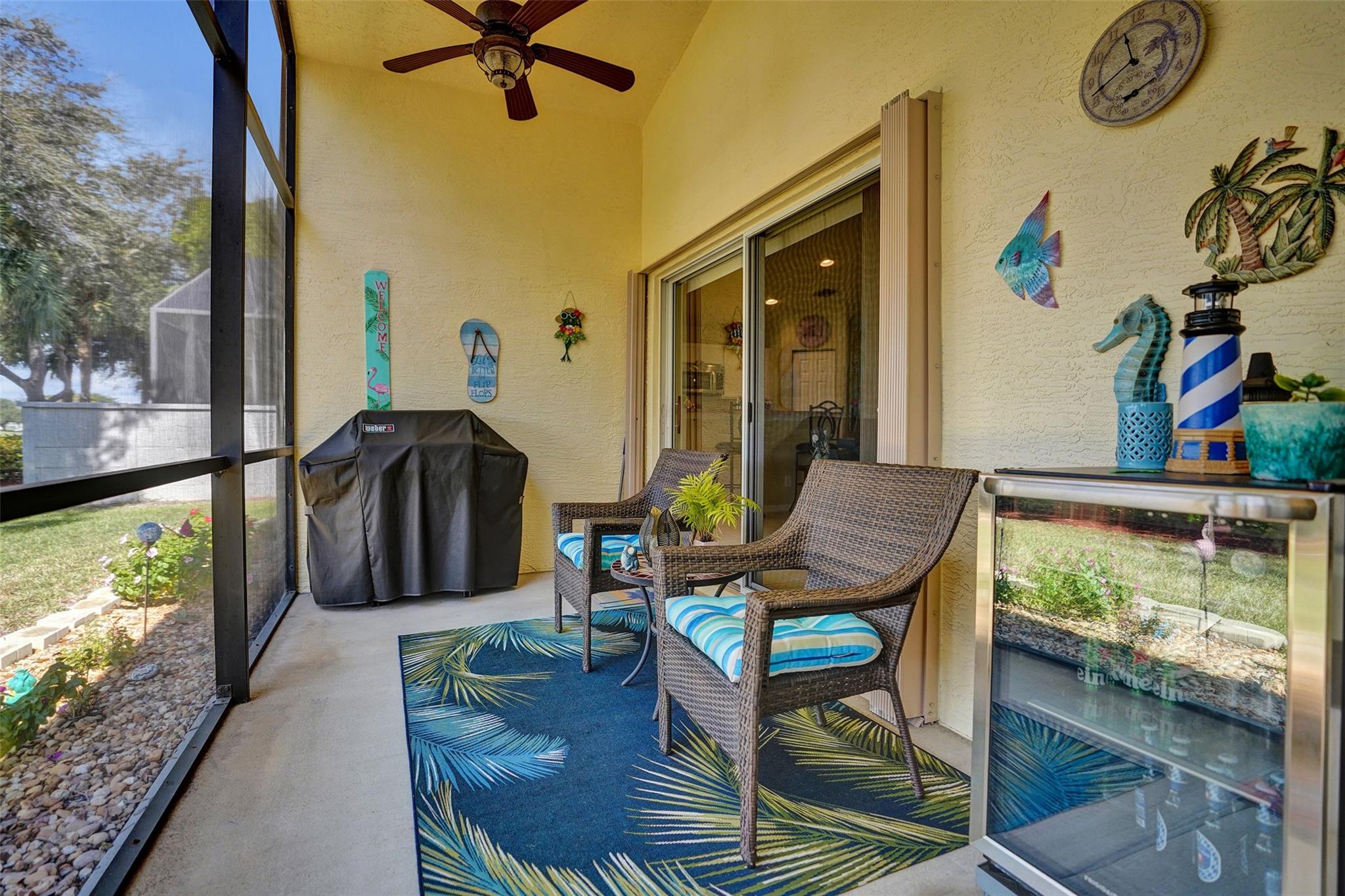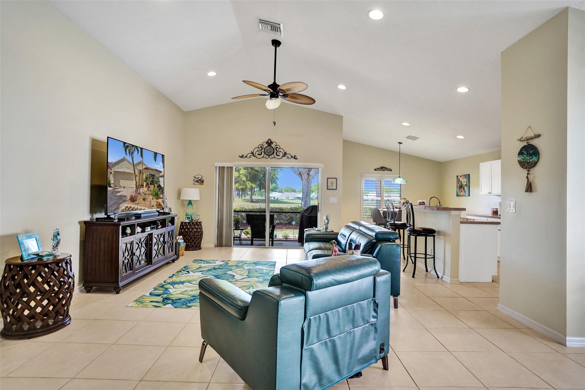 **NEW ROOF**INSTALLED DEC. 2025!! Welcome to your immaculate golf view home at Tuscany Bay (active 55+) w/ a large, screened-in lanai to enjoy your favorite beverage. NEW water heater (5/25), wood plank tile in bedrms, new faucets and shower heads, plantation shutters, new LG kitchen app, prof. painted interior & new ceiling fan in living room. The exterior has new river rocks & plants. A short walk from the rec area w/ tennis, pickleball, bocce ball, shuffle board & walking trail. The renovated clubhouse includes a gym, 2 card rooms, stage w/ seating & A/V equip, heated pool & spa, billiards room, plus clubs & activities. HOA includes lawn, cable/internet, security, repaints exterior every 7 yrs & spray roof solvent every 2-2.5 yrs.