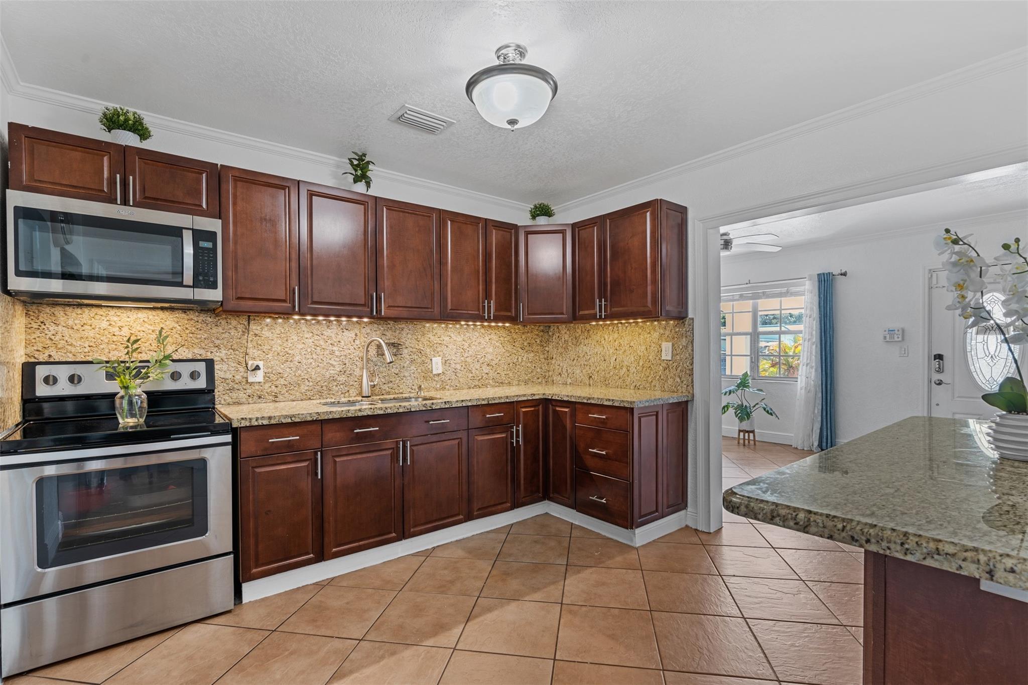 Beautifully updated 3/2 single family home lovingly owned for over 15 years with No HOA. Fully remodeled throughout with newer partial roof, A/C, and water heater (2022). Spacious 10,000+ sq ft lot offers a huge backyard, an open canvas to design your own oasis. This home greets you with impressive curb appeal, featuring a beautifully designed circular driveway and wrought-iron gated entrance that offers both elegance and added privacy. Home also includes a versatile mother-in-law suite featuring its own kitchenette and bathroom, with private exterior entrance, can also be accessed within with the removal of the wall covering. Warm, cozy, and move-in ready, to make this lovely home yours!