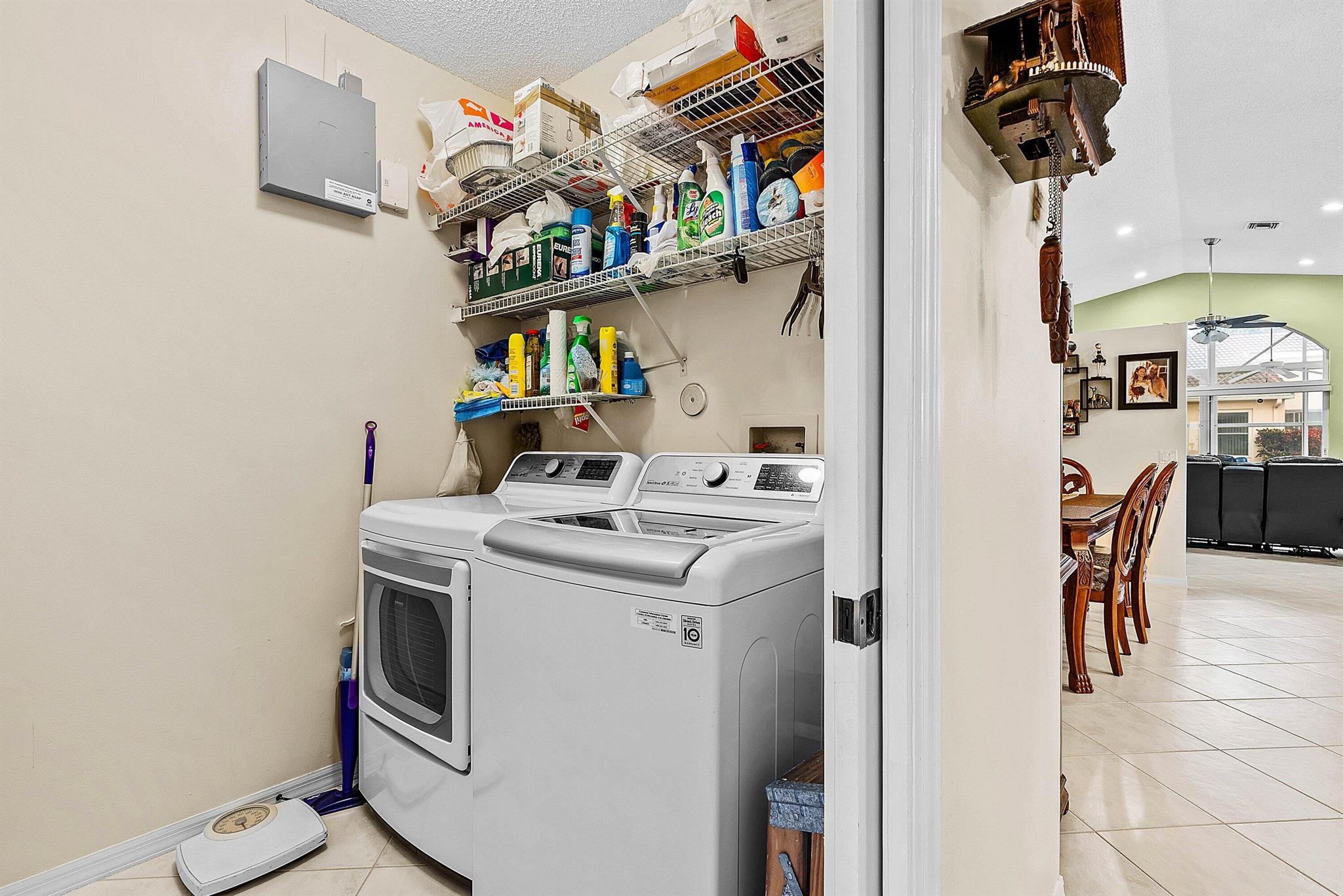 MUST SEE!! Renovated 3/2 with new roof and A/C (2023). Fabulous kitchen with center island, stainless steel appliances, lots of extra cabinet space and pull-out shelving in the pantry. The open floor plan is perfect for entertaining. New wood flooring in the bedrooms. This meticulously maintained home is part of an active, amenity-rich community with a 24-hour manned gate, heated and chilled saltwater pool, pickleball and tennis courts, infrared saunas, billiards, a library, card rooms, an art room with a kiln, shuffleboard, a putting green, bocce, an auditorium, a ballroom, and numerous social clubs