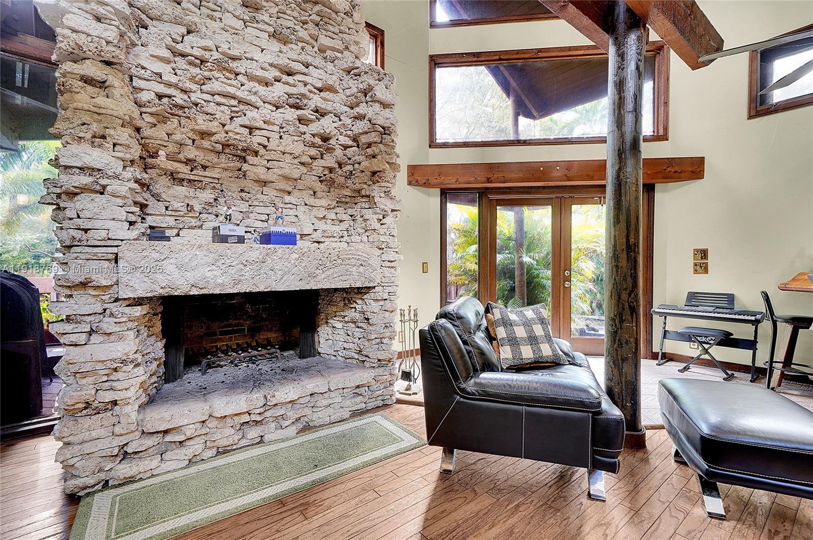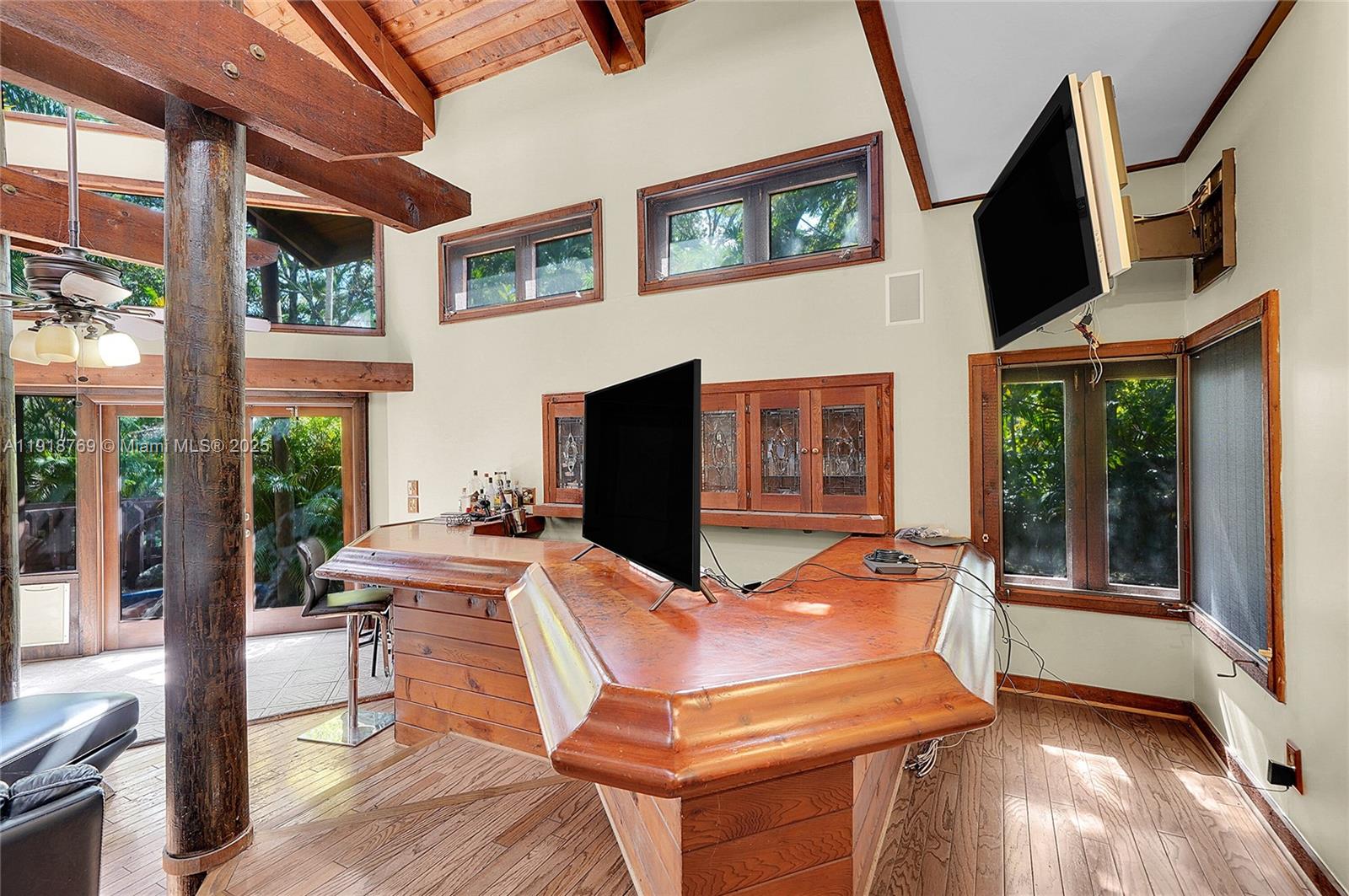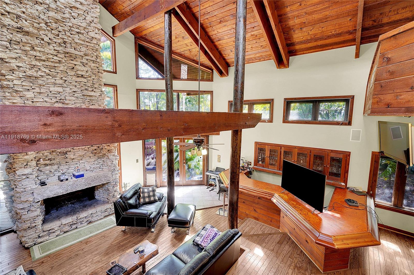 This home features natural cedar wood and striking architectural details, including coral rock fireplace and other natural coral accents that bring a timeless character to the interior. Plenty of natural light with multiple skylights, an atrium and a loft. It has a great floorplan for entertaining including a wet bar. Outside is a tropical oasis: free style pool and spa, massive deck and lush landscaping overlooking the tranquil canal. This is indoor-outdoor living at its best. Private, peaceful and ready for gatherings. Home needs TLC.