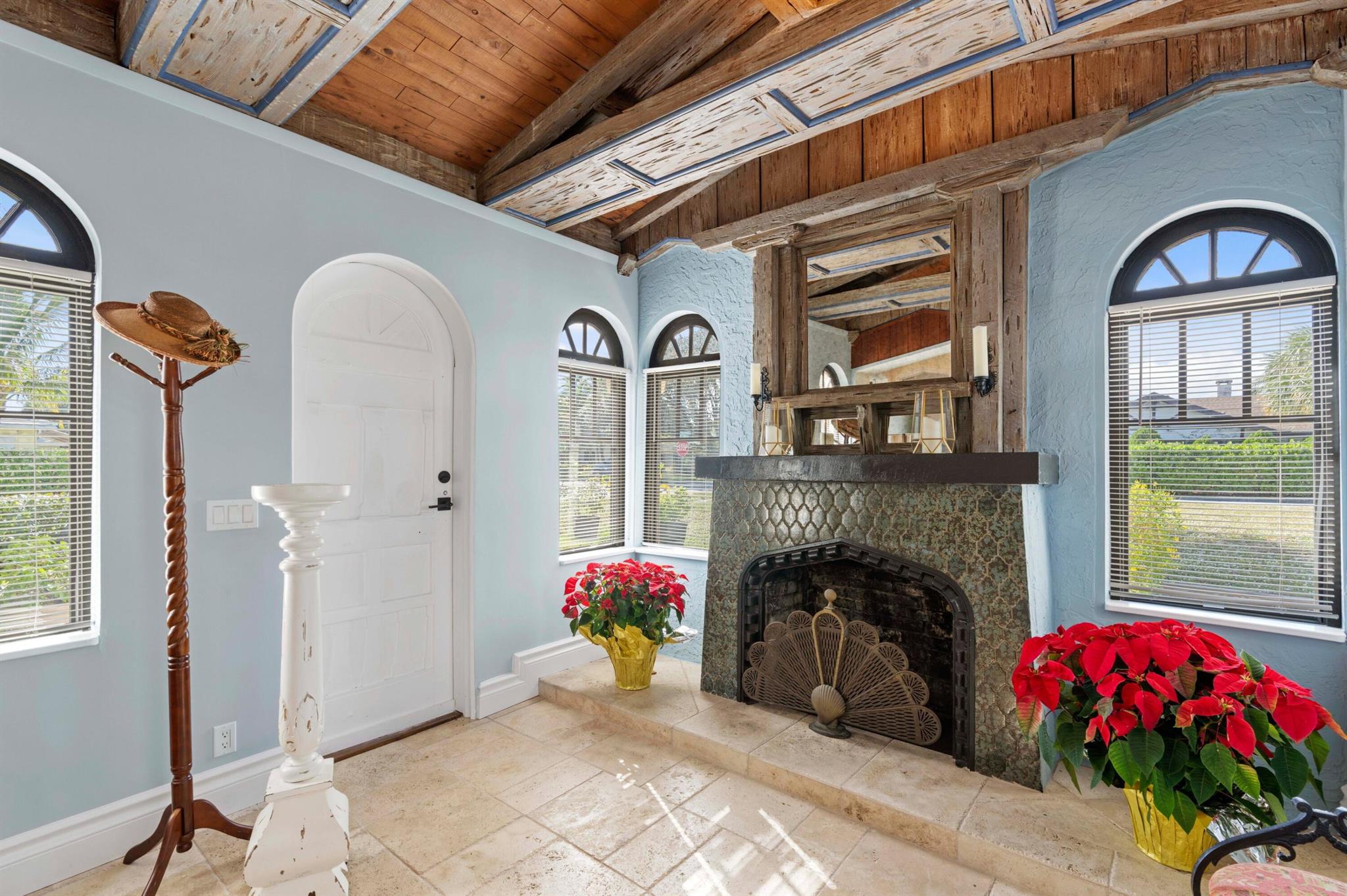 Historic soul meets modern luxury in this 100-year-old Spanish Mission home in College Park, just steps from the Intracoastal and 5 minutes to the beach. Restored with care -- new roof, A/C, electrical, and gas tankless water heater -- plus pecky cypress details, solid oak wood doors, and classic craftsmanship throughout. Includes a charming 1 bedroom guest suite with kitchenette and bunkbeds, plus a backyard cantina bar for entertaining. A rare piece of Lake Worth Beach history, perfectly preserved and beautifully updated. The main house is a 3 bedroom, 3 bath, with new master suite bath, and walk-in-closet. Original foyer entry, w/ rebuilt fireplace, and original mantle. New impact glass windows, volume ceiling's, recessed lighting, and custom woodwork moldings throughout the home.