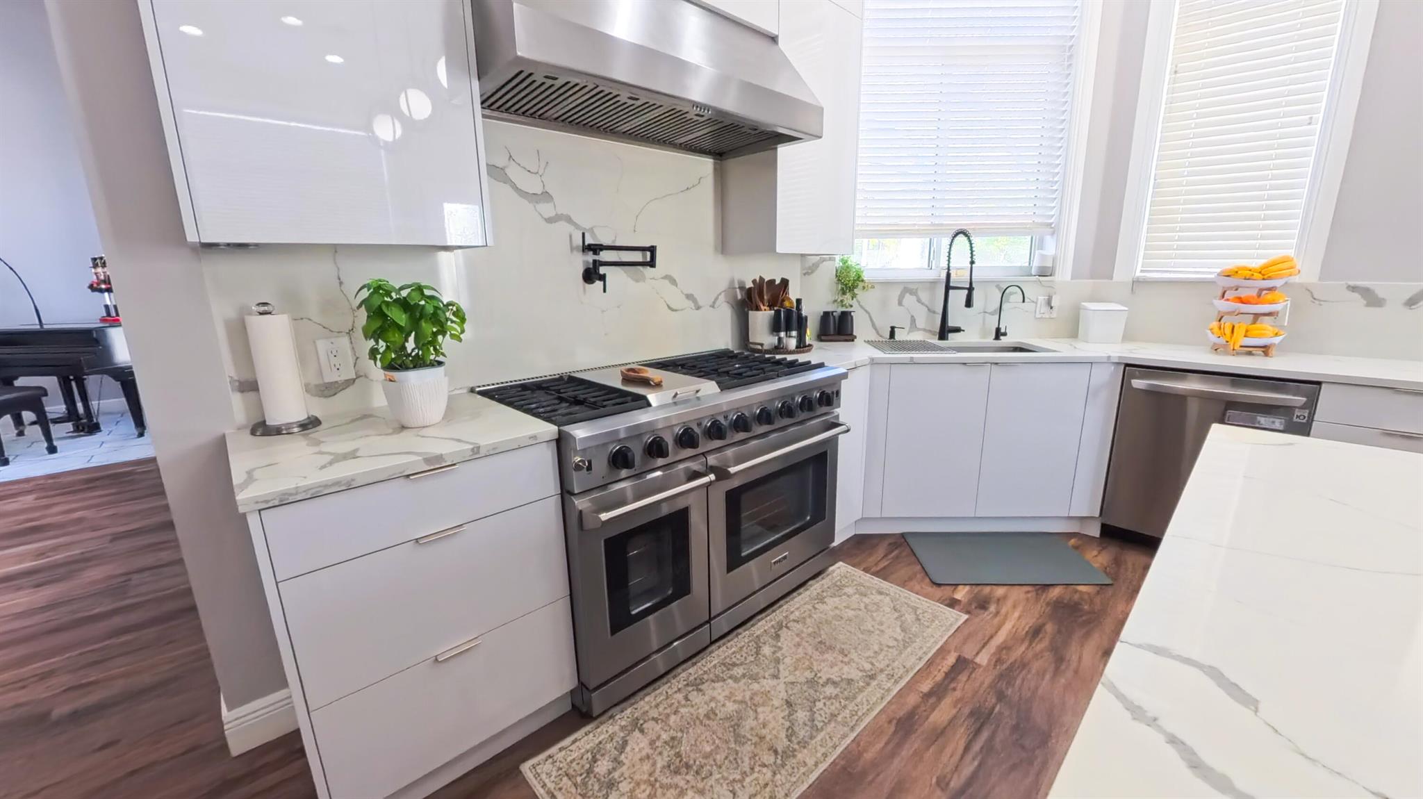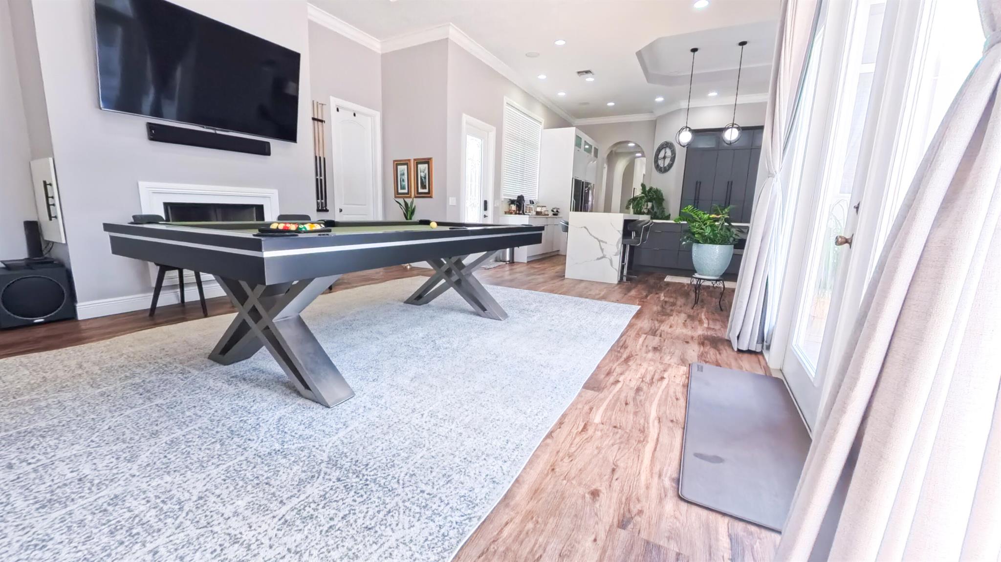• Интерьер:WetBar, Bidet, BuiltInFeatures, BreakfastArea, ClosetCabinetry, DualSinks, EatInKitchen, FamilyDiningRoom, FrenchDoorsAtriumDoors, Fireplace, GardenTubRomanTub, HighCeilings, KitchenDiningCombo, LivingDiningRoom, Pantry, PullDownAtticStairs, Skylights, SeparateShower, VaultedCeilings, Bar, WalkInClosets