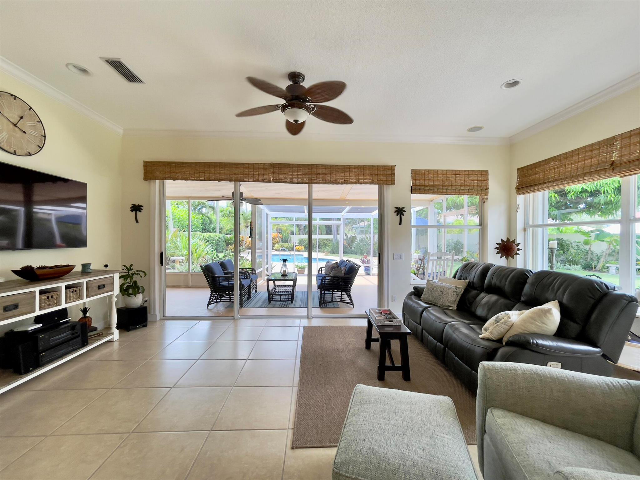 Beautiful pool home in the heart of Jupiter! This updated residence features a brand new 2025 roof and a stunning contemporary kitchen that opens to a spacious great room--perfect for gatherings & entertaining. Enjoy a huge, lushly landscaped backyard with a custom pool, relaxing deck, and large covered lanai overlooking tropical scenery. Accordion hurricane shutters offer peace of mind. The immaculate interior includes a bright open-concept layout and a bonus sitting room with sliders to the huge Lanai & outdoor oasis. All new plumbing. Located in The Hamptons--one of Jupiter's most sought-after neighborhoods--close to top-rated schools, spectacular beaches, Harbourside Shoppes, and all the dining and shopping along Indiantown Road. Beautiful home, prime location, and terrific value!