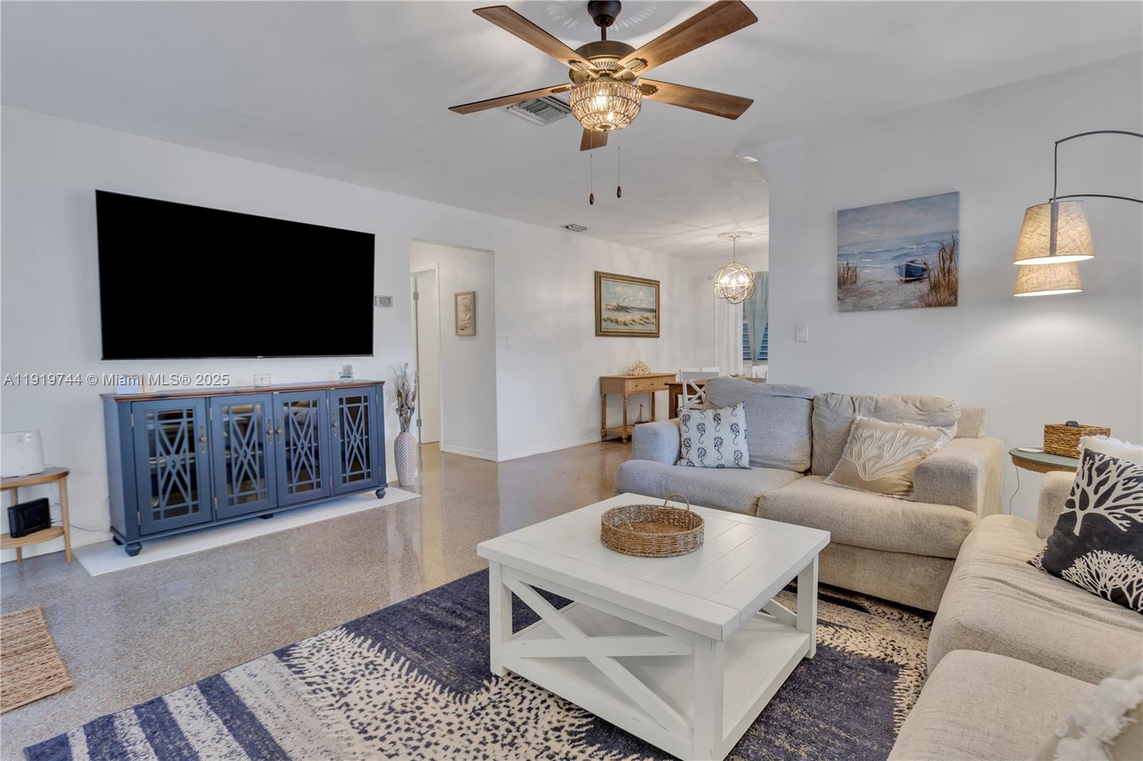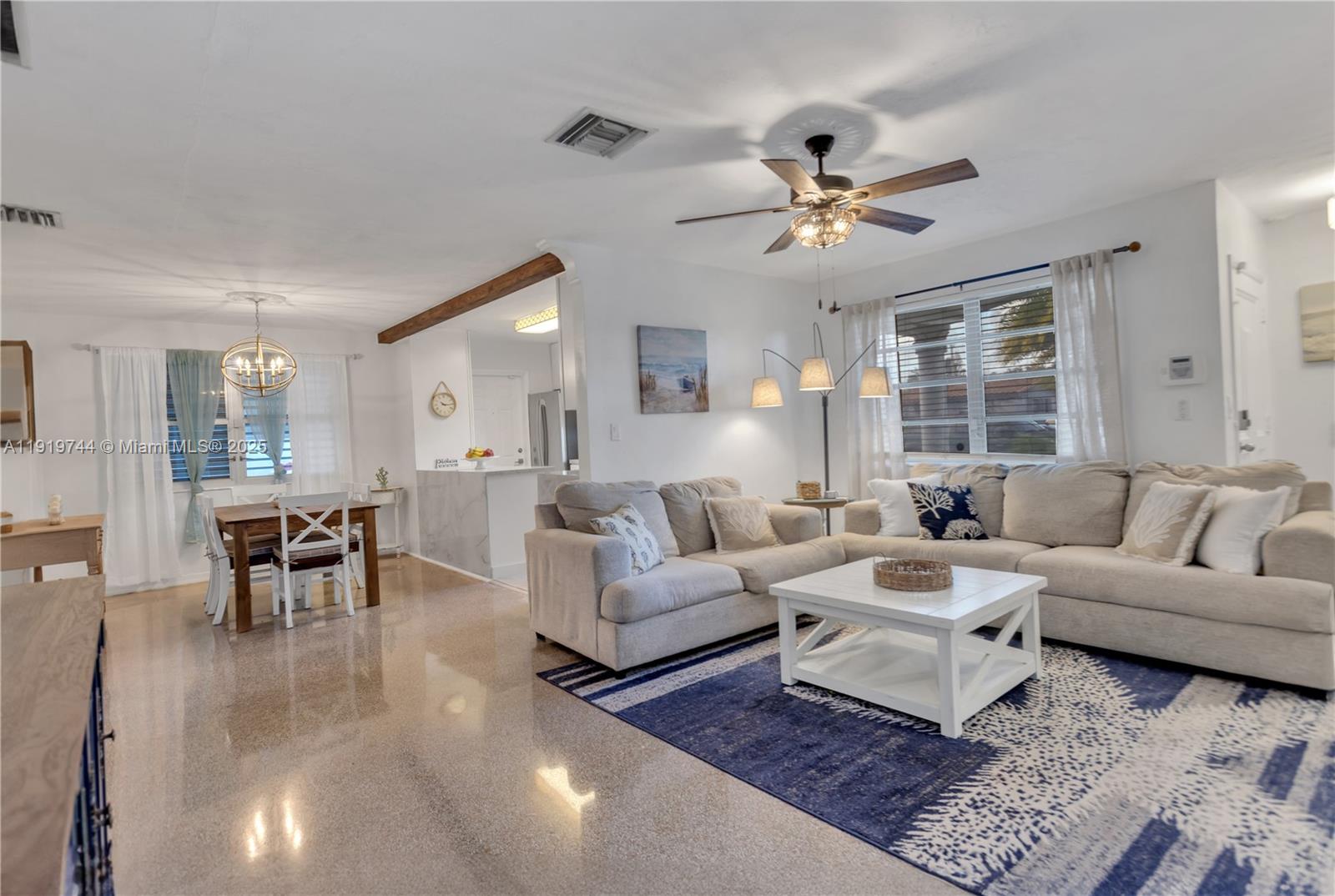 Welcome home to this beautifully maintained residence with no HOA in the heart of Pembroke Pines. Step inside to discover gloss terrazzo flooring and a bright living area featuring built-in shelving for added character and functionality. The updated kitchen offers solid-surface countertops, stainless steel appliances, and crisp modern finishes. Enjoy the convenience of direct entry from the carport, excellent for easy unloading. The home also features an updated bathroom and a large, fully fenced backyard providing privacy and plenty of space for outdoor living.