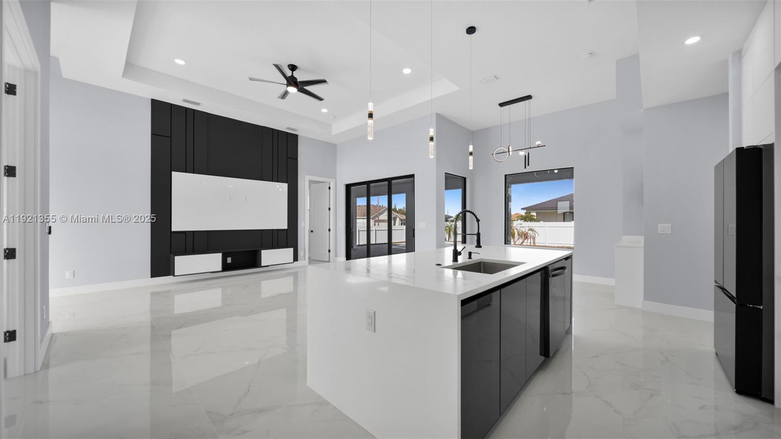 “Discover a luxurious modern retreat—your Florida dream home brought to life. This brand-new residence sits on an oversized corner lot with city water and sewer, showcasing clean contemporary architecture, 4 spacious bedrooms, 3 elegant baths, and a desirable 3-car garage. Inside, enjoy quartz countertops in the kitchen and bathrooms, soft-close cabinetry, stainless steel appliances, upgraded lighting, fans, and fixtures, along with tray ceilings in the Great Room, tile flooring throughout, and generous walk-in closets. The primary suite features dual sinks, a walk-around shower, and a freestanding tub for a spa-like experience. Step outside to a seamless indoor-outdoor lifestyle with a sparkling pool, an expansive paver patio, a stylish outdoor kitchen, and a large paver driveway offering plenty of parking. And as if that weren’t enough, this home is located outside of the flood zone—meaning flood insurance is not required. A perfect combination of elegance, contemporary design and comfort all in one place at an exceptional price."