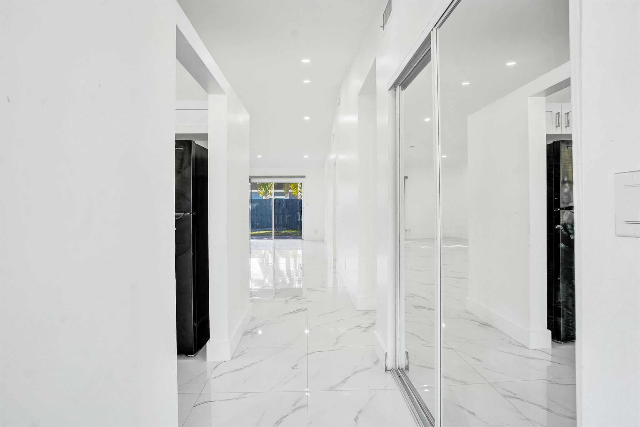 Beautifully renovated and move-in ready, this 2BR/2BA Deerfield Beach home features porcelain tile flooring, an updated kitchen with solid wood shaker cabinets and quartz countertops, and a bright open living area perfect for relaxation or entertaining. Both bedrooms offer generous space and walk-in closets, with the primary including a private en-suite bath. Additional highlights include an indoor laundry room with full-size washer and dryer, a fully fenced backyard with covered patio and storage room, a large driveway, and a charming front porch. Conveniently located near shops, dining, parks, major highways, and minutes from the beach, this home offers modern comfort in a prime location.