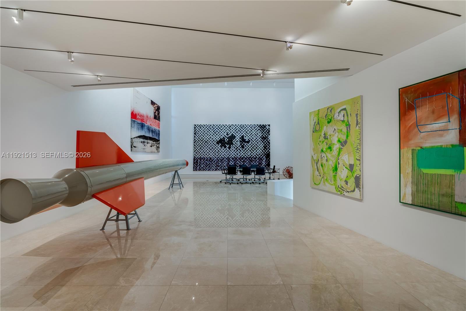 A once-in-a-generation opportunity on Key Biscayne’s only private waterfront road, this extraordinary estate spans 28,800 square feet with 120 feet of pristine water frontage, a secluded sandy beach, and a private dock framing panoramic views of the Miami skyline. Offering 10,926 square feet of living space, the property delivers exceptional privacy alongside a striking contemporary design recognized as part of the esteemed Rosa de la Cruz Collection. Soaring 20-foot ceilings, sculptural architectural lines, and expansive, light-filled interiors create a dramatic backdrop for art, entertaining, or a visionary reimagining tailored to your lifestyle. A truly rare canvas in an irreplaceable location, with architectural plans available to transform it into the most exceptional residence in Key Biscayne.