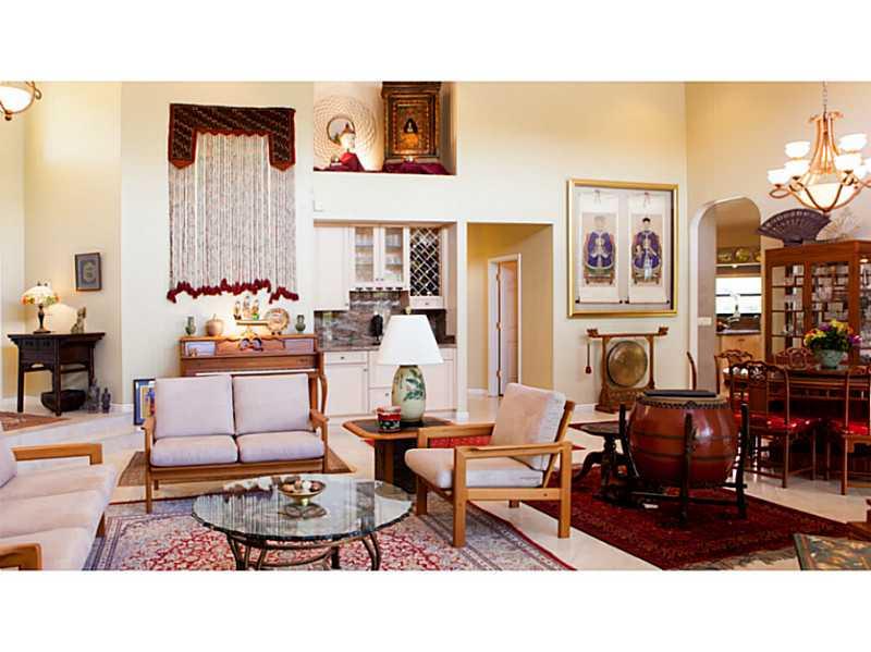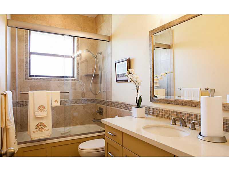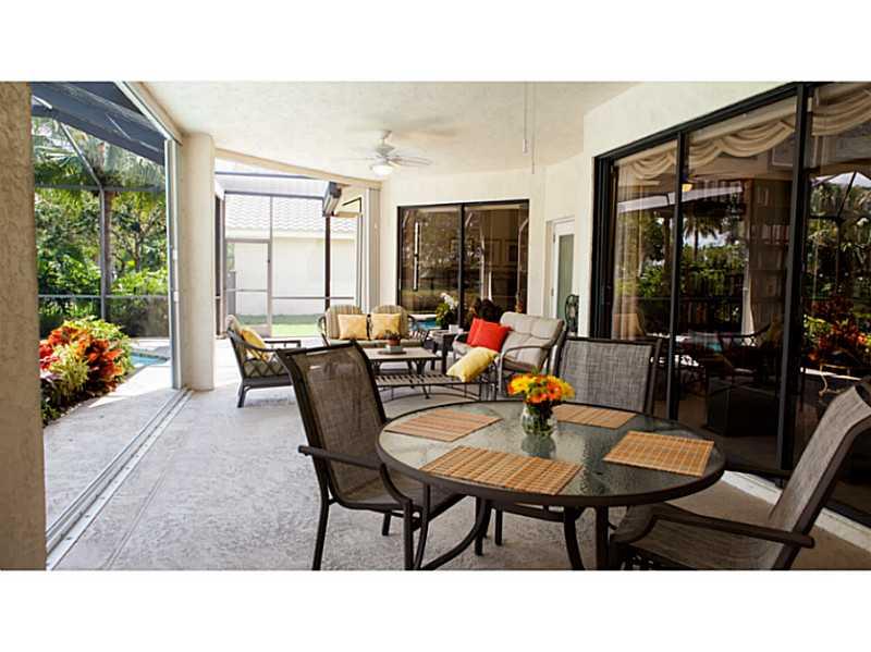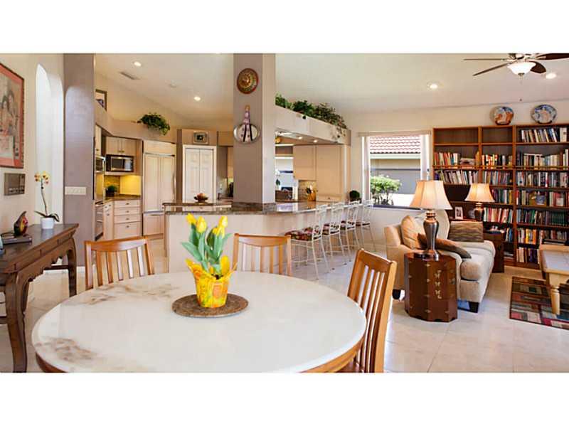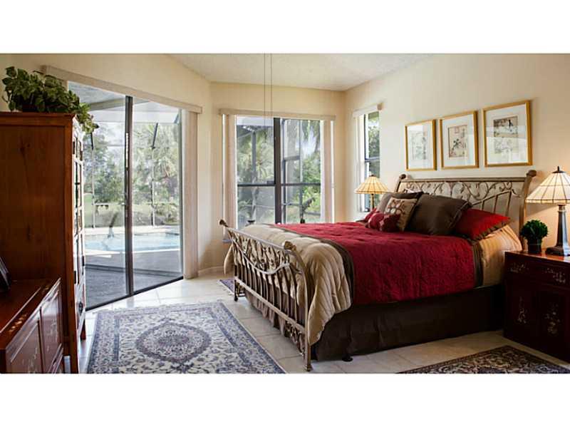Exquisitely maintained home within the desirable community of Palm Island. This 5/4 single-story residence boasts a flow through split floor plan with open spaces & natural lights. Features include porcelain tiles throughout, renovated bathrooms, remodele d kitchen w/ granite counter & SS appliances, large breakfast area, family room, high ceilings, newer roof & AC's impact windws & extended accordion shutters, plus beautiful pool and screened-in extensively covered patio area overlooking the serene lake.