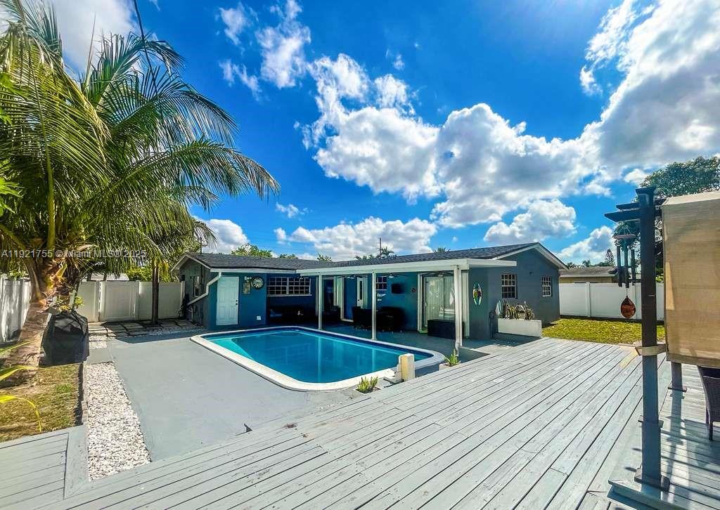 Impeccably upgraded 3BR/2BA entertainment home with BRAND NEW ROOF (Feb 2025), fully renovated POOL (2023—new plumbing, electric & resurfacing), & circular driveway (refinished 2022), offered tastefully FURNISHED. Enclosed by 6-ft PVC privacy fence, Backyard Oasis features 300-ft covered outdoor living/dining area; sealed, 2-tier wood deck (reinforced for future jacuzzi) with shaded Pergola, & BBQ patio. Pool access from living room, guest bath & primary. Open living/dining, bright kitchen, stainless appliances, impact windows/doors, tankless water heater, central AC (2019), indoor laundry. Washer/dryer, outdoor shed convey. Roof & pool warranties are transferable.