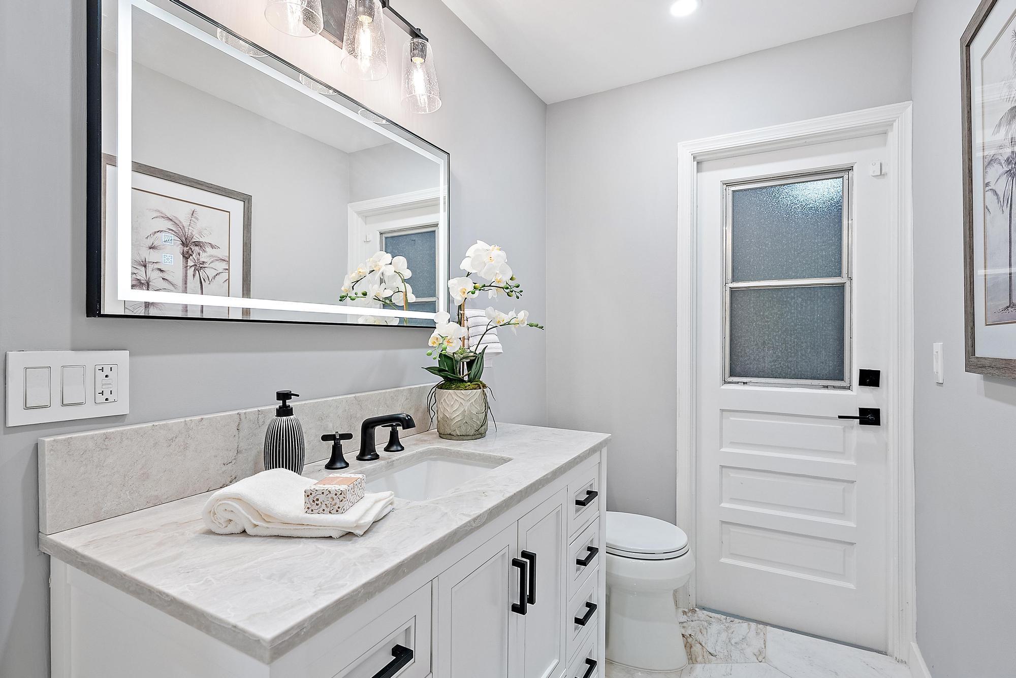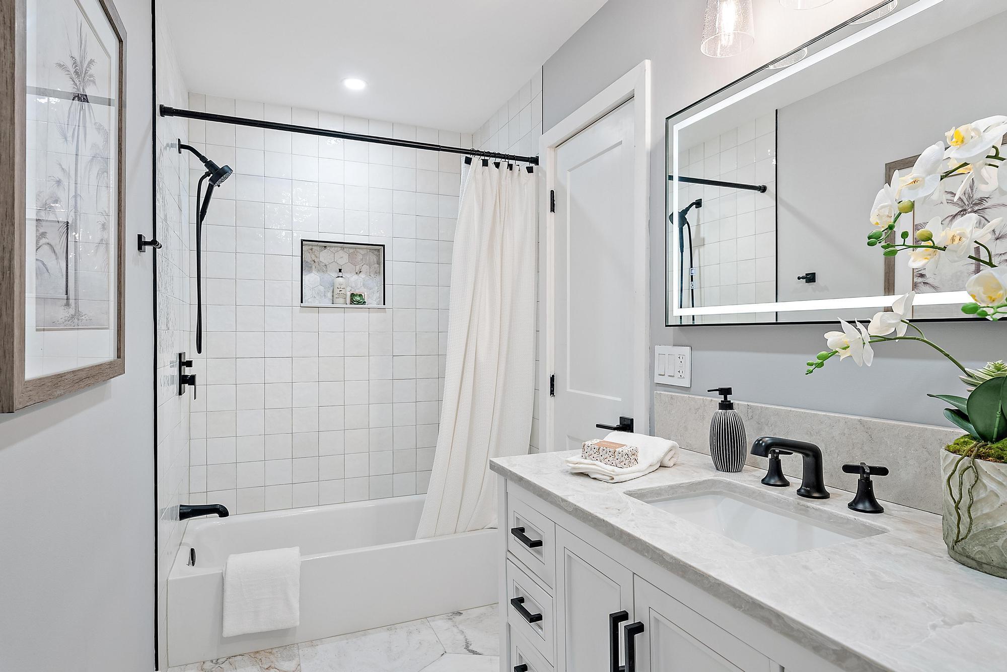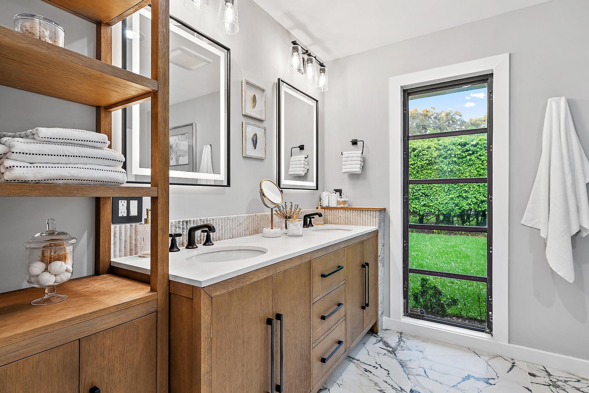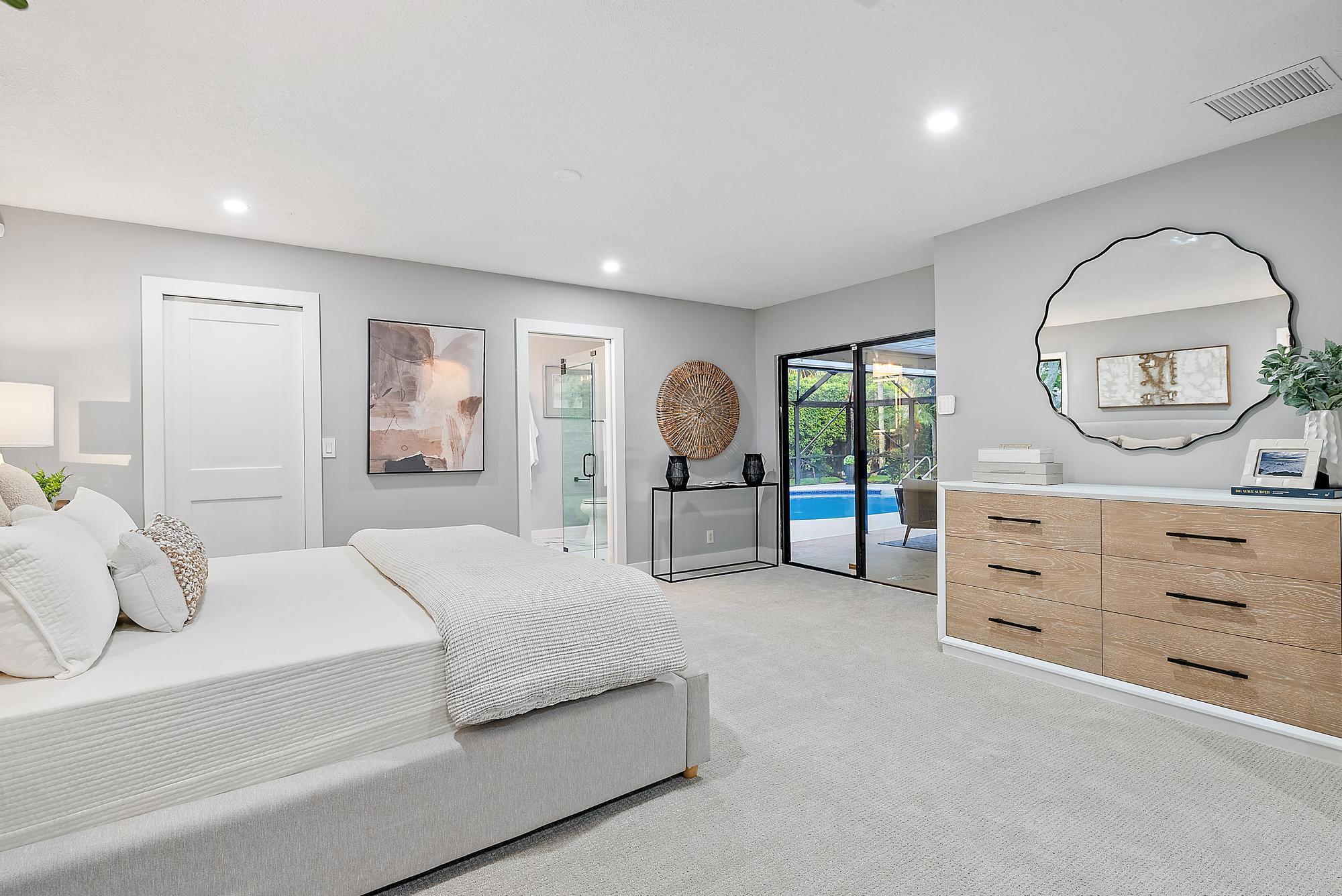 SHOWINGS BEGIN ON DECEMBER 1ST. Own this stunning, fully renovated home in time for the 2025/2026 season. Located in the highly sought-after PGA National, this spacious 3-bedroom, 2-bathroom residence sits on a rarely available .30-acre lot and offers over 2,100 sq. ft. of beautifully upgraded living space. Complete with brand-new 2025 impact windows, this home blends modern luxury with true South Florida indoor/outdoor living.Step inside to vaulted ceilings, exposed beams, and new 24'' x 48'' Andover White porcelain tile flooring with a matte finish throughout the main living areas. Multiple sliders open fully to a large screened lanai, creating a seamless flow between the indoor and outdoor spaces.