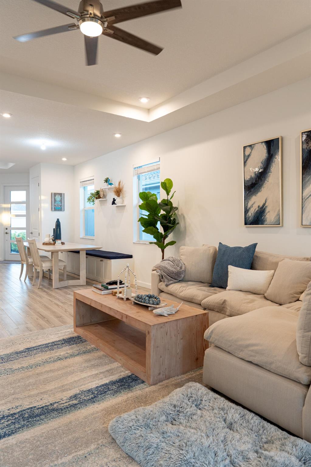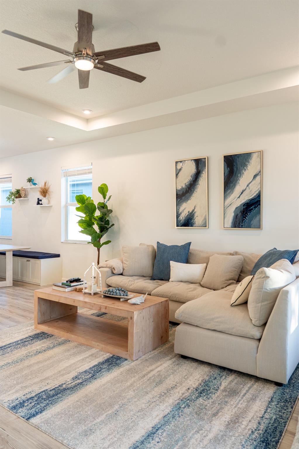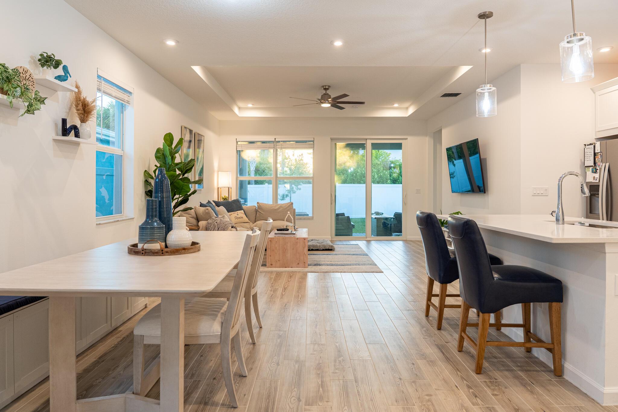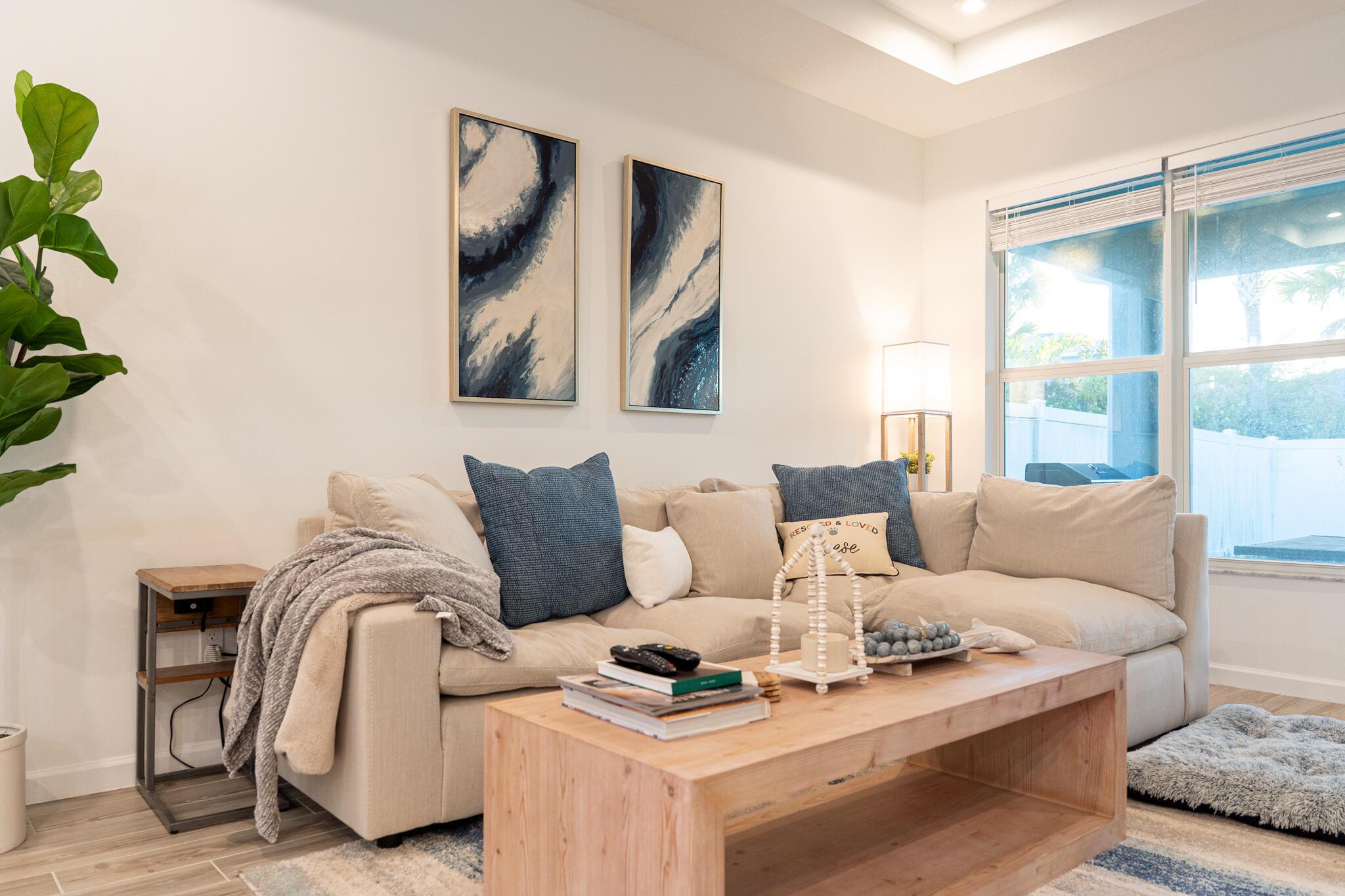 This stunning 2-bedroom, 2-bathroom home with bonus room offers the perfect blend of comfort and luxury in the highly desirable Emery neighborhood of Tradition. Built in November 2022, this Aspen model by Mattamy Homes features ALL available luxury upgrades. Step inside to discover vaulted ceilings throughout the living areas and primary bedroom. The gourmet kitchen showcases elegant white shaker cabinets with quartz countertops, stainless steel appliances including a gas stovetop, built-in oven, microwave, dishwasher, and refrigerator. You'll love the walk-in pantry and convenient storage options throughout.