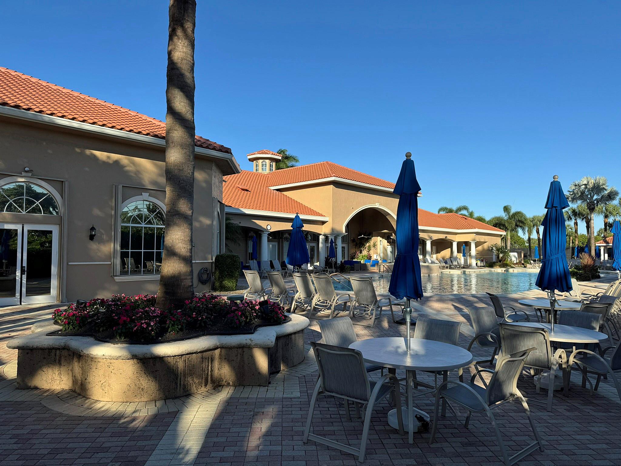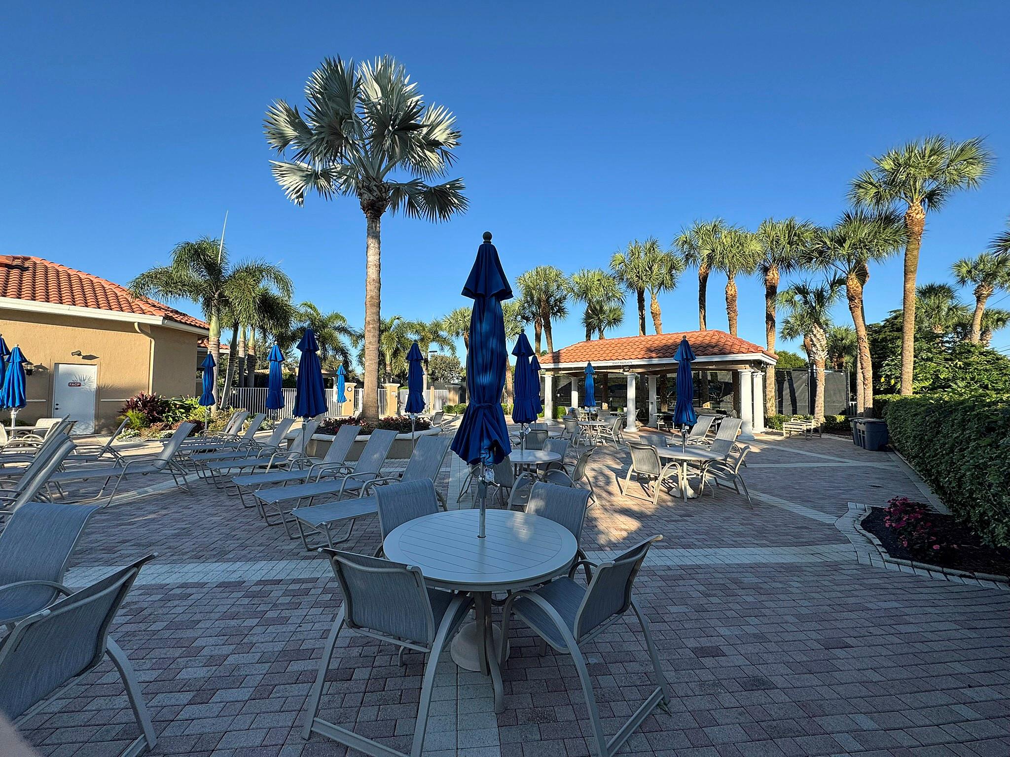 This Beautiful Home "Napoli Model" In The Popular Villa Borghese Gated 55+ Community Is Perfect For A Relaxed Lifestyle. This Nicely Landscaped Home Features Vaulted Volume Ceilings, Double-Doored Tiled Entry Foyer, Large Tiled Living Room, Formal Tiled Dining Room, Double-Doored Private Den/Bedroom with Wood Laminate Flooring, Large Tiled Eat-In Kitchen, Split Bedrooms with Wood Laminate Flooring, Primary Bedroom with 2 Walk-In Closets, Large Bathroom with Roman Tub and Shower, 2nd Bedroom with Double Closets, Laundry Room, 2 Car Garage with a Mop Sink, and a 26' Wide Covered Screened-In Porch too. This home has been very well kept and had its Air Conditioning Replaced in 7/2022 with a 10 year parts warranty. This is a "FIRPTA" Sale. Quick Closing preferred. Furniture is Negotiable.