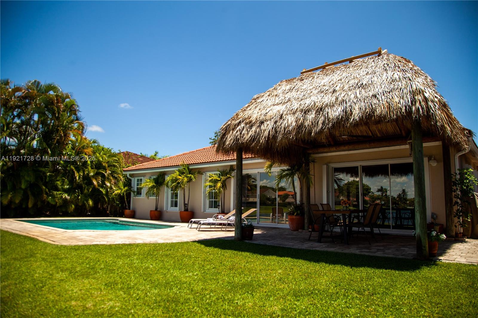 Experience true Florida lakefront living with year-round sunsets! Lakefront pool home offering a calm, open layout and unobstructed water views from the main living areas and primary suite. Bright interiors, natural tones, and wood accents create a warm atmosphere. The backyard features a covered tiki area with fan, perfect for gatherings, plus a portable grill and a Cuisinart griddle on wheels. House features 3 bedrooms + office/flex room, 2 bathrooms, impact protection (accordion and/or impact windows), salt-system pool, sprinkler with well, smart alarm, remote lock, auto-on lights, camera system. Pets OK. Home is sold FULLY FURNISHED with a warm, natural aesthetic and custom wood furniture, including artisan pieces and quality décor. Some art pieces are not included, but all electronics and fixtures are, making this property truly move-in ready and ideal for relocations. HOA is paid quarterly and averages $94/month. It covers lake maintenance and community aesthetics management. Prime location east of Old Cutler Road, close to top schools, parks, and Black Point Marina. Cutler Bay is a booming city in Miami-Dade, with plenty of attractions. The home is close to the Turnpike, taking just a 35-minute drive—outside rush hour—to reach Miami International Airport. Built in 1996 under the significantly improved 1994 Building Code. The house exterior / windows have a new fresh paint scheme that may not be represented in some photos. Great opportunity to own this unique home!