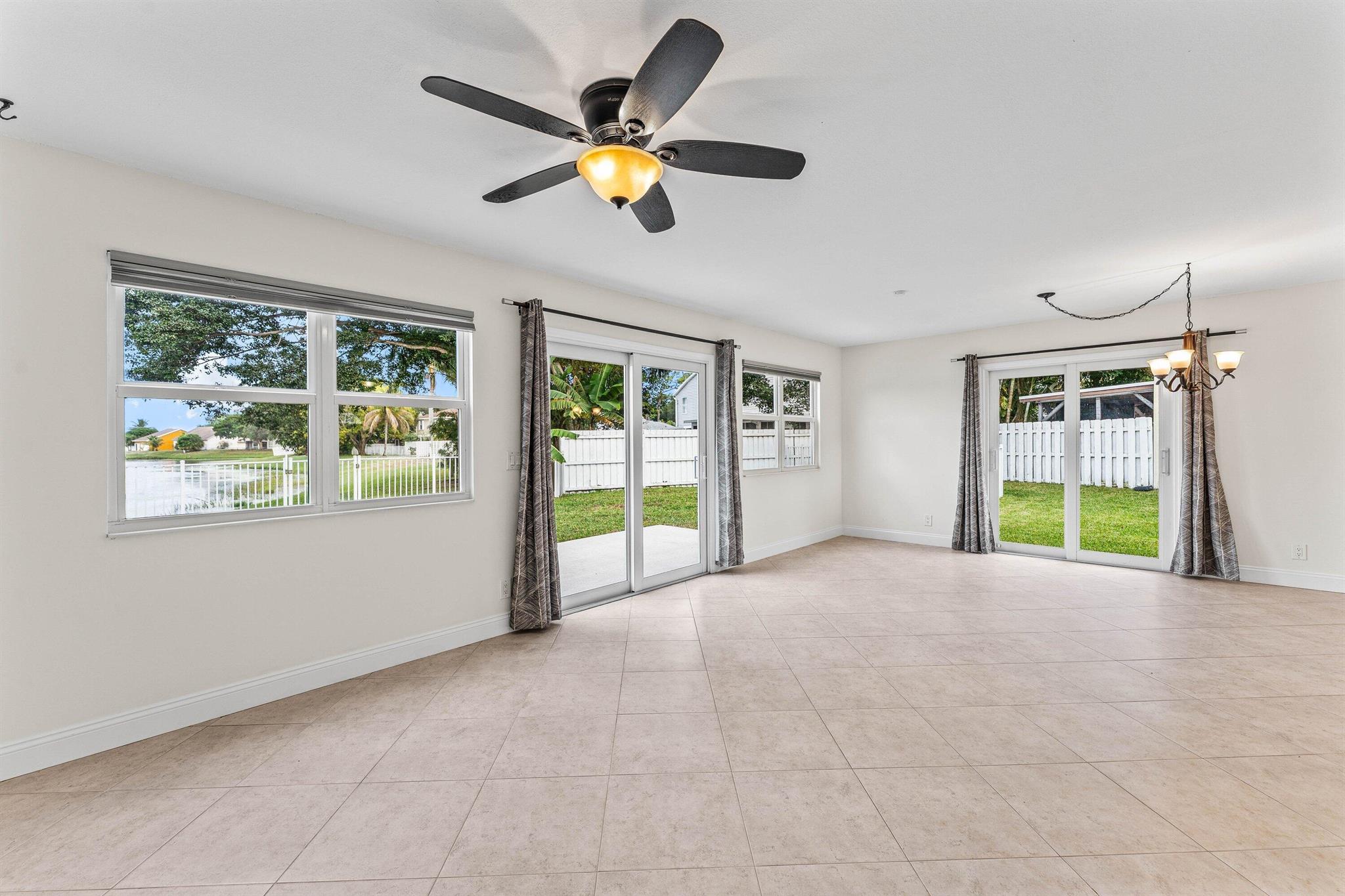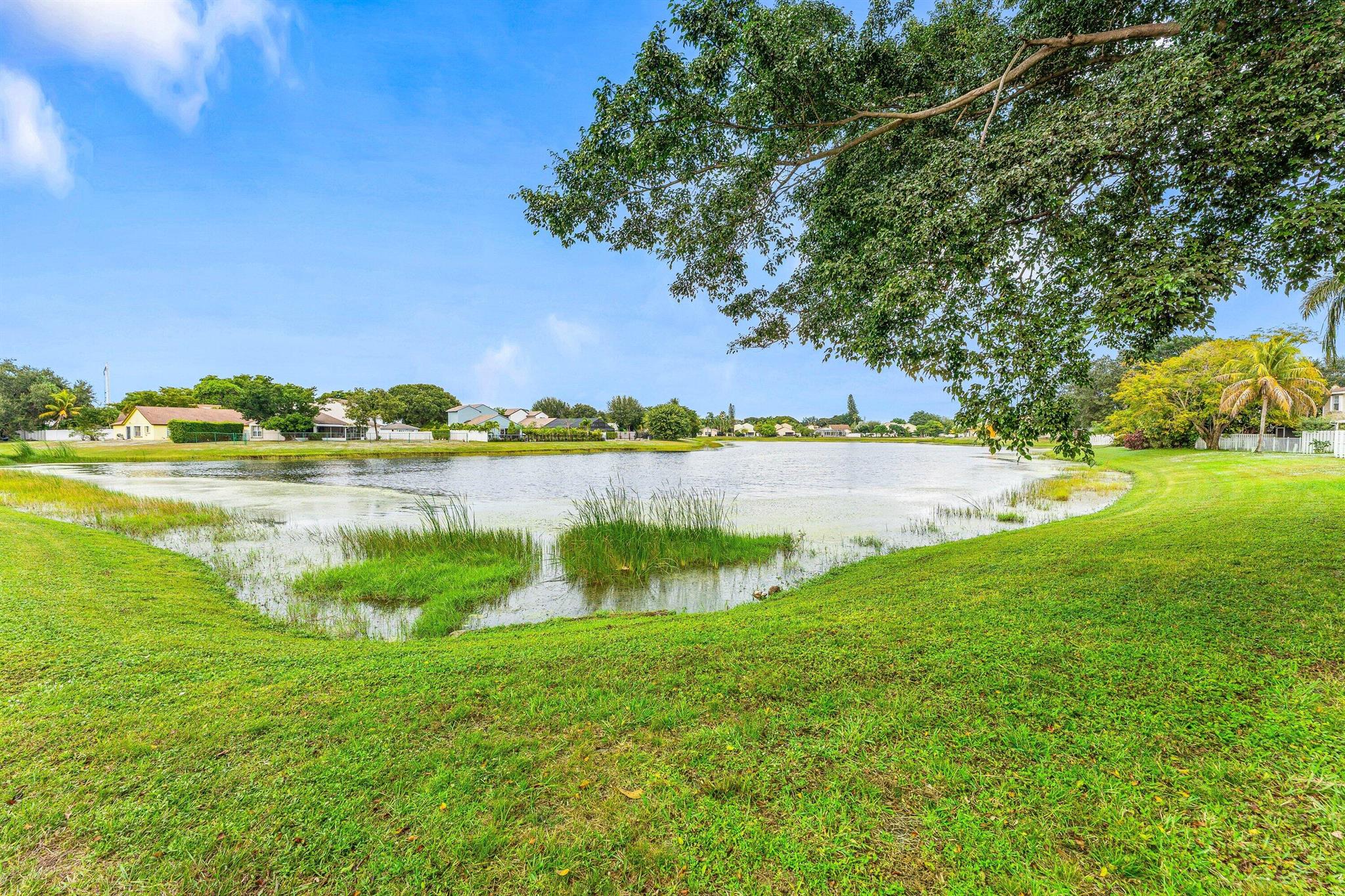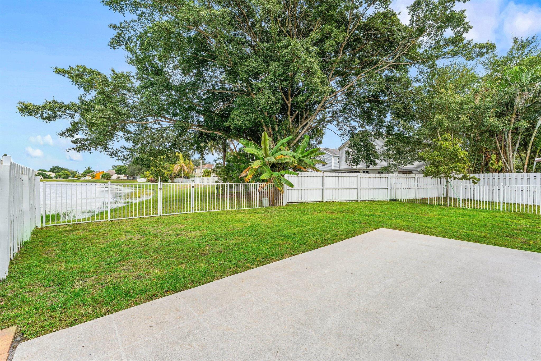 Welcome home to this charming three-bedroom, two-and-a-half-bath lakefront home with a one-car garage, located in the desirable community of Palm Club West. The property features a very spacious yard with room for a pool, brand-new roof (2024) and full impact windows and sliders (2021), offering peace of mind and long-term value. The location of this home is exceptional, offering a quiet and friendly neighborhood setting on a cul-de-sac with an elementary school only a ten-minute walk away. From the moment you enter, you'll notice the refined touches throughout, including diagonally laid tile flooring in the main living areas, updated trim, and fresh interior paint. The bright and airy kitchen features decorative solid-wood shaker cabinetry with elegant crown molding and soft-close