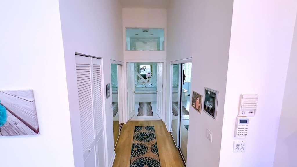 Panoramic golf and water views! Elegant home located on the 8th Fairway featuring a newer roof, newer AC units, freshly polished marble floors, and newly installed wood-plank flooring in bedrooms and office. Light and bright split floor plan with soaring ceilings and abundant recessed lighting. Offers four en-suite bedrooms plus office, four and a half baths including cabana bath, spacious master suite with sitting area and large glass sliders overlooking the pool, patio, and golf course. Master bath includes water closet, bidet, jacuzzi tub, walk-in shower, and ample closet. Gourmet kitchen with built-ins, wine closet. Beautiful backyard with covered patio, summer kitchen, and pool with jacuzzi overlooking the fairway. 3-car garage with built-ins. Located in a gated golf course community
