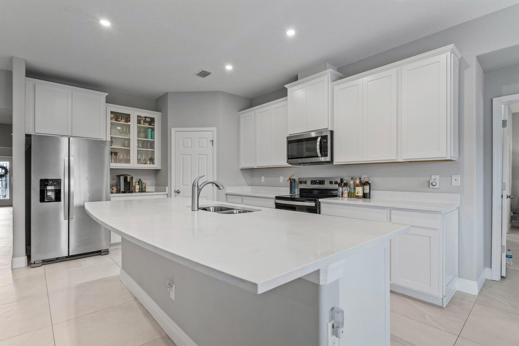 Exquisite 2024-built lakefront masterpiece in Vero Beach's Grand Hammock community! This stunning 4BR/3.5BA multigenerational home features a fully independent guest suite with private entrance, second kitchentte, living area & luxurious en-suite--ideal for in-laws or visitors. Enjoy new 30x30 limestone floors, a gourmet chef's kitchen with top-tier appliances, spa-like baths, impact glass & smart-home technology throughout. Relax in your private oasis: heated/chilled saltwater pool, expansive covered lanai & breathtaking lake views. Ultimate luxury & privacy await