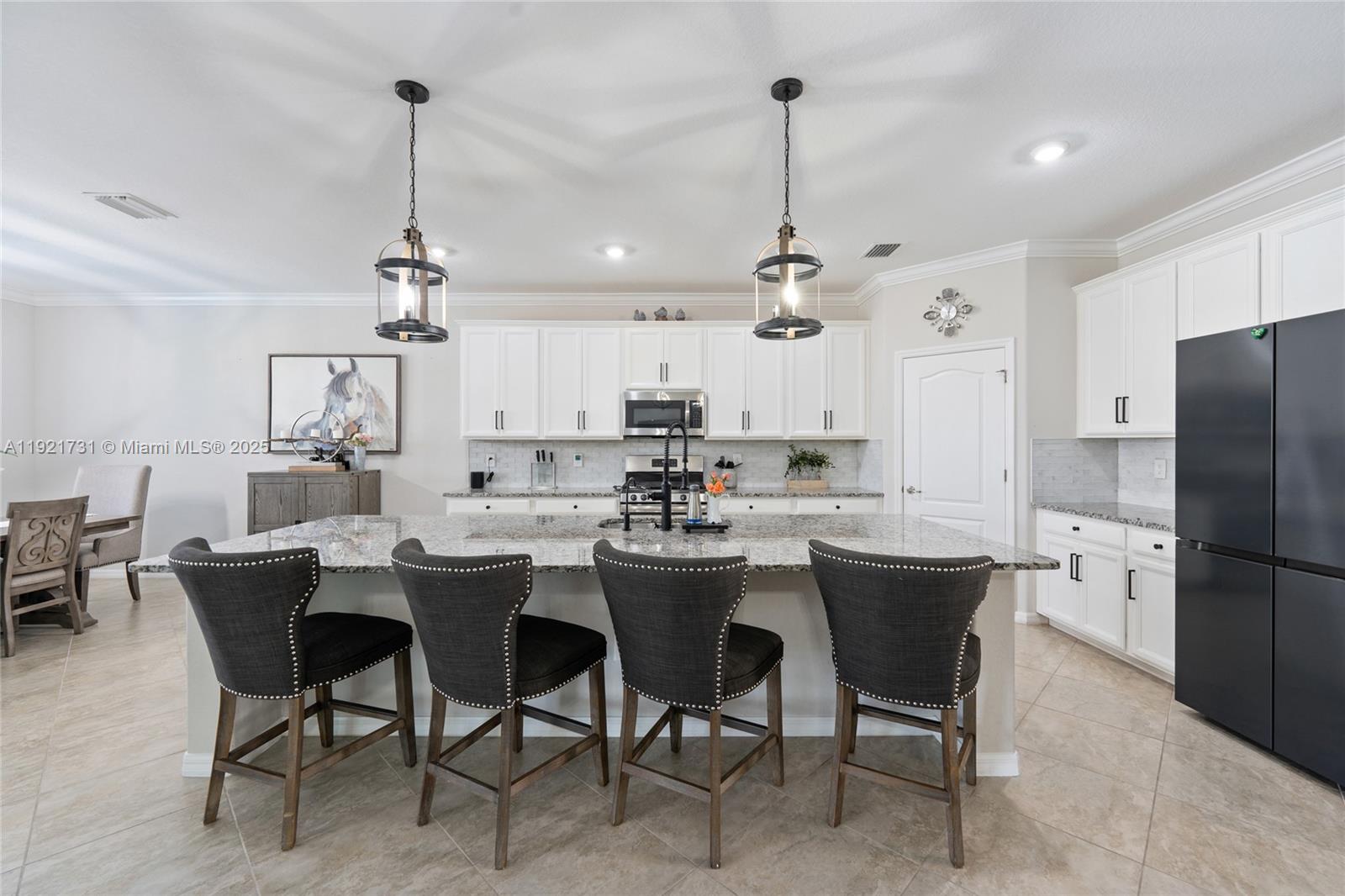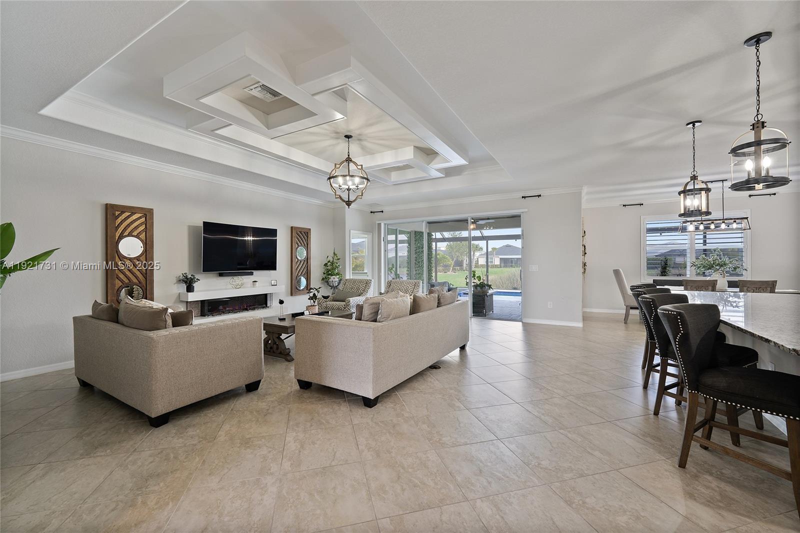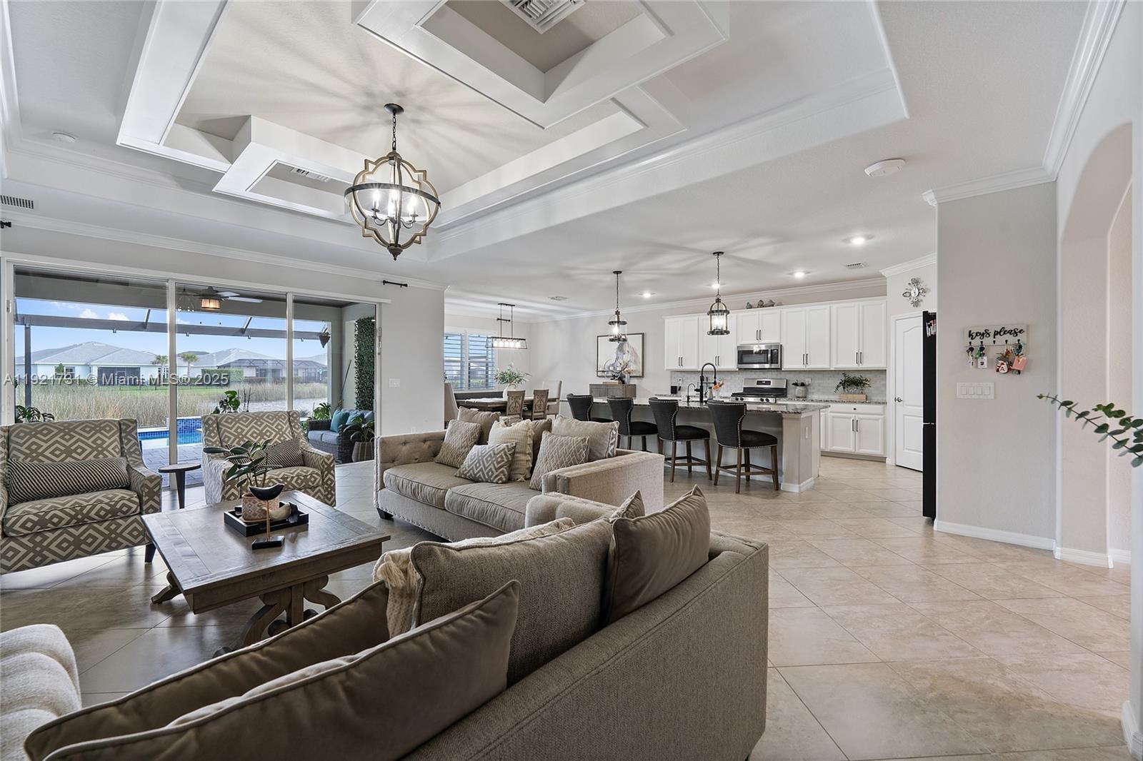 Located in one of the lowest-fee HOAs in the area, this beautiful Palmetto model home in Babcock Ranch offers style, comfort, and exceptional upgrades throughout. This 3-bedroom plus den residence features an open-concept layout and a 3-car garage, perfect for both everyday living and entertaining. The modern kitchen includes a custom backsplash, commercial-grade range hood (2025), and high-end appliances. Enjoy the Florida lifestyle with a custom heated pool and spa, screened lanai, and plenty of outdoor space for relaxing or hosting. The home has been meticulously maintained with freshly sealed grout (2025) and a newly painted exterior (2025). Interior highlights include diagonal tile flooring, upgraded light fixtures, plantation shutters in the dining room, custom window treatments in the living room, and a remote-control roll-down shade in the primary suite. Decorative wood ceiling accents add elegant character. The laundry room offers an upgraded washer and dryer set with white cabinetry for additional storage. Practical upgrades include a mini-split A/C in the garage (2025), full-home gutters (2025), epoxy garage flooring (2025), whole-house water filtration, generator outlet, two electric car charging outlets, and security cameras (2025). Located in the vibrant Babcock Ranch community, residents enjoy access to two resort-style pools, clubhouses, scenic walking trails, parks, playgrounds, and multiple sports courts, plus year-round events, restaurants, and shops.