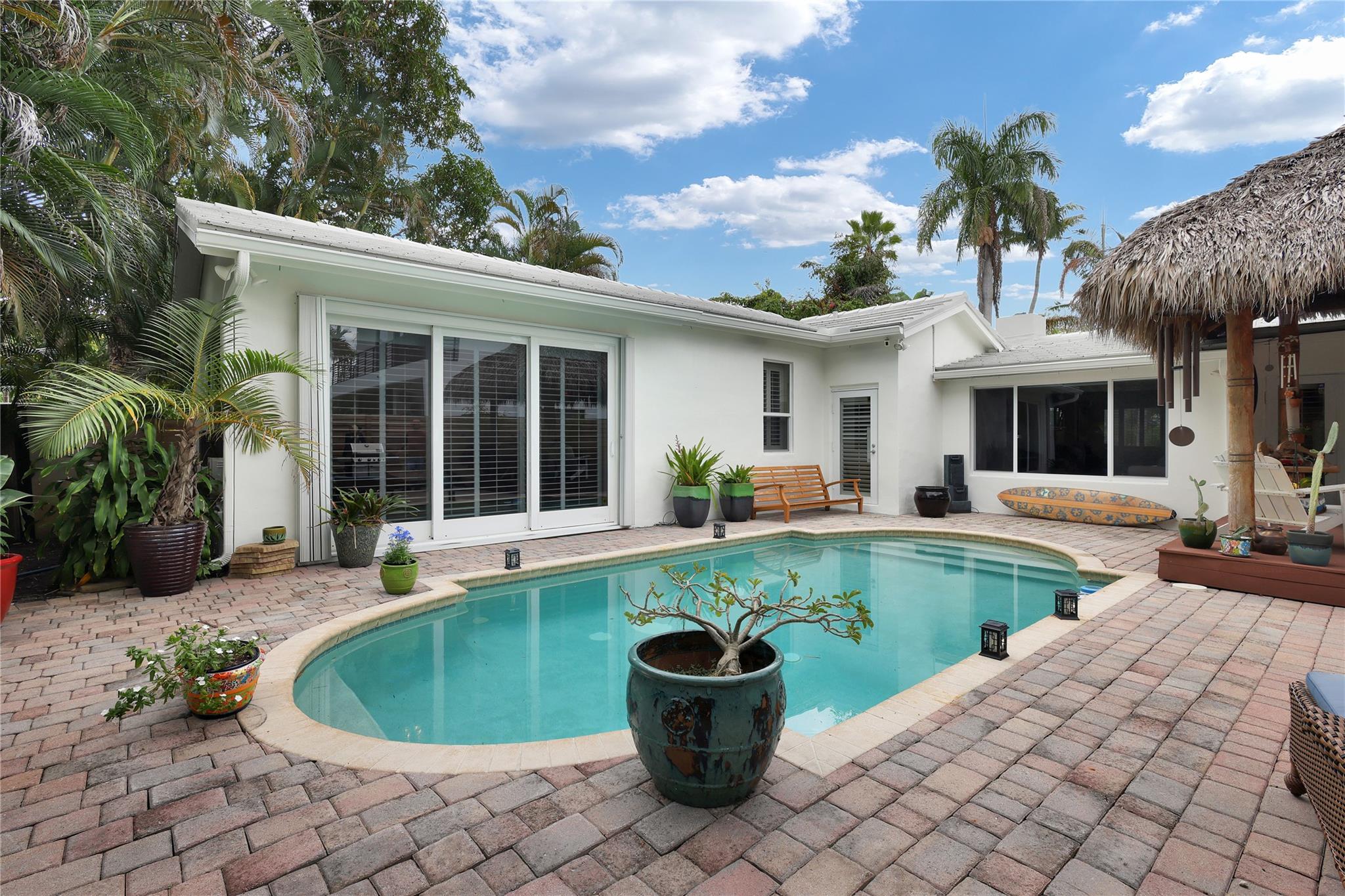 This Wonderful, renovated Victoria Park mid-century 3/2 home features an expanded poolside primary bedroom with a spacious spa style bathroom and two walk in closets. There is a large eat in modern chefs’ kitchen with stainless appliances and walls of cabinets and storage space. Additional highlights include high ceilings, fireplace, open floor plan, wood floors, tile roof, impact windows and doors, covered carport, and an amazing resort like back yard with full size pool and covered tiki hut for those fun days of entertainment. Located on a great terrace close to the beaches, las olas, airport, parks, schools, restaurants, shopping, brightline, airport and everywhere you want to be… come see !!