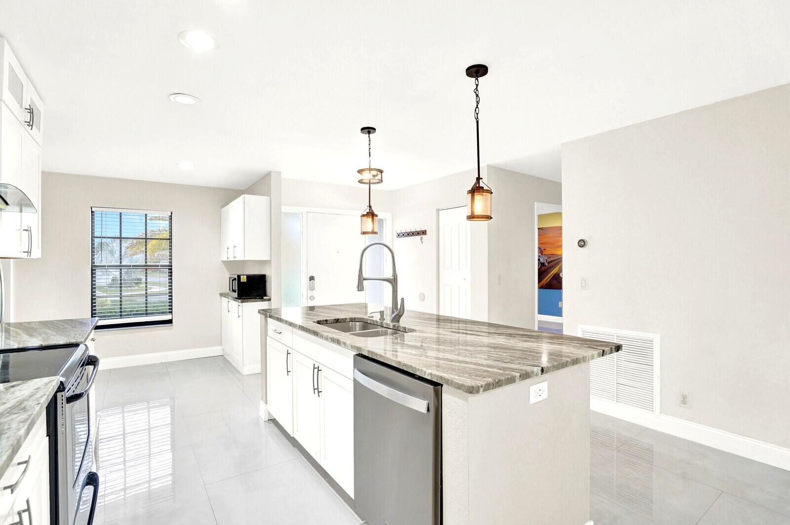Corner lot, 4 Bed, 3 Bath Single Family CBS construction home with nearly 2,000 sq ft of living space. Located within all age community Lakes of Sherbrooke.The horseshoe driveway along with one car garage leaves you with plenty of parking. When stepping in the home you are greeted with pristine tile floors throughout. Open concept kitchen with an oversized pristine stone island is great for hosting family get togethers. SS appliances compliment the modern kitchen layout.To the side of the kitchen you will find a flex room on top of the 4 bedrooms. Washer & Dryer are located in the spacious garage along with storage attic access.