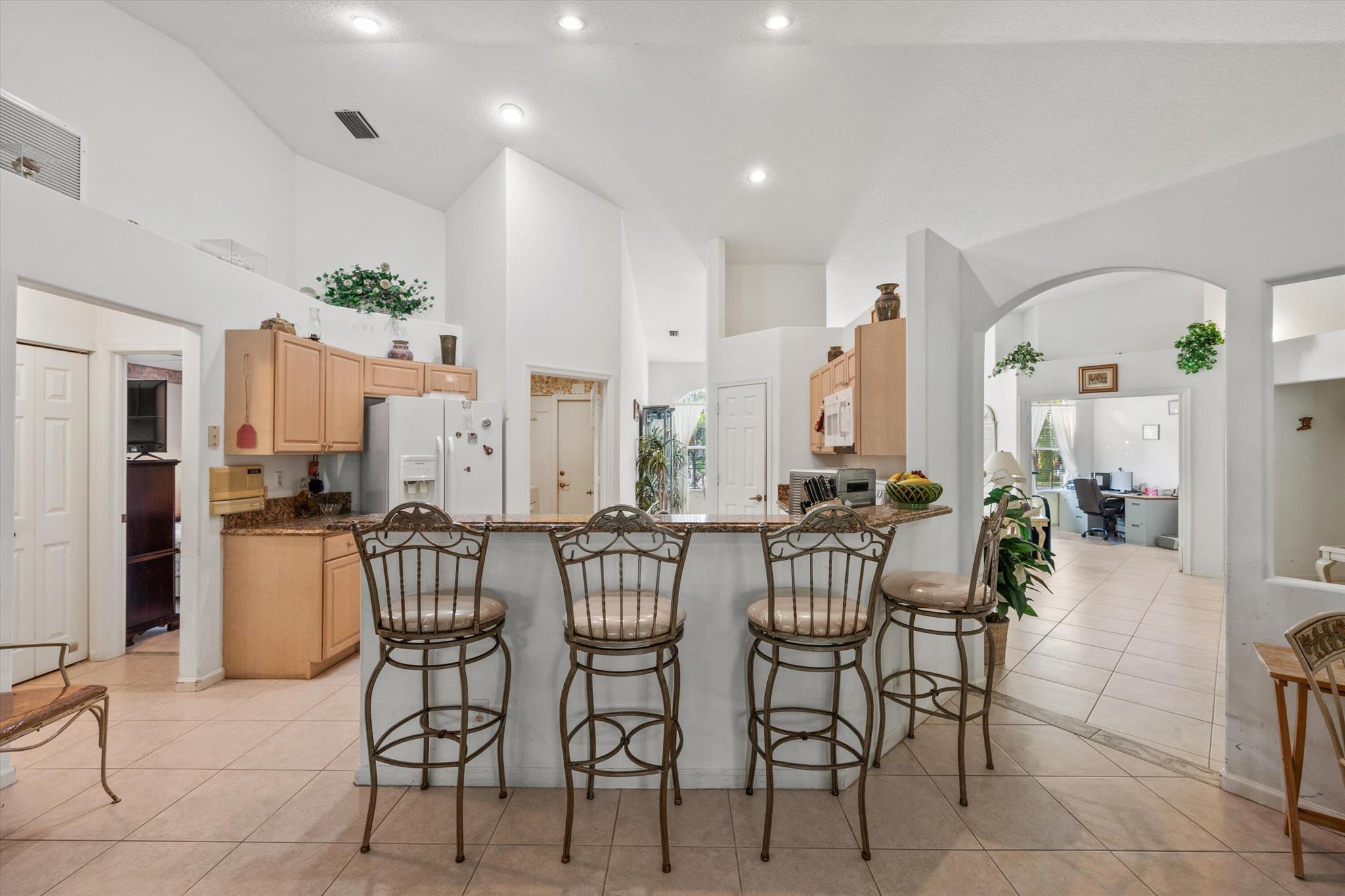Welcome to this beautifully maintained former model home located in the highly sought-after Estates of Royal Palm Beach, offering low HOA fees and 24-hour manned security.This spacious 4-bedroom residence features an open split-bedroom floor plan, a large primary suite, a dedicated den/office, and an island kitchen with granite countertops. The private backyard is ideal for outdoor living and includes several mature fruit trees, perfect for enjoying Florida living at its finest. A sparkling pool adds to the appeal, making this home an exceptional find.Conveniently located within walking distance to the Royal Palm Beach Recreation Center and just minutes from the Wellington Mall, PBI Airport, shopping, parks, golf courses, and more.