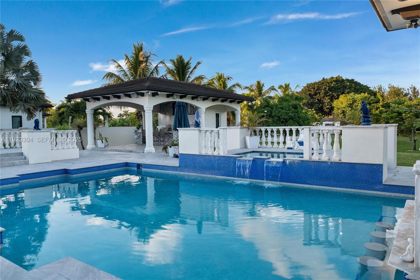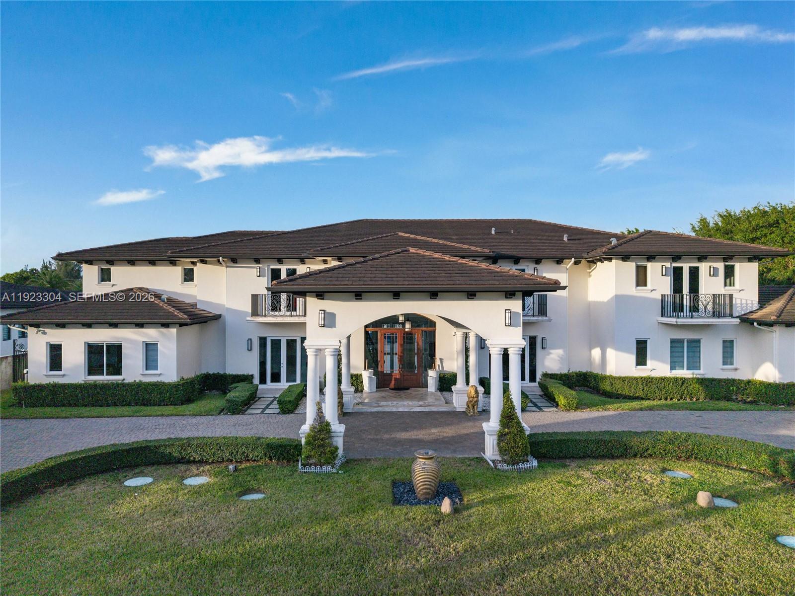 Introducing a rare custom-built architectural masterpiece where nature, sophistication & luxury merge as one. A grand entrance that opens to soaring ceilings w/custom wooden doors, 2 separate staircases, elevator & floor-to-ceiling impact glass. Just under 2 acres in the heart of Horse Country with more than 12,804sf of actual area, this gated sanctuary comes equipped with 8 great sized bedrooms, 11 bathrooms & expansive terraces from each room, giving the feeling of a timeless, tranquil & unmatched legacy estate. Chef’s kitchen boasts an expansive marble island w/stainless steel appliances, multiple midnight bars & an additional outdoor kitchen. Indulge in the ultimate privacy with every fruit tree imaginable; soursop, mango, avocado, lime, oranges, plums, mamey, dragon fruit, passion fruit, cherimoya, plantains, mandarins & more! Both kitchens, family room & outdoor spaces flow together perfectly. The first floor is equipped with 2 bedrooms, 2 offices, kids playroom, study area, theatre room & gym. The second level boasts 6 bedrooms, private family den & an expansive primary suite including dual walk-in closets, spa bath & steam sauna. Enjoy the lush grounds outdoors, an infinity saltwater pool with a swim up bar & jacuzzi, including a waterfall feature. Along with a summer kitchen BBQ area, outdoor spa bedroom & full bathroom. Washers and dryers located on both first & second floors. 3-car garage with ample parking throughout, security system & new concrete flat tile roof.
