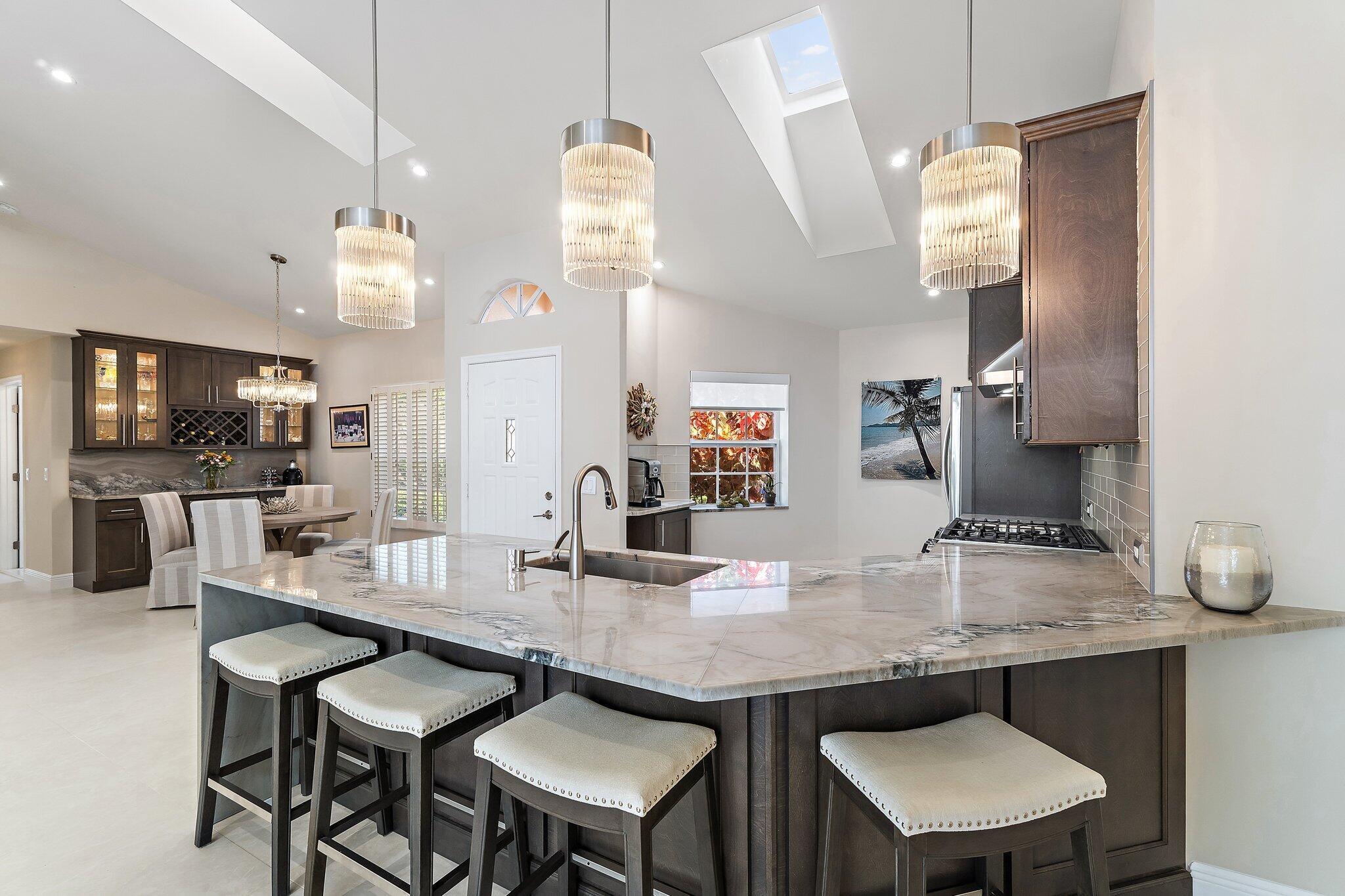 Come and walk through a STUNNING and COMPLETELY remodeled home in the charming Villa D' Este community at PGA National. LG refrigerator with 2 door water/ice maker, LG-Gas range with Stainless Steel hood/vented outside for a great cooking experience. Zephyr Wine Cooler/with-Dual Zone. Brand new A/C Unit (2025)-Rheem- 3 Ton/15.5 Sheer. Brand new Hot Water Heater-Rheem/Gas 40 Gallon. Brand new Washer: GE 4.5/ New Dryer: GE 7.2 gas (vented outside). New ceiling fans throughout the home. New floors throughout the home: Montclair Ivory Matt - 36 x 36 (origin Spain). Counters/Island/Island Waterfall/Bar Area: Macaubus Fantasy Select stone. New blinds in Living Room/Kitchen/Master bedroom (remote), Den/Guest room with New Closet. Exterior of the house recently painted. Roof 2017. A MUST SEE!