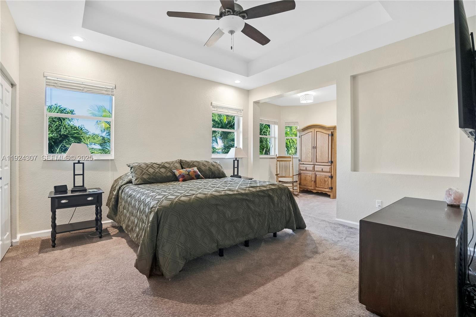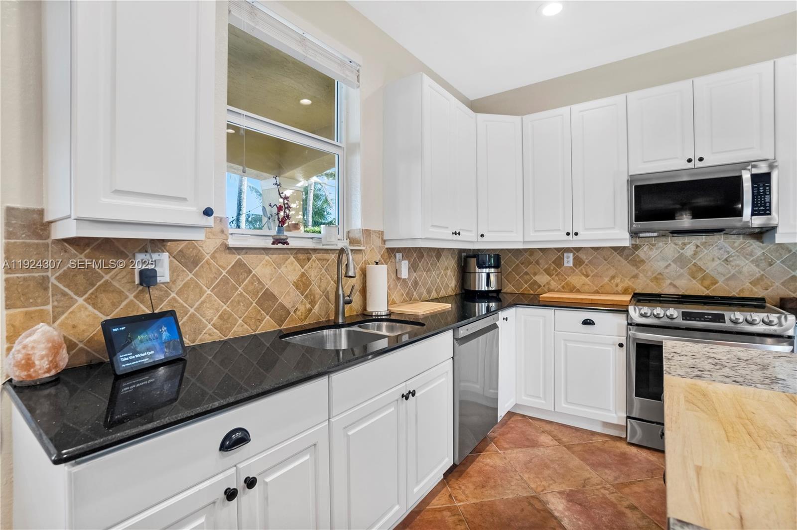 Discover this beautifully maintained 4-bedroom, 3-bath home perfectly situated on a tranquil lakefront lot. This home features a convenient first-floor bedroom and full bath, as well as three bedrooms and two baths upstairs. The home also features solar panels that significantly enhance energy efficiency, along with impact windows on the first floor and accordion shutters on the second. Inside, the main living areas are finished with tile flooring, while the upstairs bedrooms offer carpeting for added comfort. The kitchen is equipped with stainless steel appliances and ample cabinetry, a large island, and a walk-in pantry. The primary suite is complemented by beautiful lake views and two closets for extra space. Step outside to the backyard overlooking a lake, an inviting setting for outdoor dining, gatherings, or simply enjoying the peaceful scenery. The spacious 3-car garage offers ample storage and convenience, accommodating multiple vehicles or hobby space