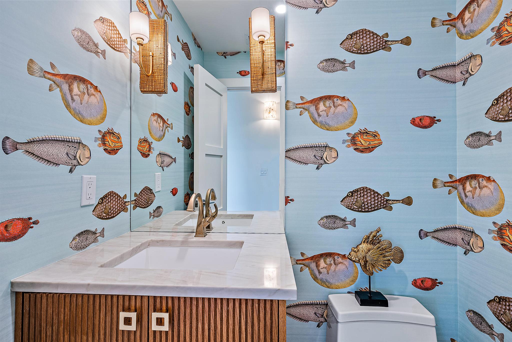 This beautifully reimagined and fully rebuilt home offers four bedrooms, three and a half baths, plus a versatile office that can serve as a fifth bedroom. Designed with abundant natural light, the residence centers around a chef's kitchen with a gas stove, refrigerator columns, an expansive island with honed quartzite countertops, and direct views of the new swimming pool and spa. The split master suite features a spacious walk-in closet, dual vanities, a large shower, and a soaking tub. Every detail showcases high-end finishes, and the property's prime SoSo location places you close to top restaurants, shopping, Palm Beach, the Kravis Center, and PBI Airport.