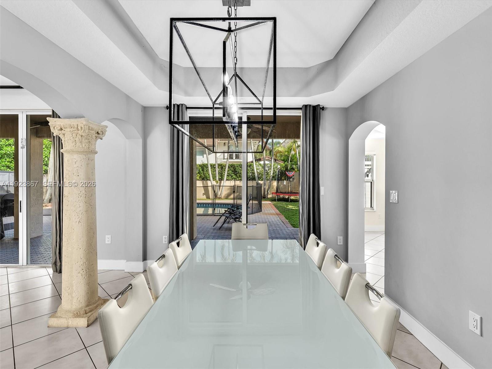 Price Improved. Welcome to this stunning 5-bedroom, 4-bath home located in the exclusive gated community of Silvercrest North in Miami Lakes. This beautifully maintained residence offers a bright, open floor plan with soaring ceilings, elegant architectural details, and a striking wrought-iron balcony overlook. The spacious living areas flow seamlessly into a gourmet kitchen featuring rich wood cabinetry, granite countertops, a large center island, and stainless-steel appliances. The roof was replaced in November 2019, offering added peace of mind. The thoughtfully designed two-story layout includes one full bedroom and bathroom on the main level—ideal for guests or multigenerational living. Upstairs, generously sized bedrooms and flexible spaces provide comfort and versatility for today’s lifestyle. Enjoy true indoor-outdoor living in your private backyard oasis with a sparkling pool, spa, covered patio, lush landscaping, and a custom swing set that enhances the family-friendly appeal. A paved driveway and well-kept exterior add to the home’s impressive curb appeal. Ideally situated in a quiet, highly sought-after community near top-rated schools, parks, shopping, and major highways, this home offers exceptional comfort, convenience, and value. No Saturday showings.