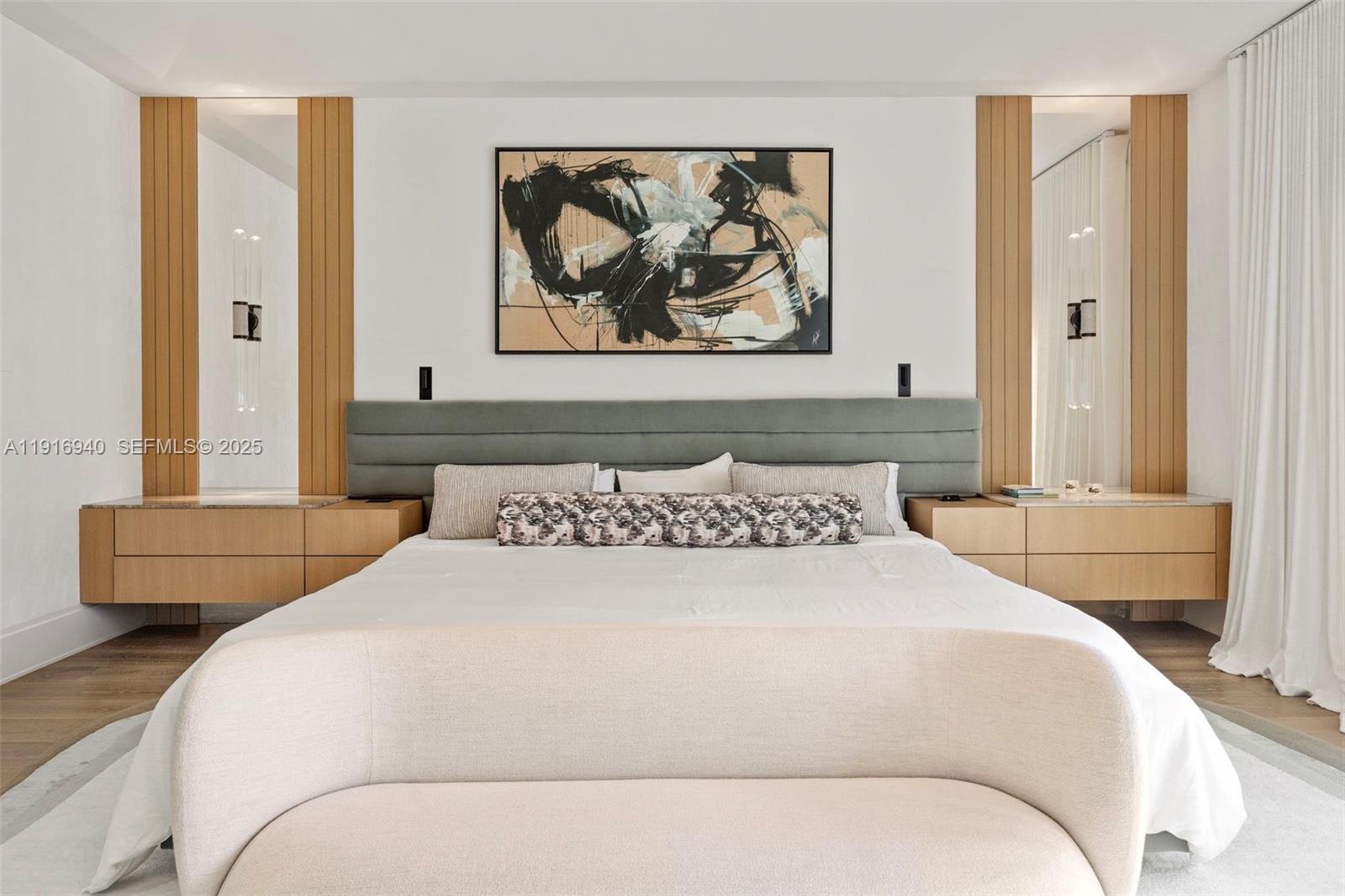 Never-before-seen, recently built, exquisitely designed 2-story Estate on a quiet, oak-lined street in North Pinecrest. Contemporary & timeless, grandly scaled & understated. No-expense-spared finishes include gorgeous natural stone & wood floors throughout, extraordinary vaulted ceilings, bespoke millwork. Abundant windows complement expansive, thoughtfully appointed space: 7 bedrooms (4 up), 6.5 baths, living, family & formal dining rooms, eat-in kitchen w/ Subzero & Wolf appliances, theater, game & play rooms, gym, 2 laundry rooms (up/down), 4-car garage. Smart Home w/ Savant-Sonos-powered security. Exterior features: Screened summer kitchen, lavish resort pool, lit basketball court, playground, lush landscape & full-house generator. This custom-curated Pinecrest Paradise has it all!