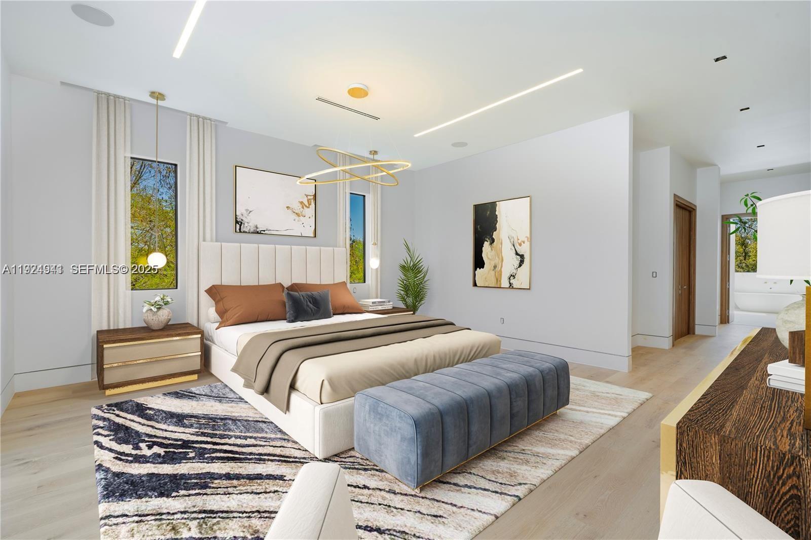Nestled within Hammer Heritage Estates, this modern masterpiece sets a new standard for luxury living. Situated on a one-acre homesite, it was designed by renowned architect Philip Aguirre and built by Landmark Luxury Home Builders. Spanning 7,551 sq. ft. with 6,019 sq. ft. of refined living space, the home features five elegant bedrooms, six-and-a-half spa-inspired bathrooms, and a sophisticated office. Elevated for privacy and structural resilience, the residence includes energy-efficient propane systems and high-impact Low-E glass throughout. The chef’s kitchen is equipped with JennAir appliances, dual dishwashers, and a built-in gourmet coffee system. Additional luxuries include a DTV+ digital spa, a heated pool, lush landscaping, a private elevator, and a three-car garage. Located in an equestrian-friendly community, the home seamlessly blends modern elegance with country charm.
